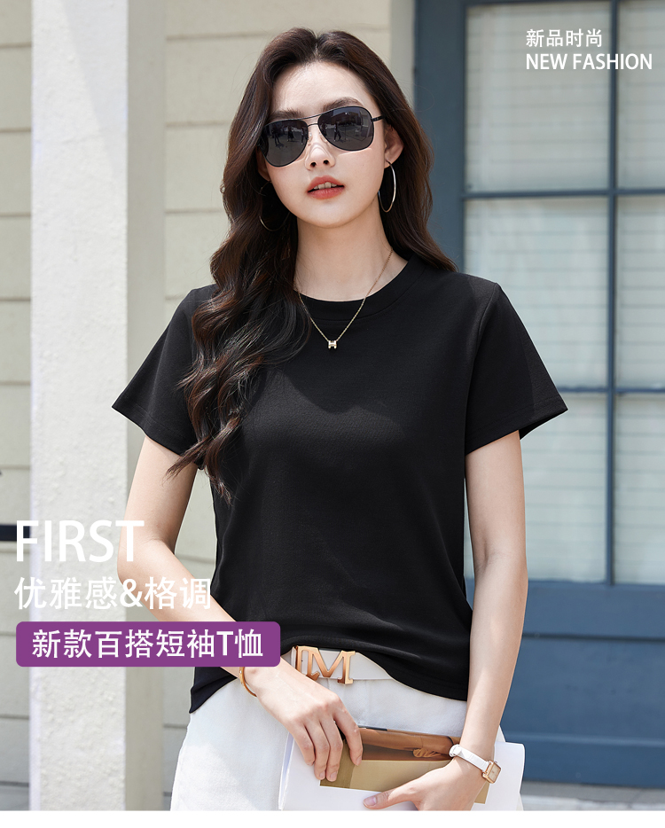 RY154# 正肩短袖T恤女2026新款夏季夏装打底衫ins潮白色内搭洋气体恤上衣