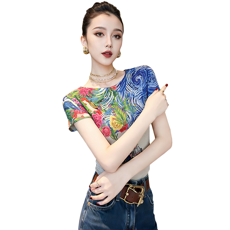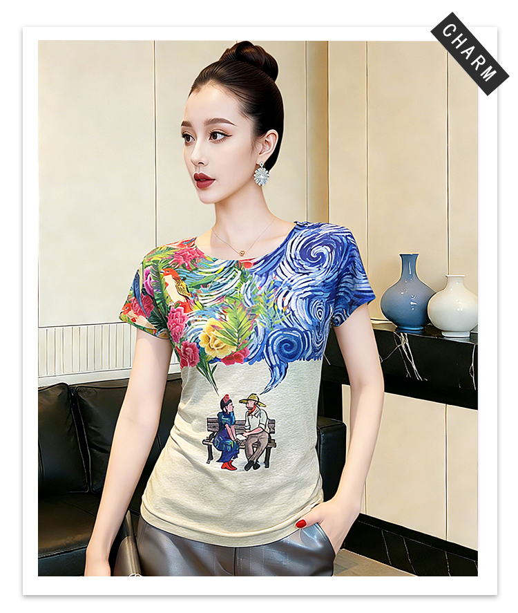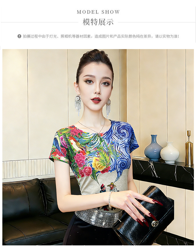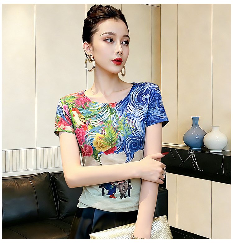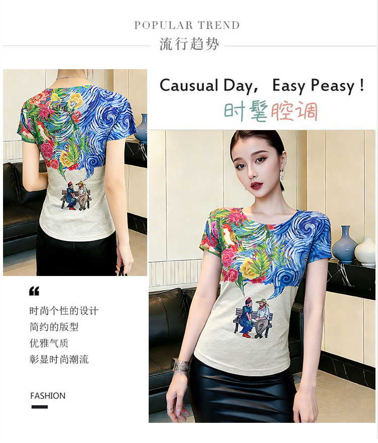 RY175# 欧货2026夏装新款时尚定位卡通印花短袖T恤打底衫修身上衣女