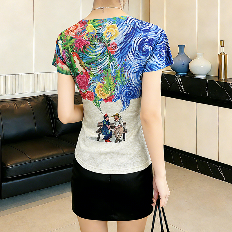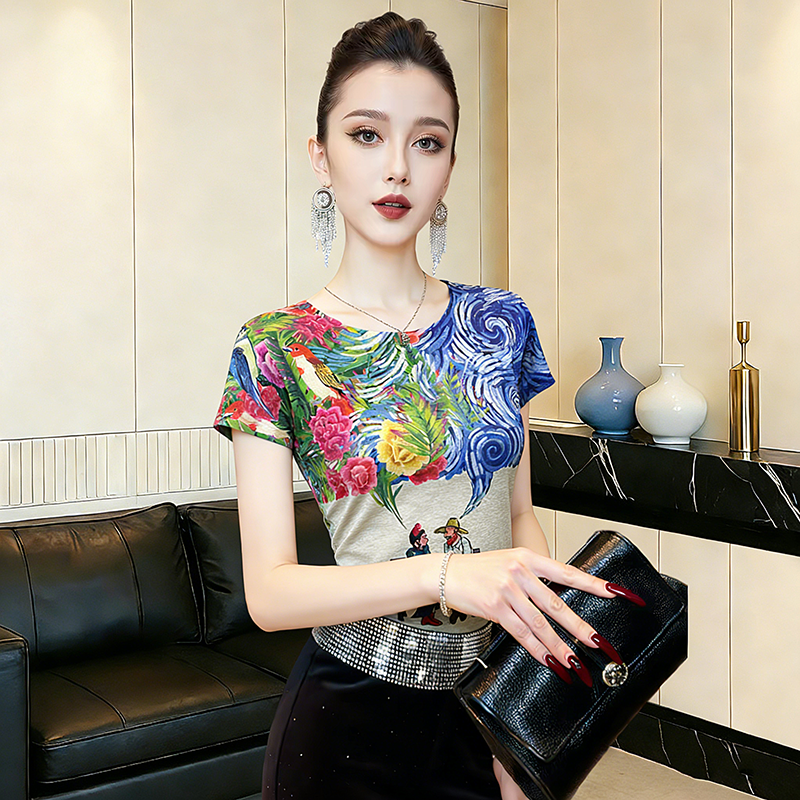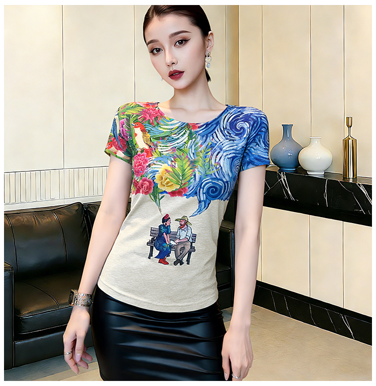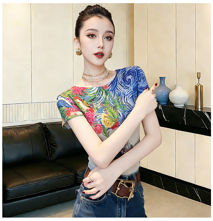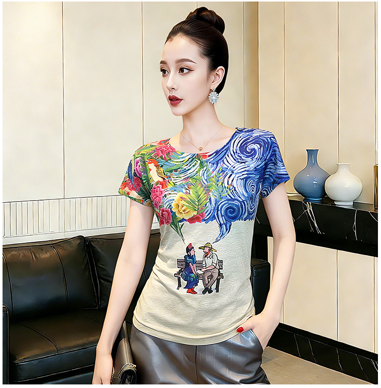 RY175# 欧货2026夏装新款时尚定位卡通印花短袖T恤打底衫修身上衣女