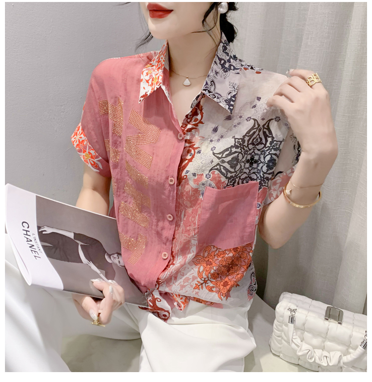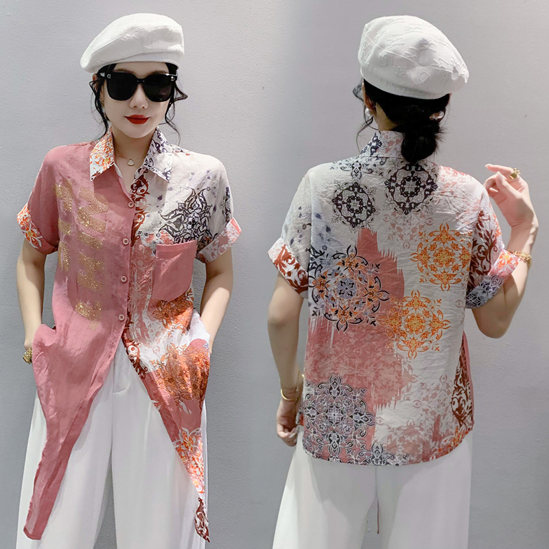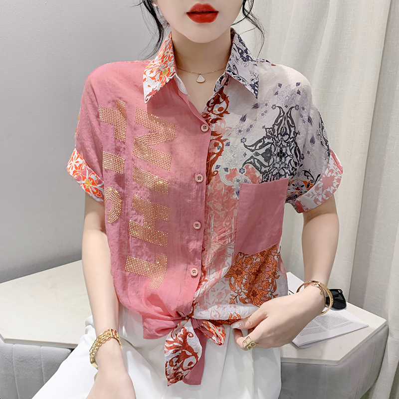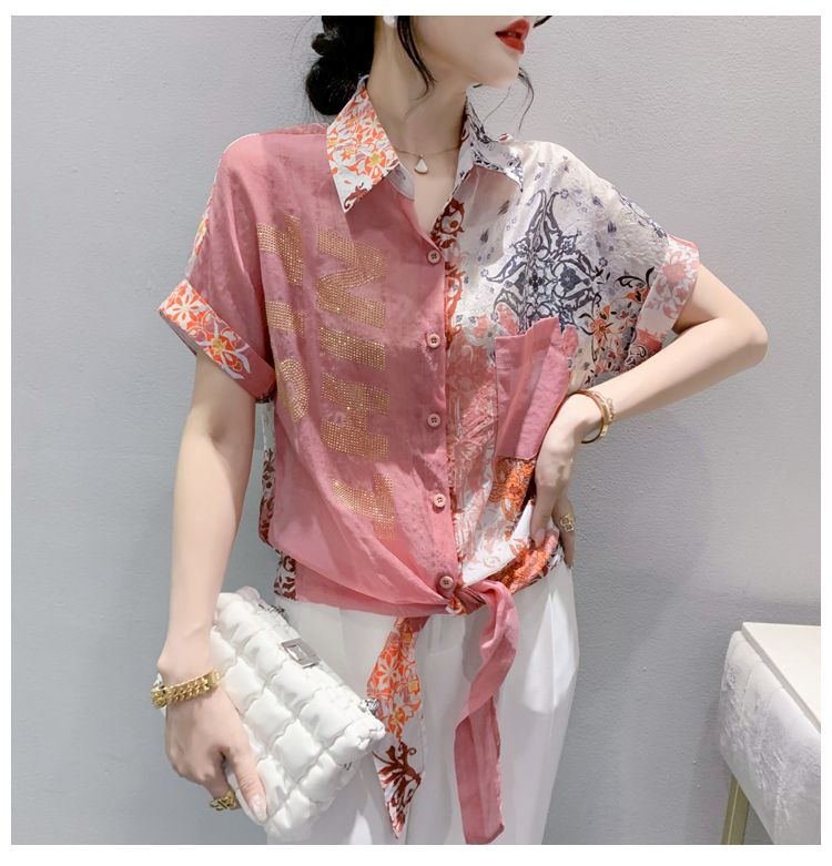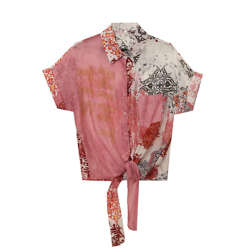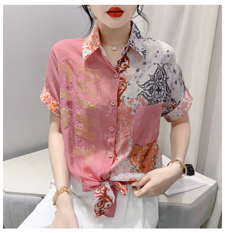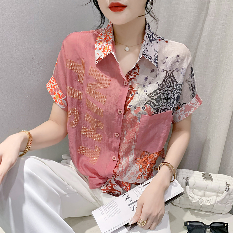RY179# 2026夏季新款宽松印花拼色字母衬衫女装短袖时尚百搭上衣