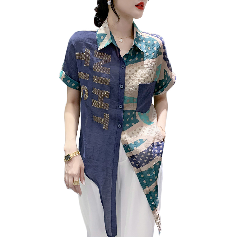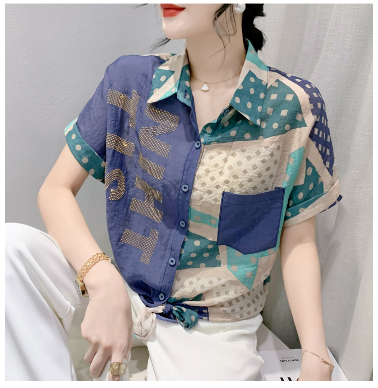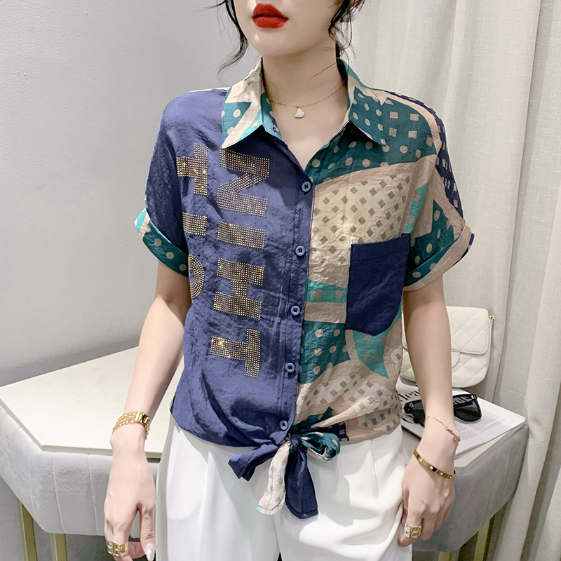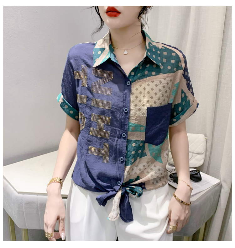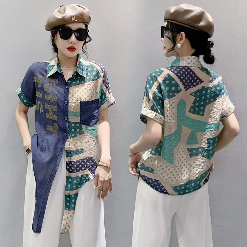 RY180# 2026夏季新款宽松印花拼色字母衬衫女装短袖时尚百搭上衣