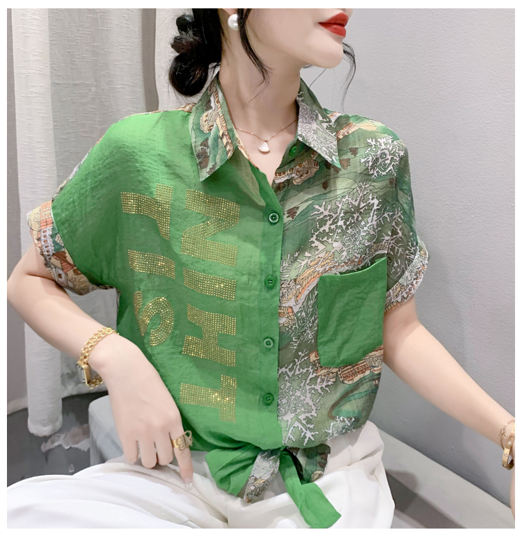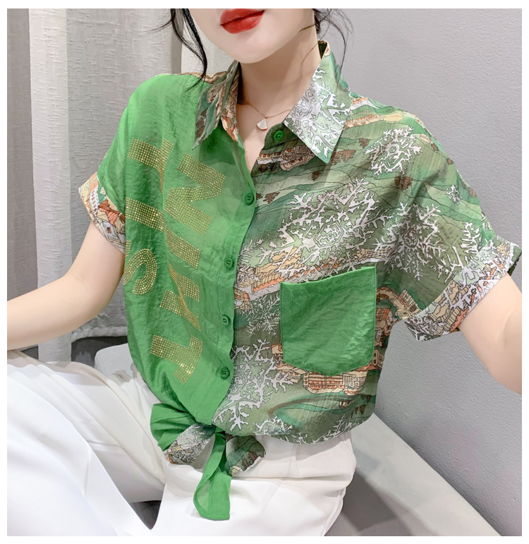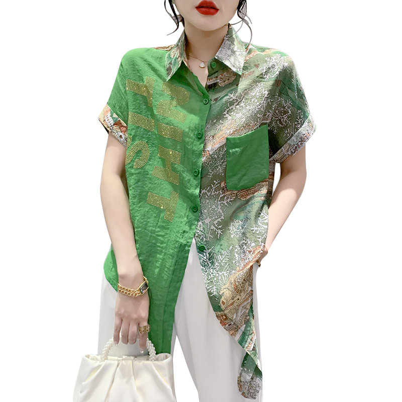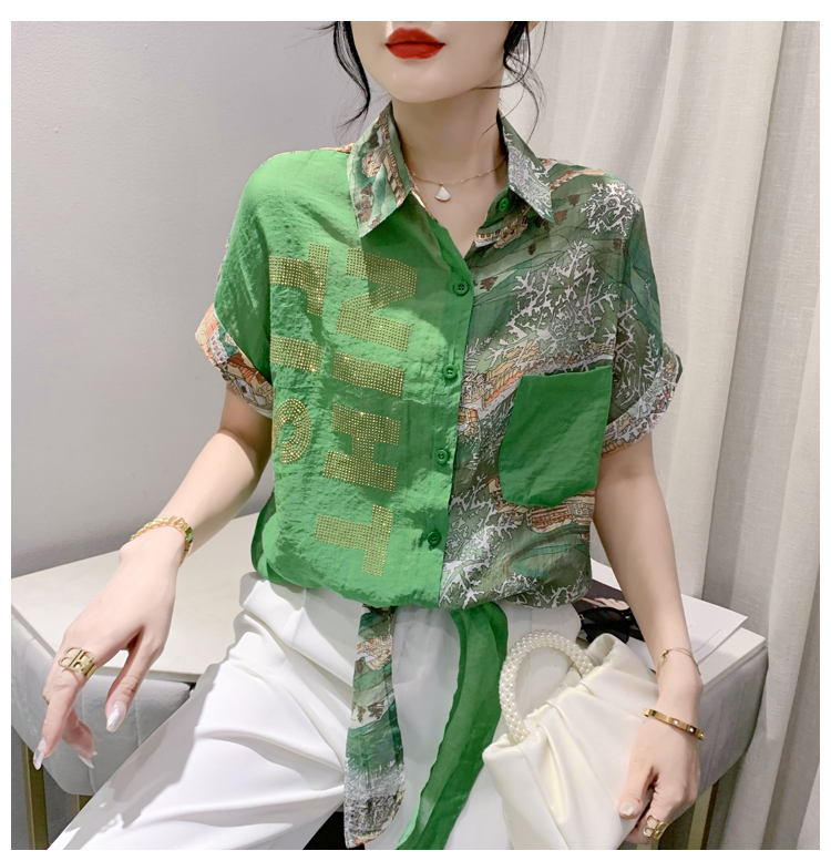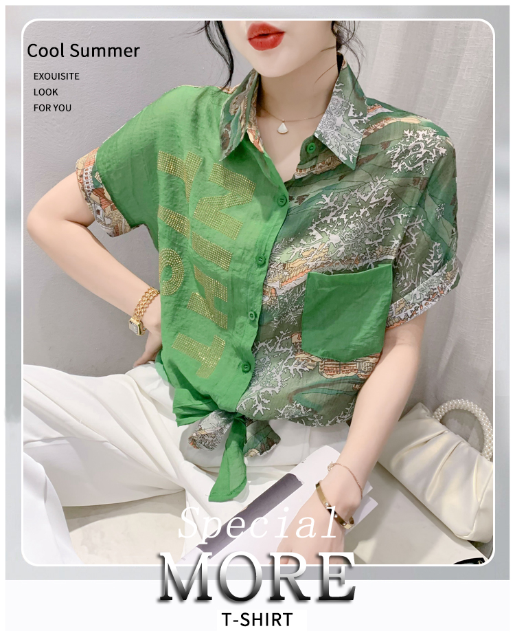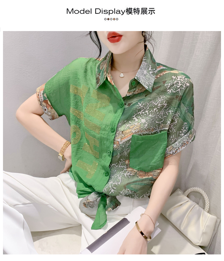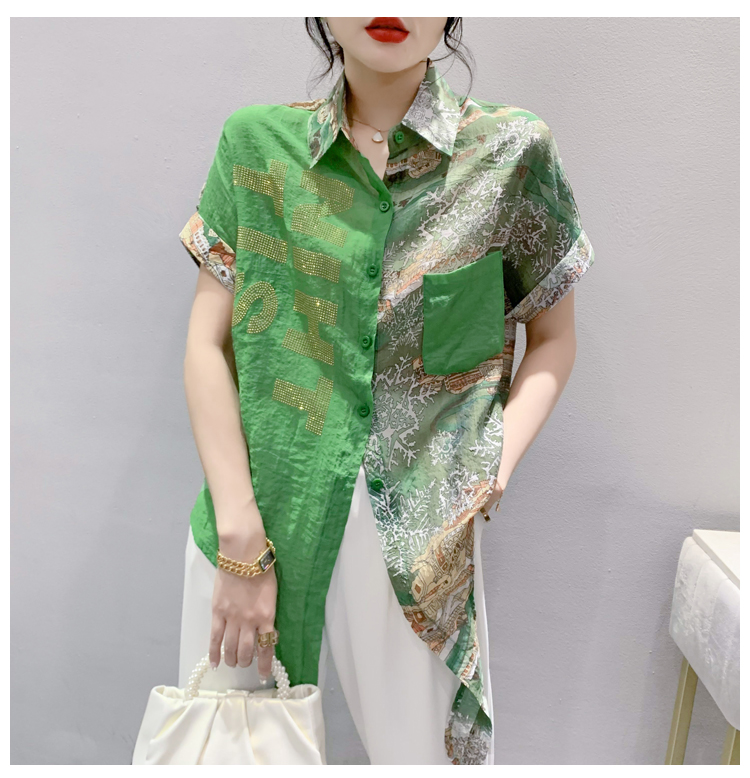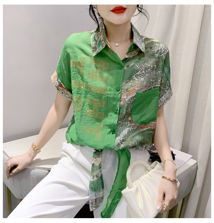 RY181# 2026夏季新款宽松印花拼色字母衬衫女装短袖时尚百搭上衣