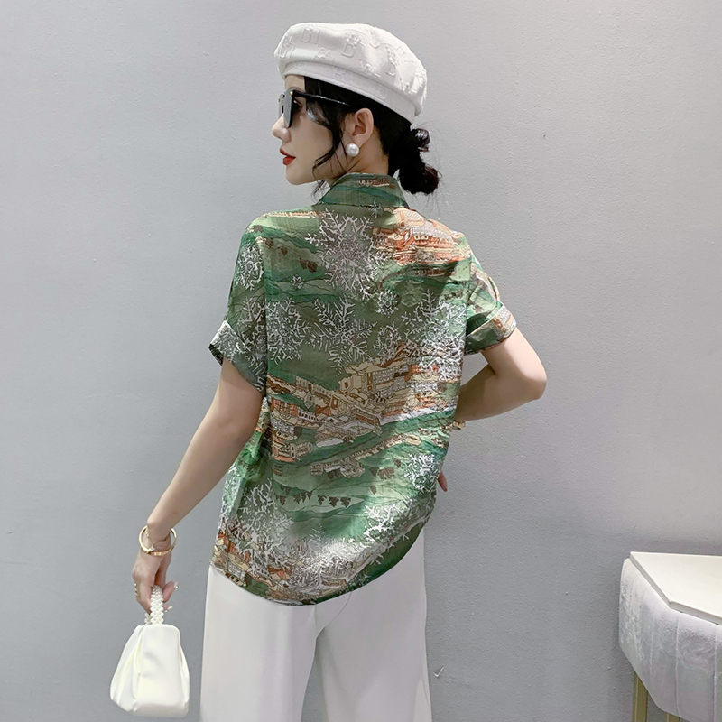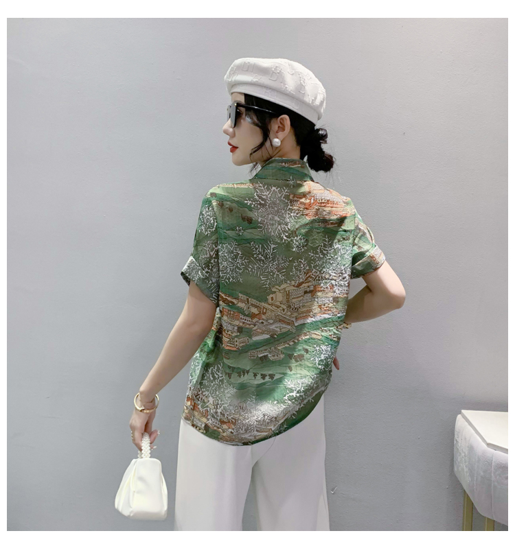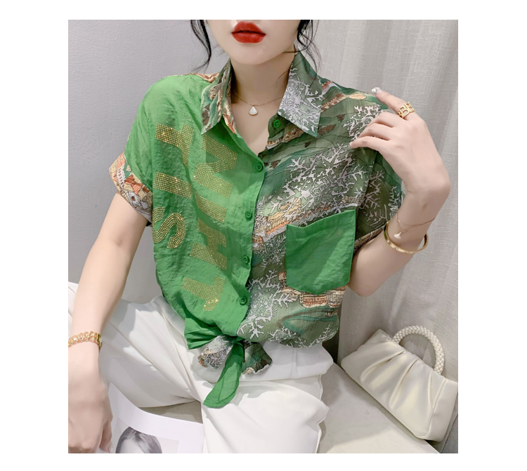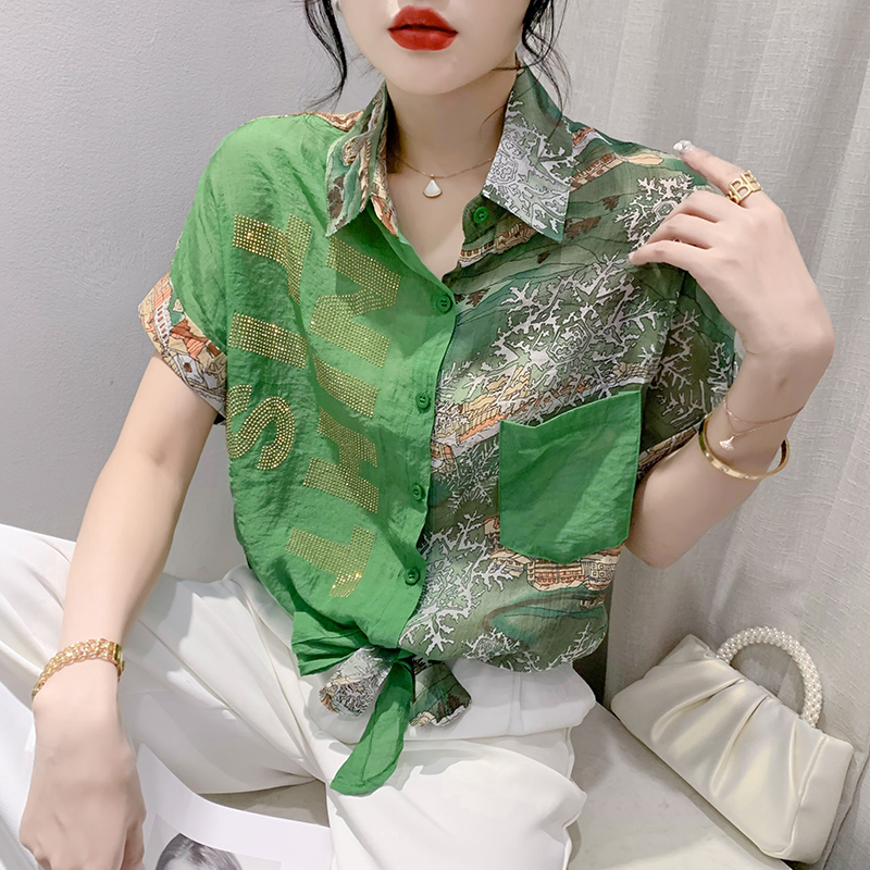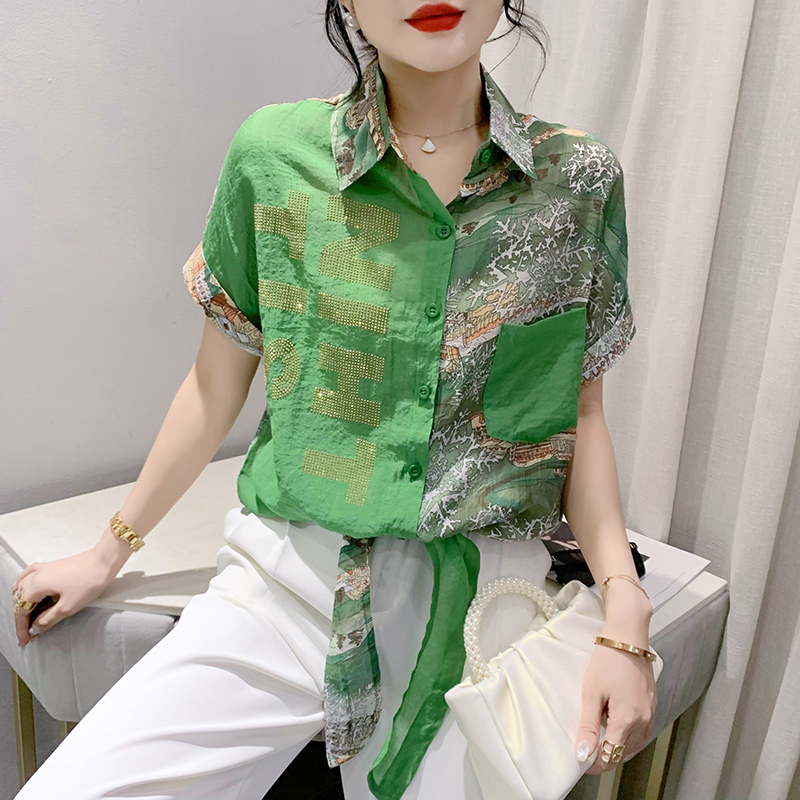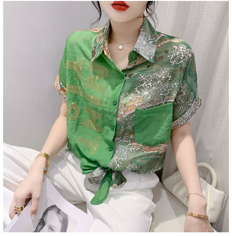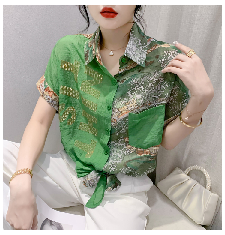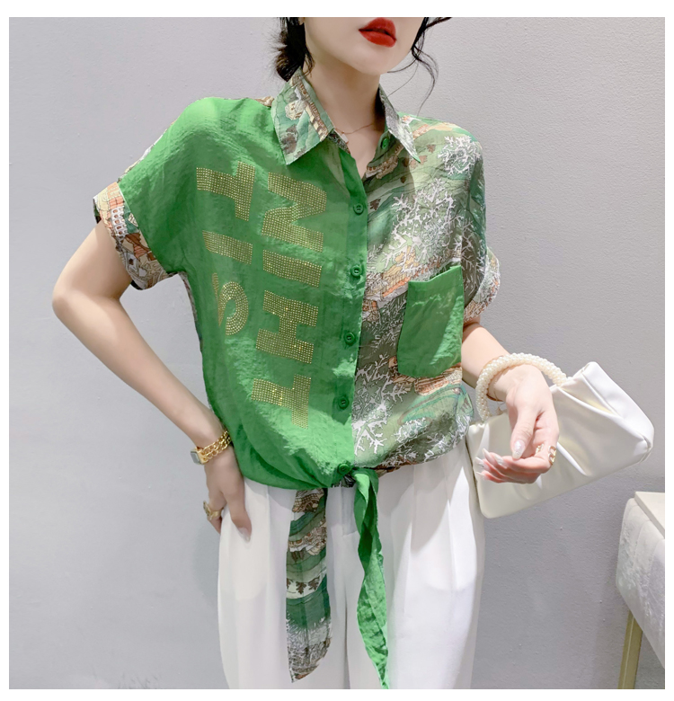 RY181# 2026夏季新款宽松印花拼色字母衬衫女装短袖时尚百搭上衣