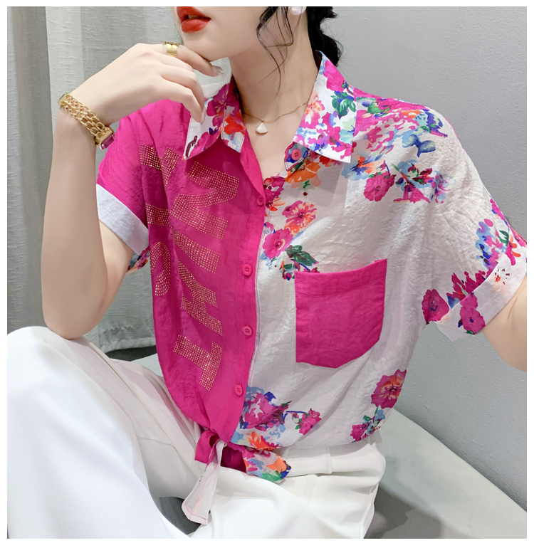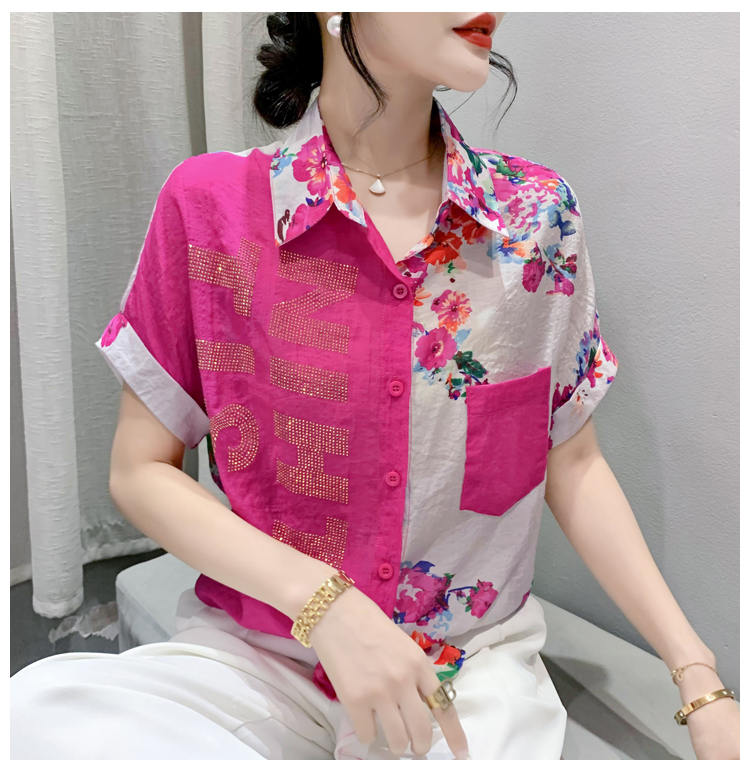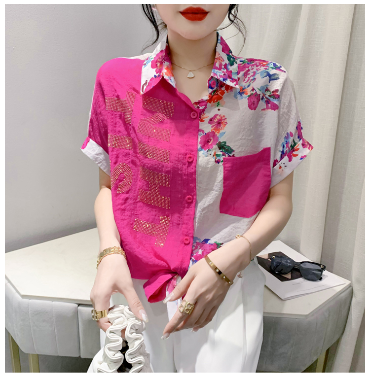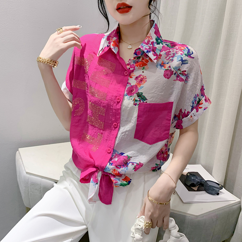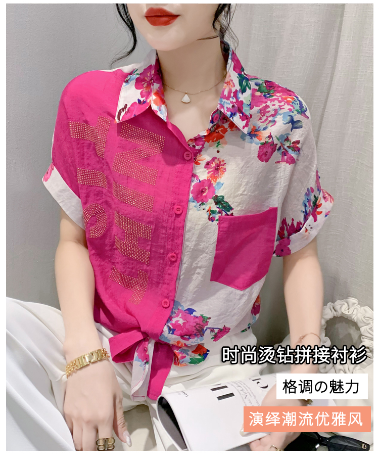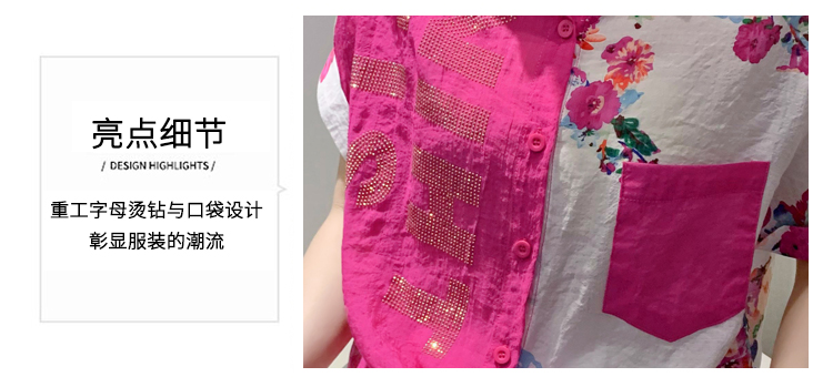 RY182# 2026夏季新款宽松印花拼色字母衬衫女装短袖时尚百搭上衣