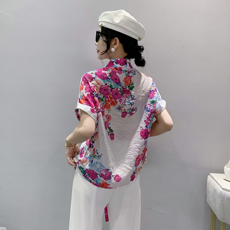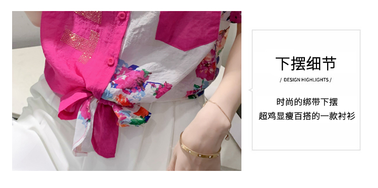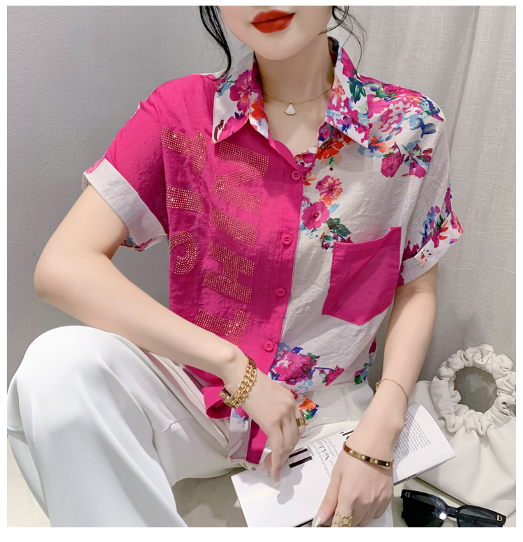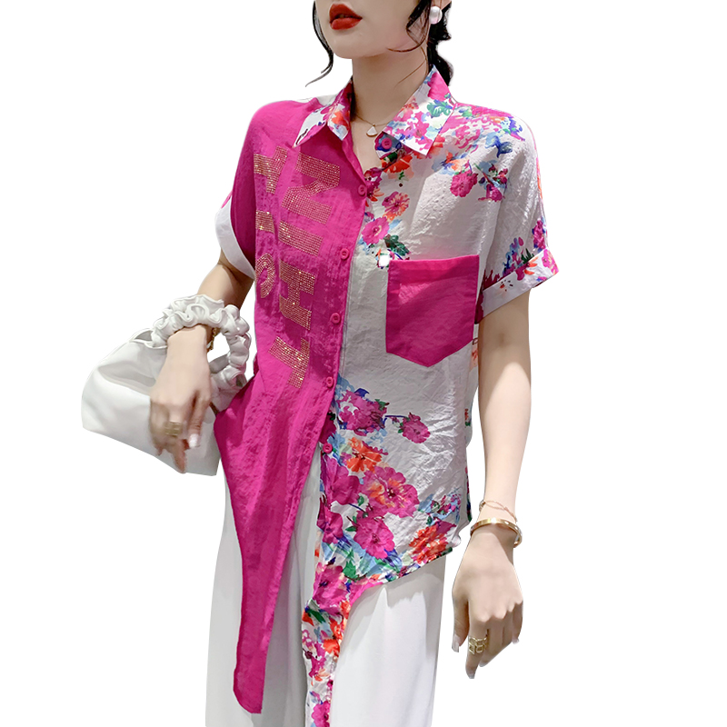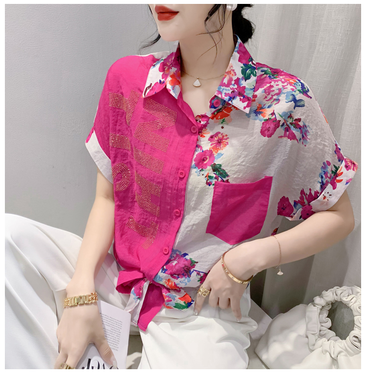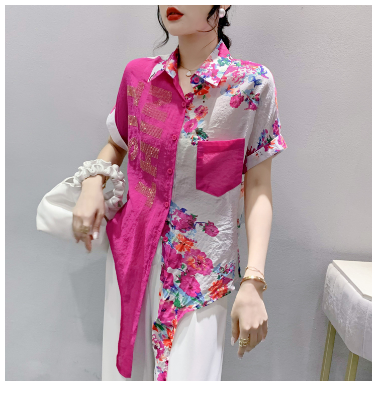 RY182# 2026夏季新款宽松印花拼色字母衬衫女装短袖时尚百搭上衣