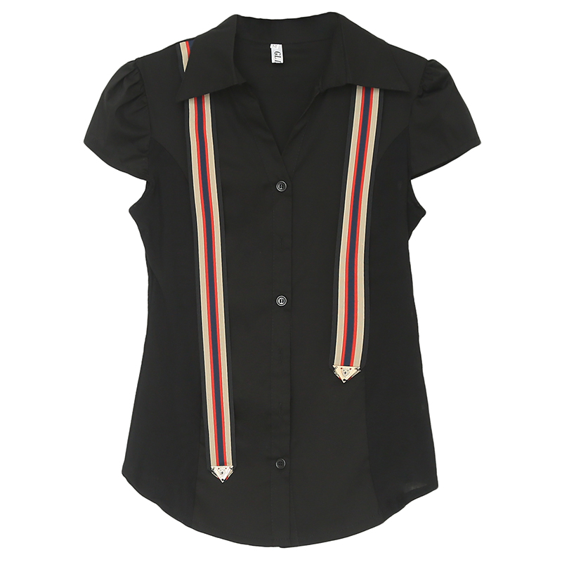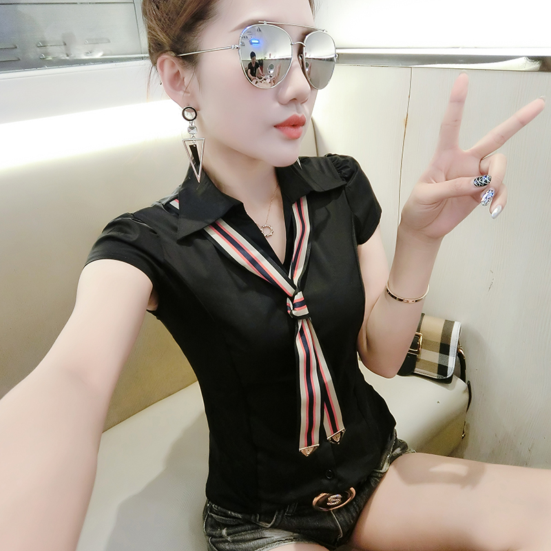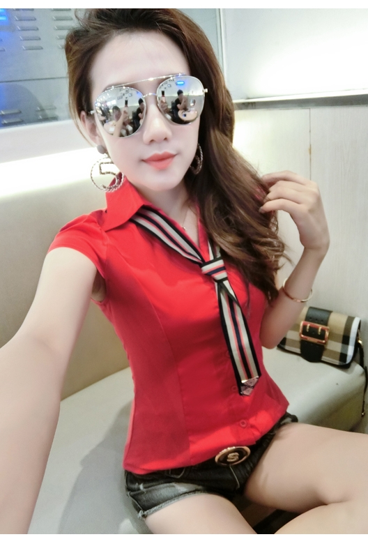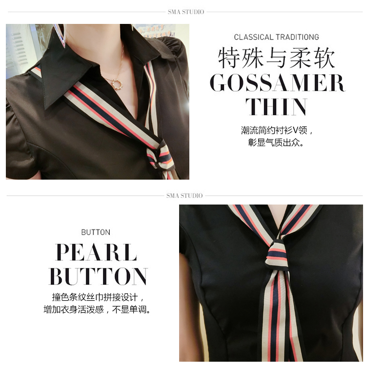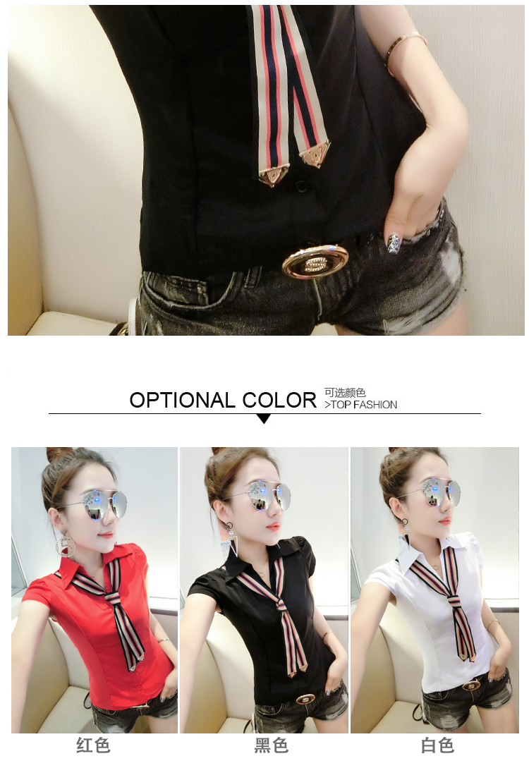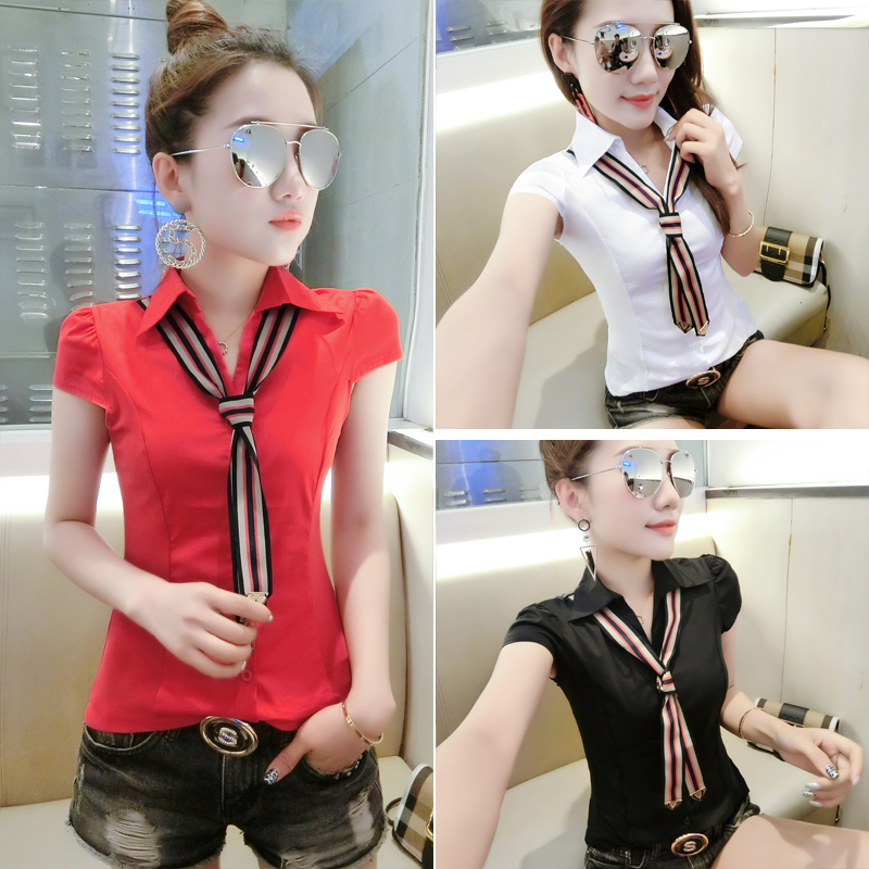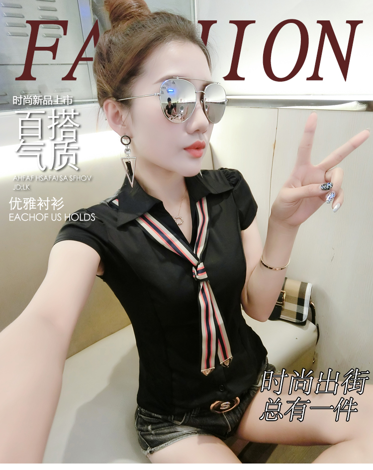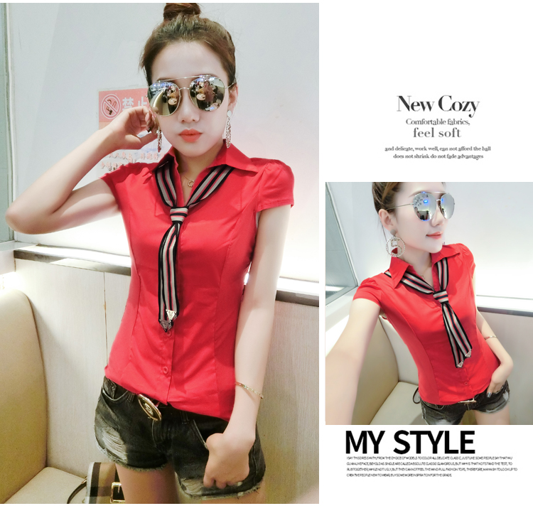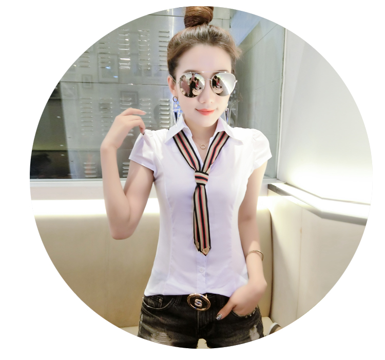 RY184# 实拍#2026夏季新款时尚百搭衬衫女短袖韩版修身显瘦领带衬衣女