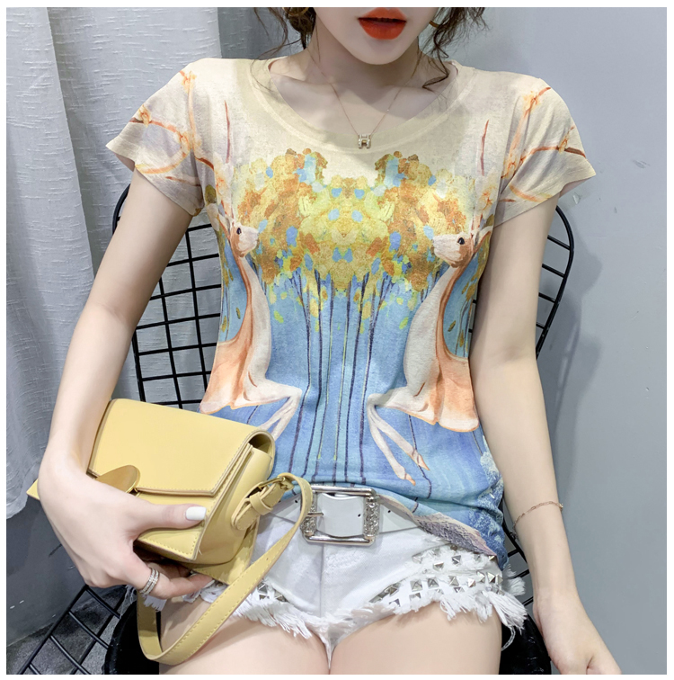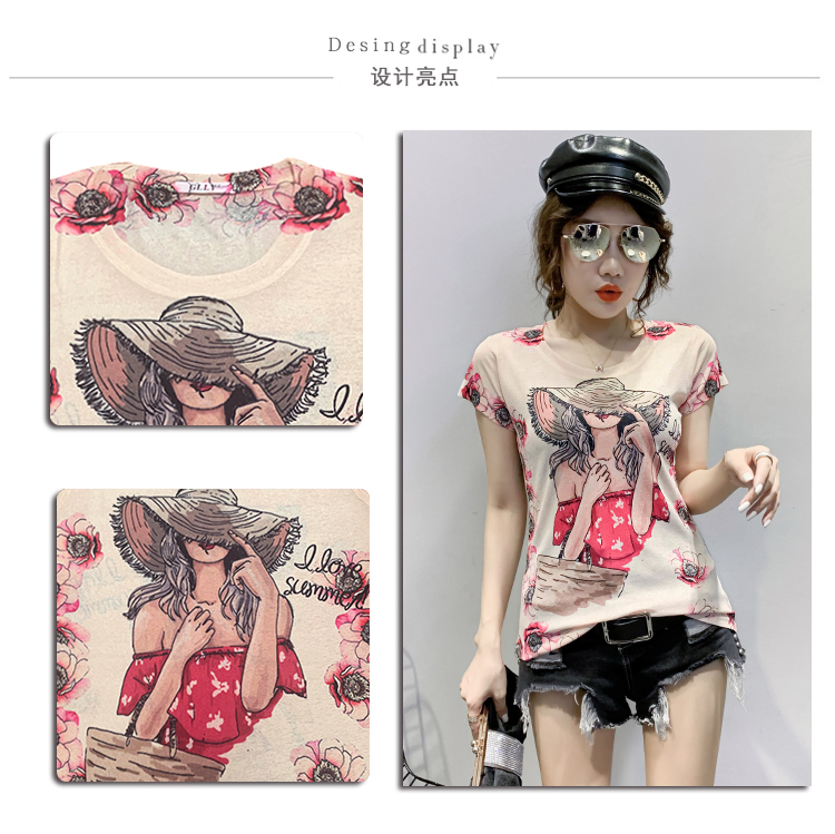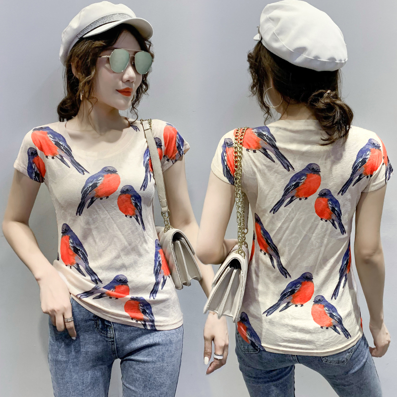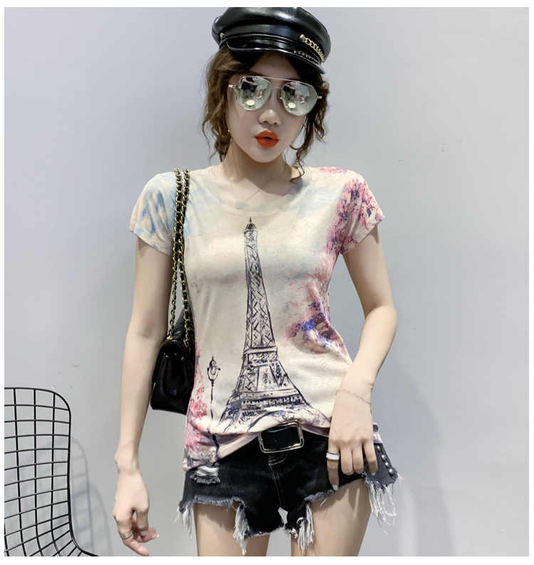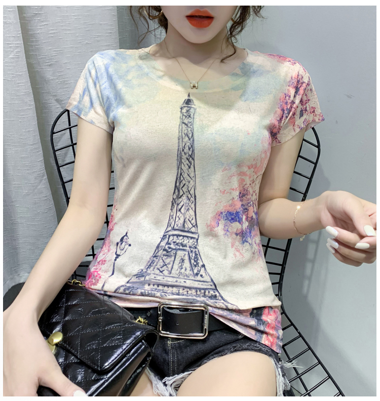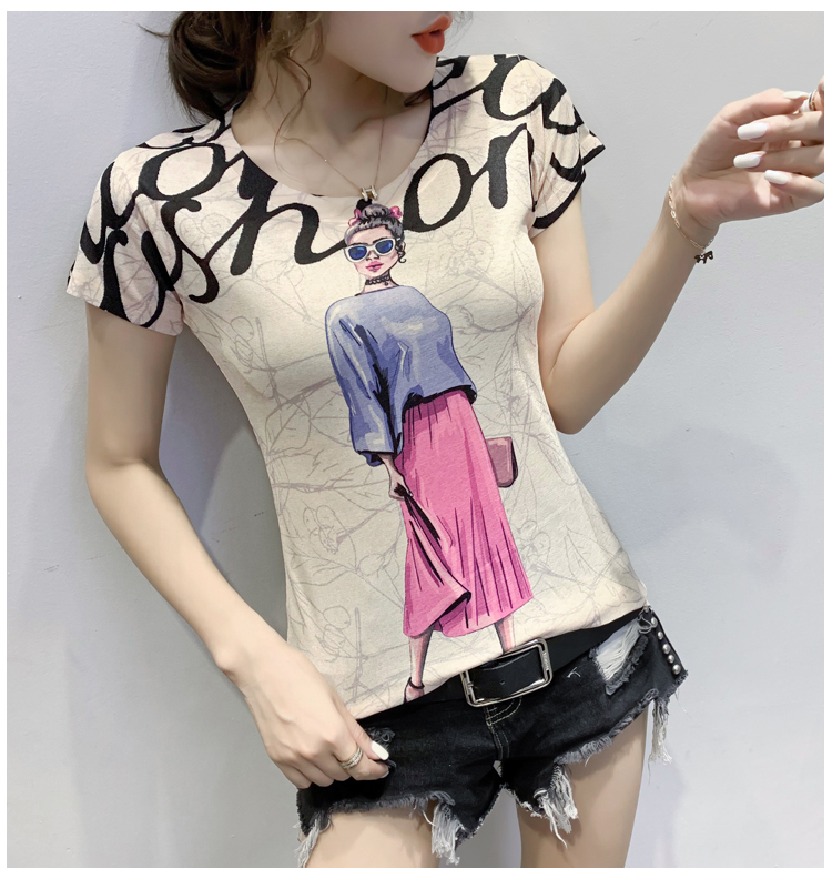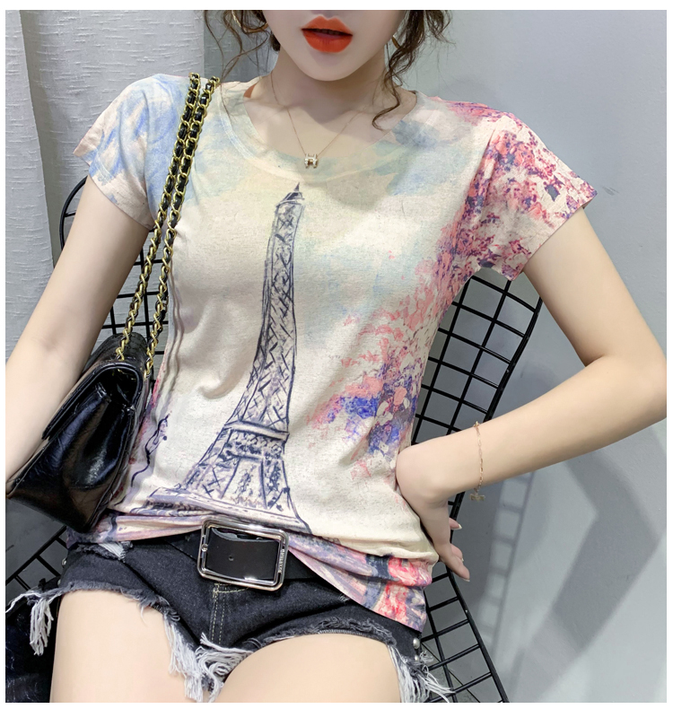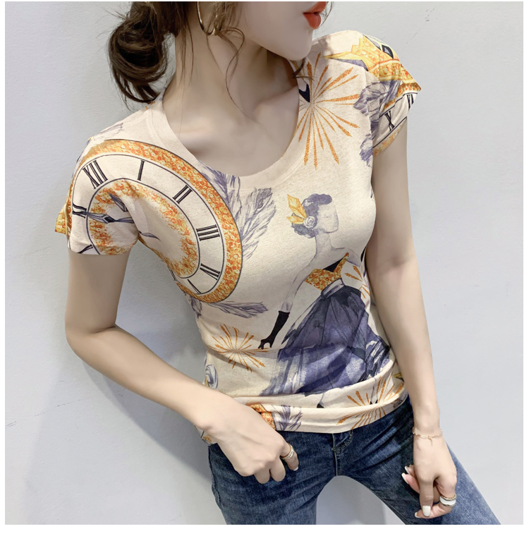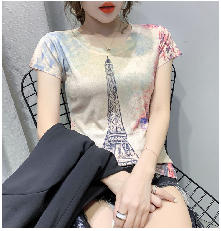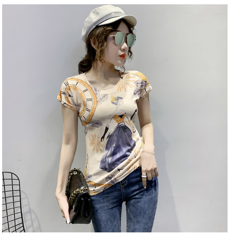 RY194# 2026夏装新款时尚定位印花短袖T恤打底衫修身上衣女