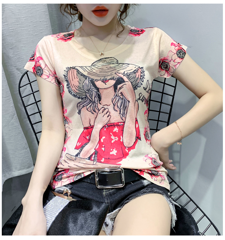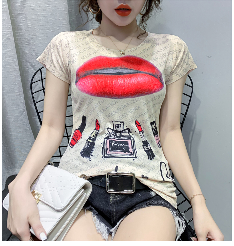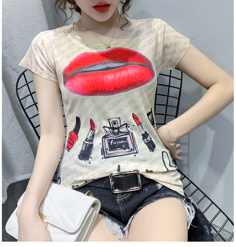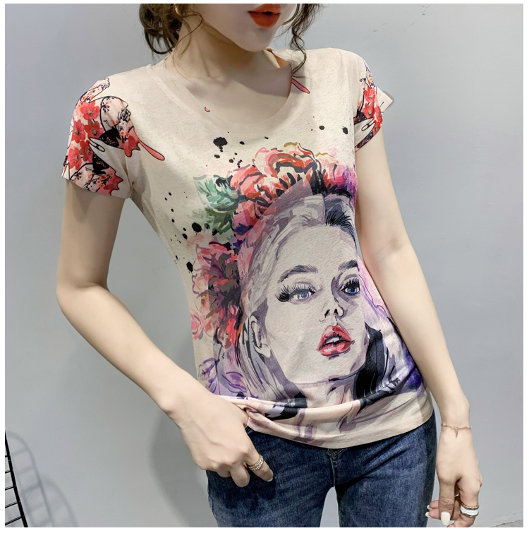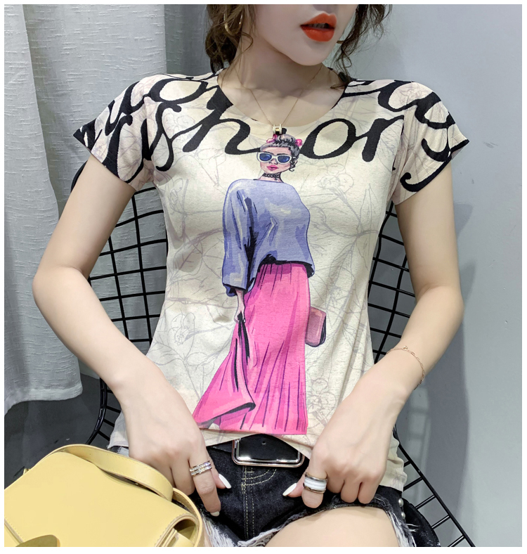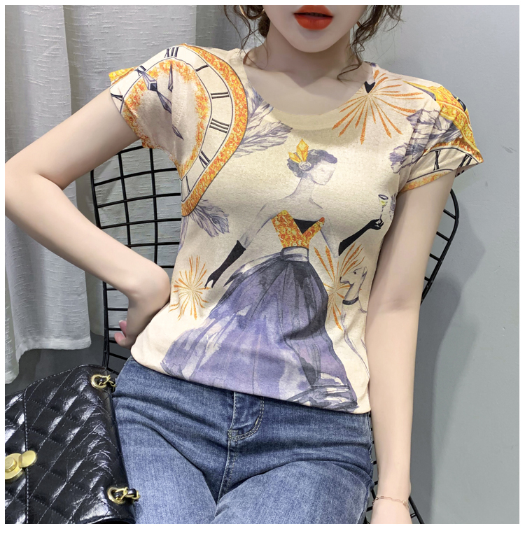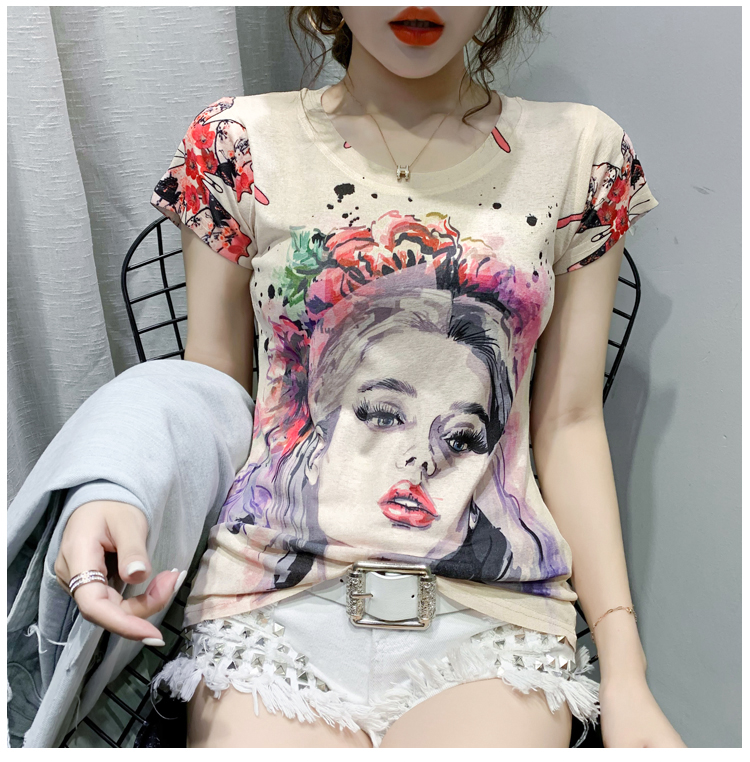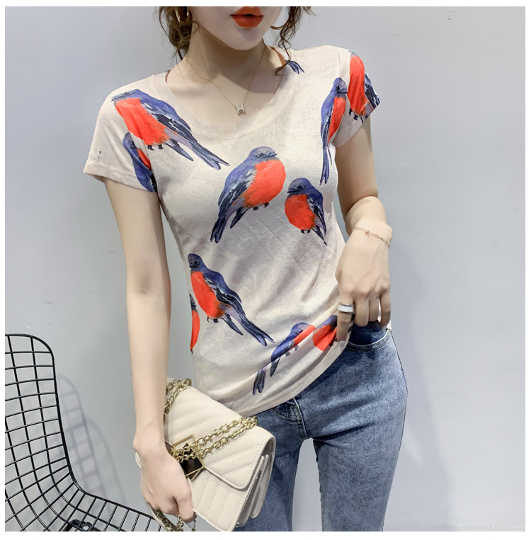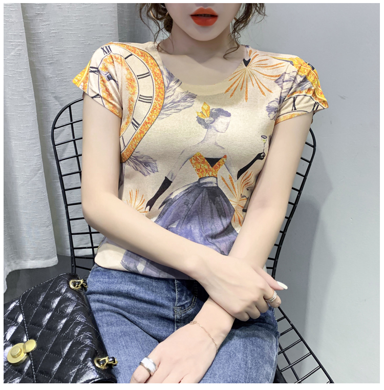 RY194# 2026夏装新款时尚定位印花短袖T恤打底衫修身上衣女