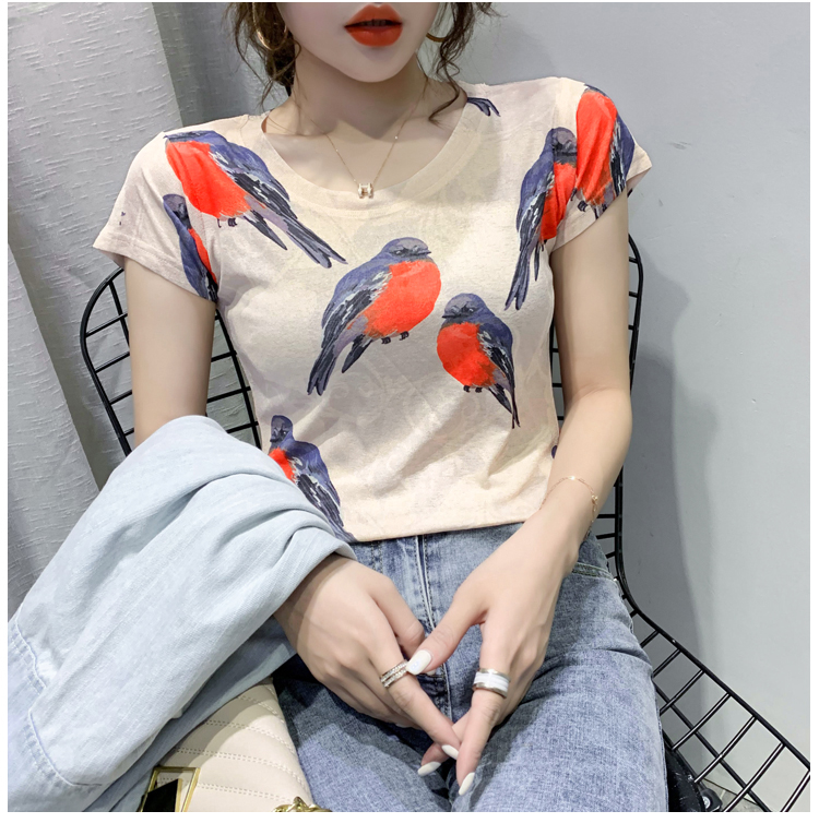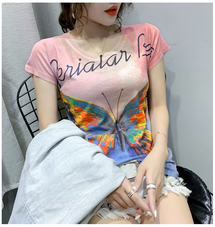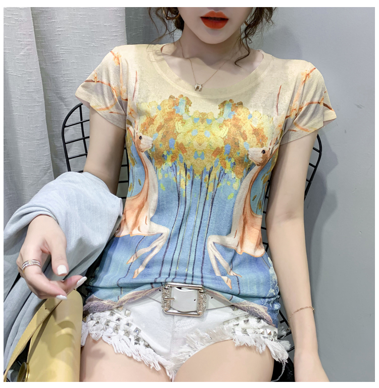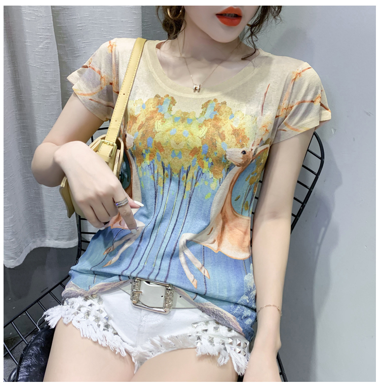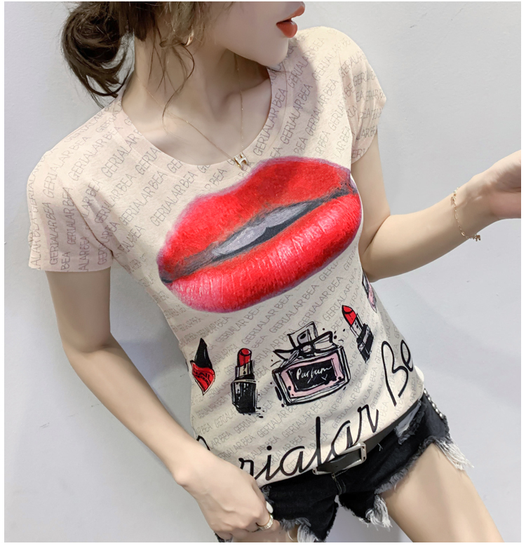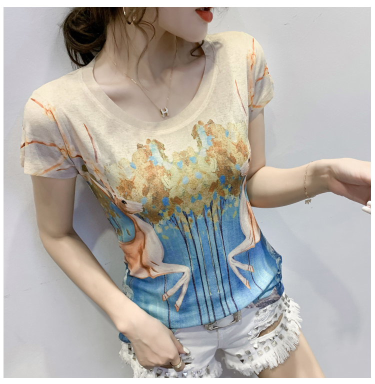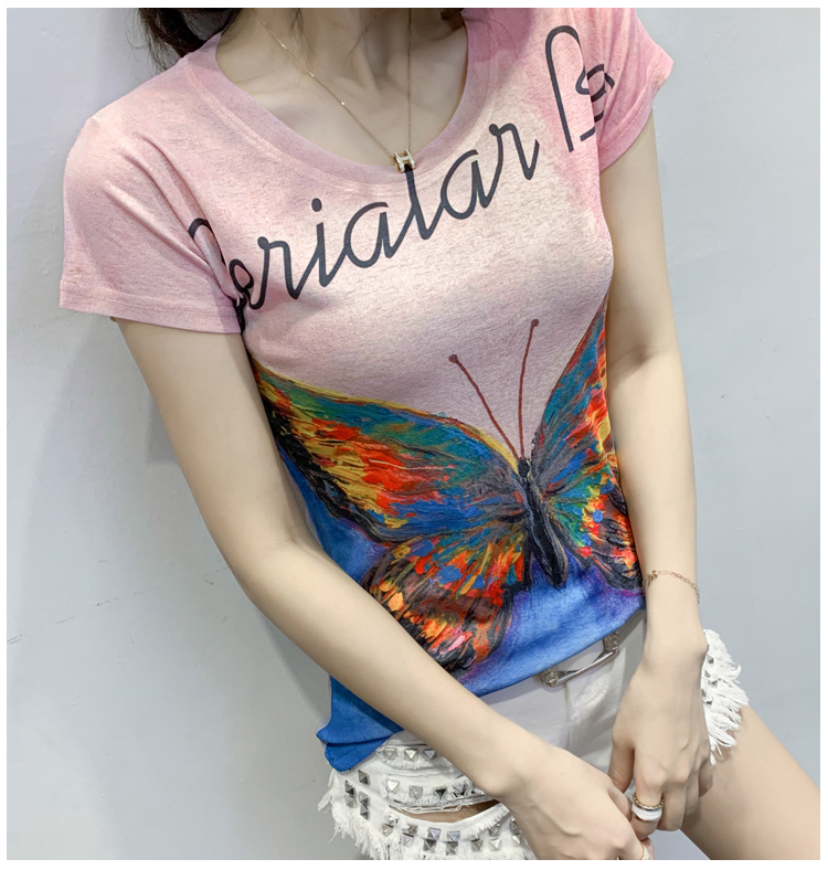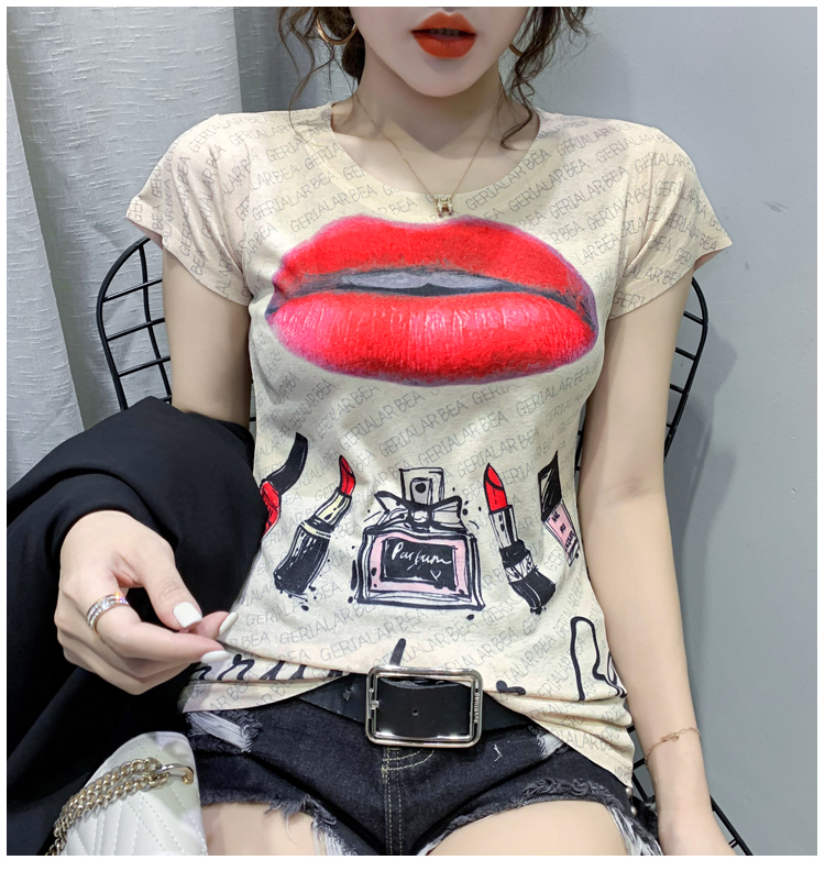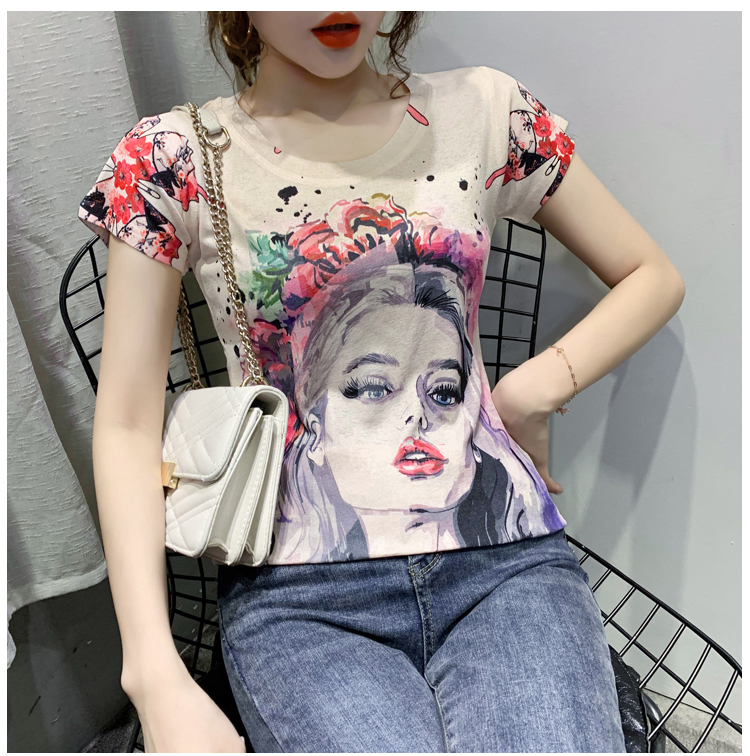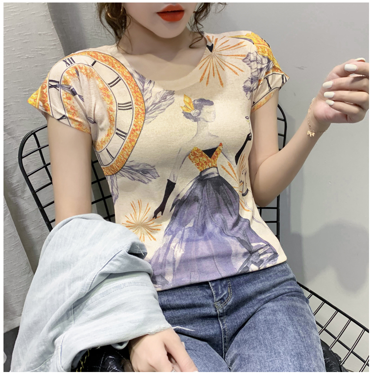 RY194# 2026夏装新款时尚定位印花短袖T恤打底衫修身上衣女