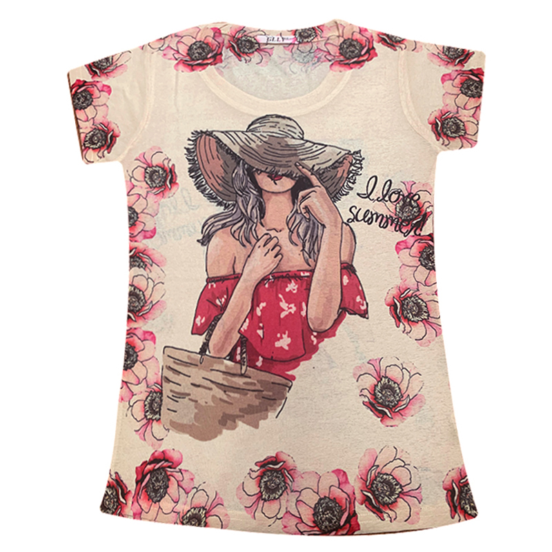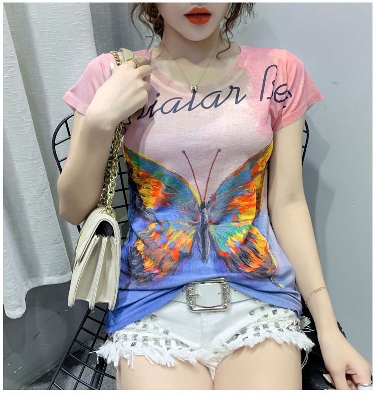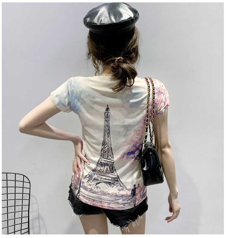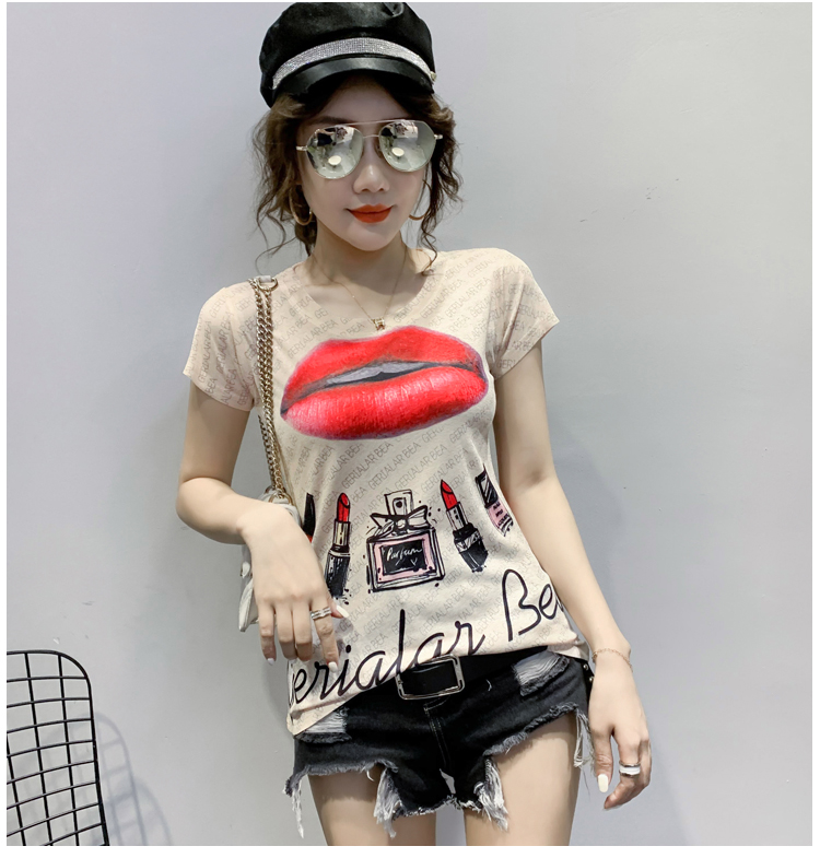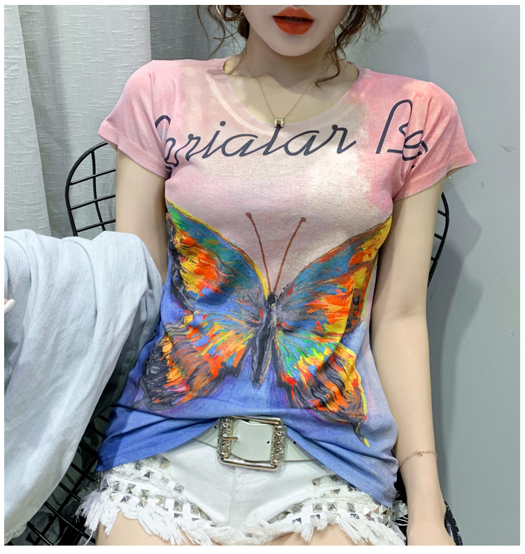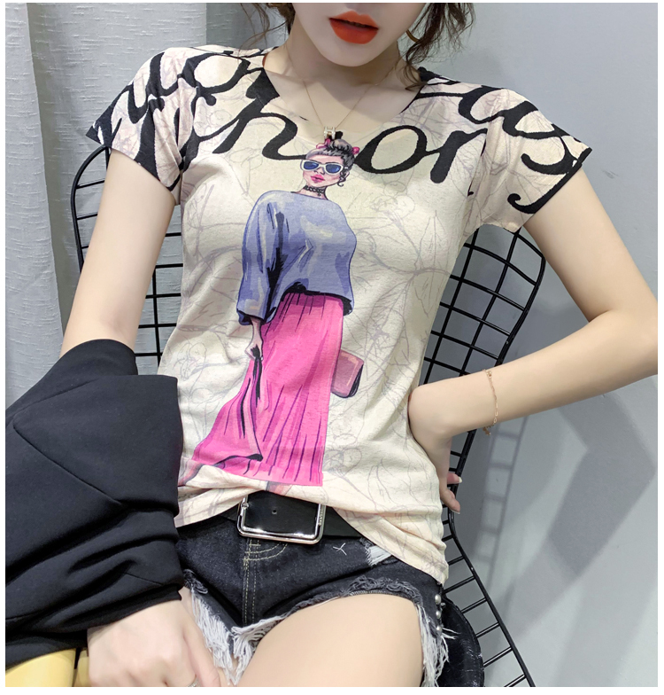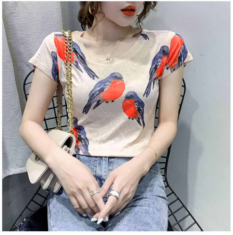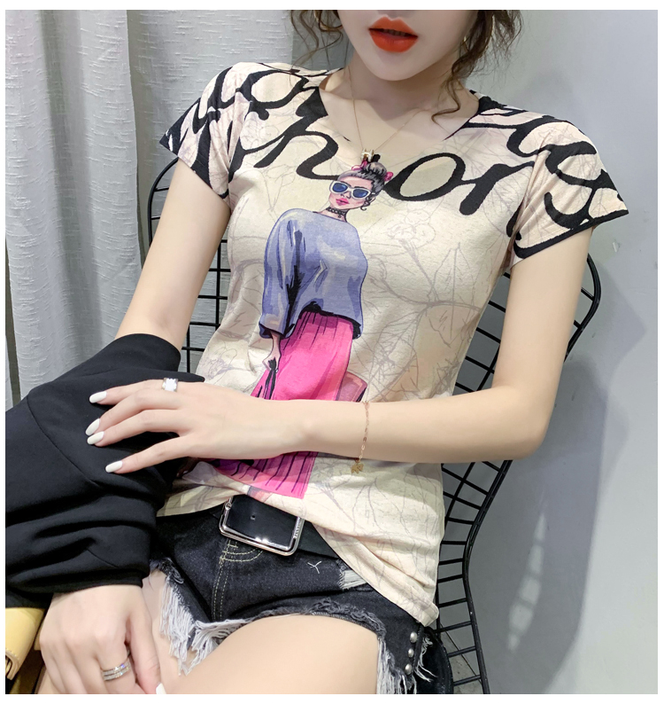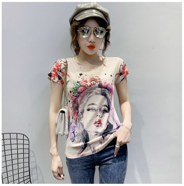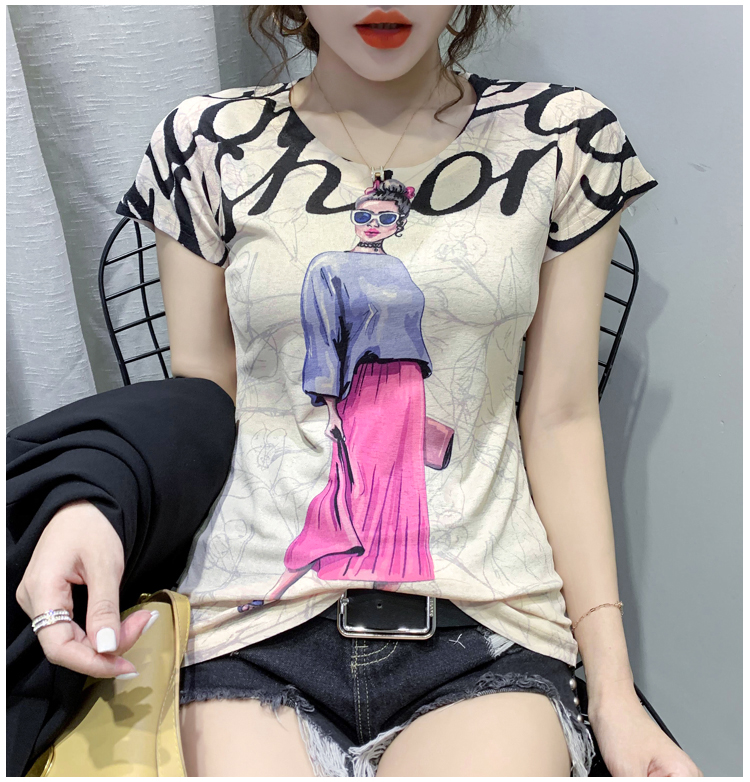 RY194# 2026夏装新款时尚定位印花短袖T恤打底衫修身上衣女