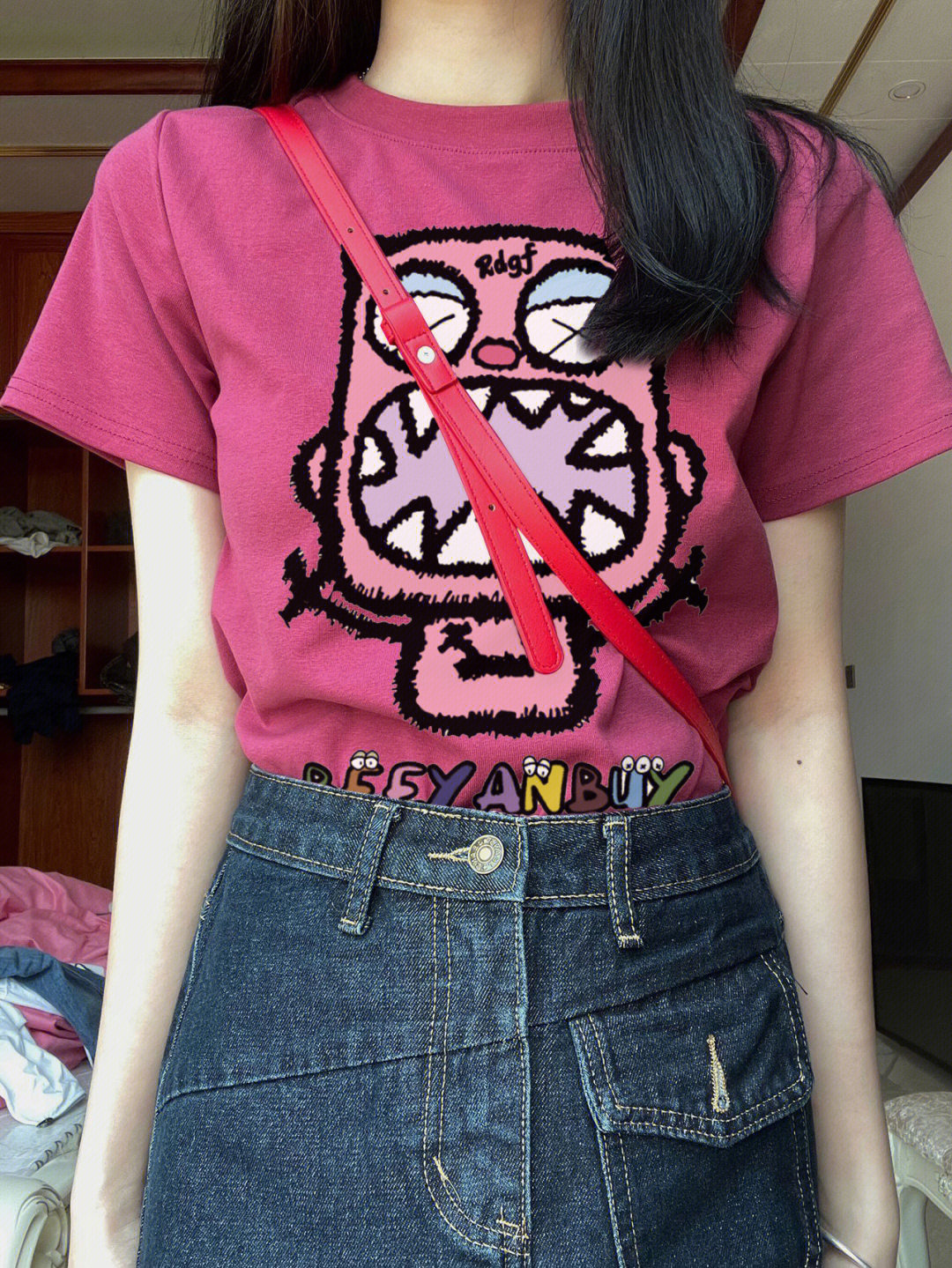 RY197# 2026夏装新款时尚定位印花短袖T恤打底衫修身上衣女