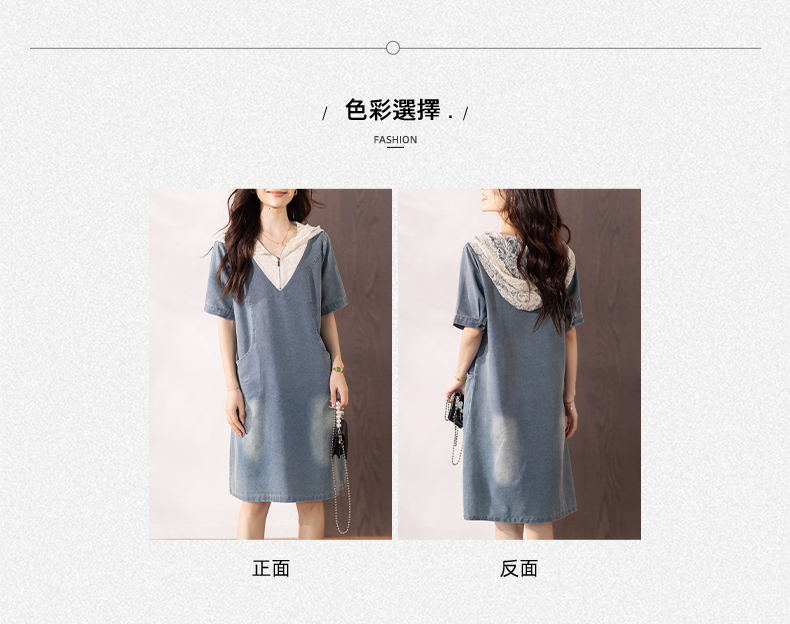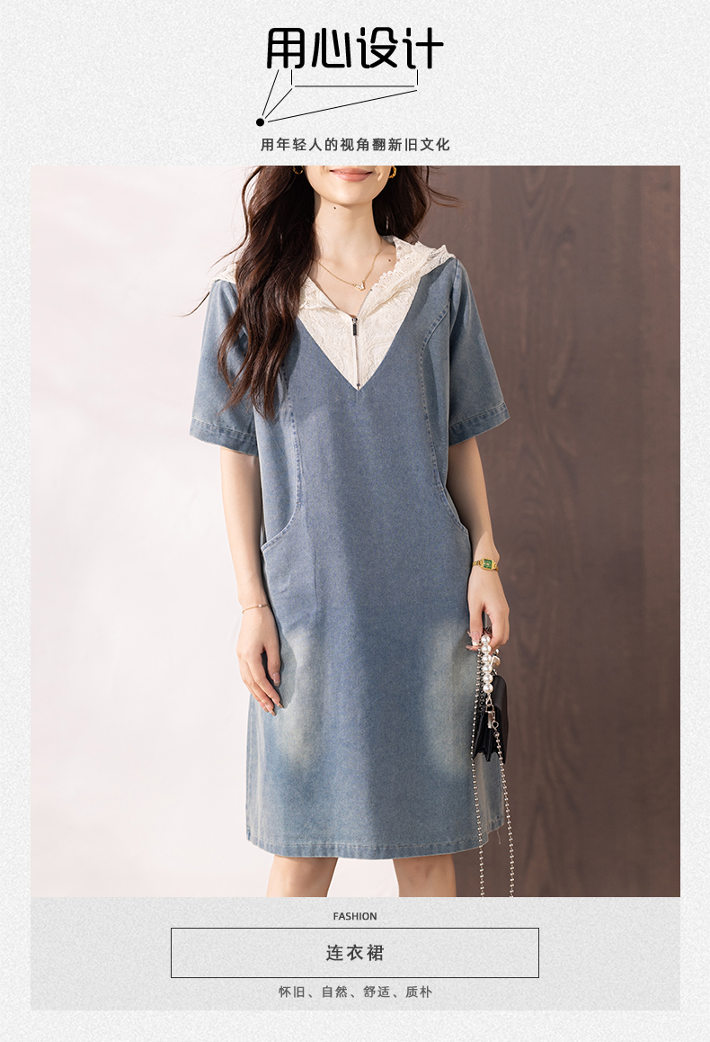 RY286# 宽松短袖连帽浅色牛仔裙子2026夏季新款连衣裙女