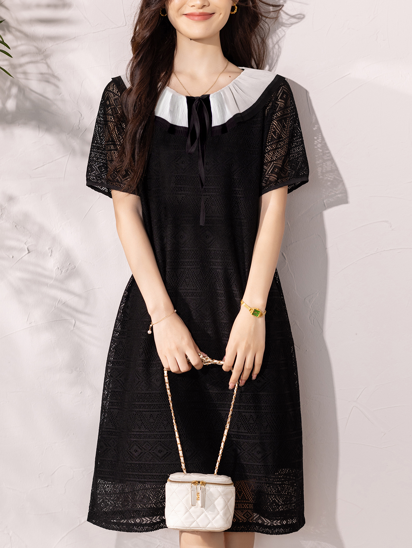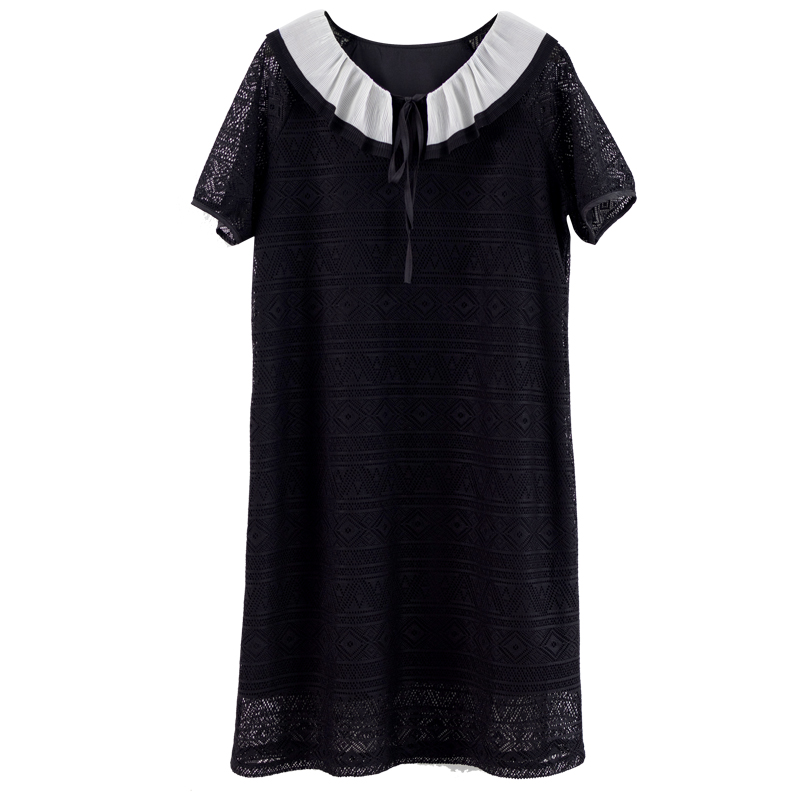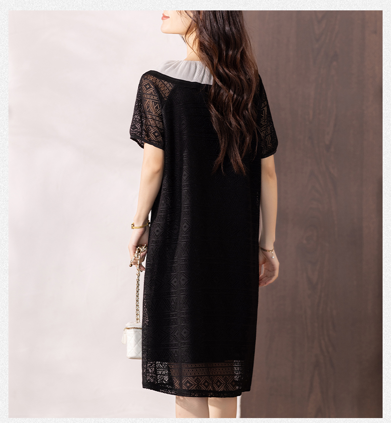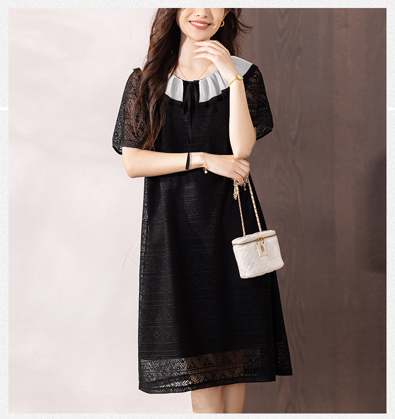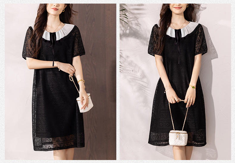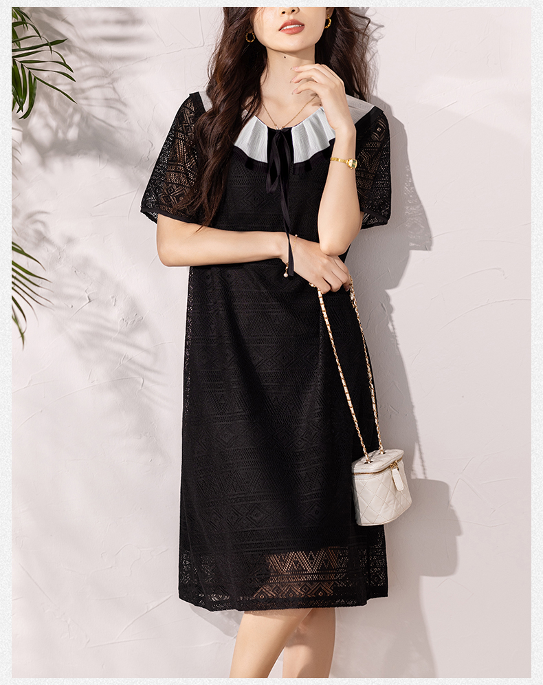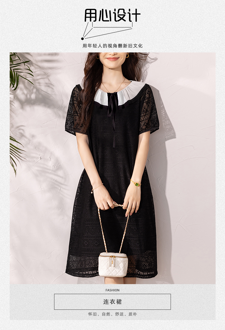 RY290# 气质黑色刺绣雪纺连衣裙女夏季新款裙子