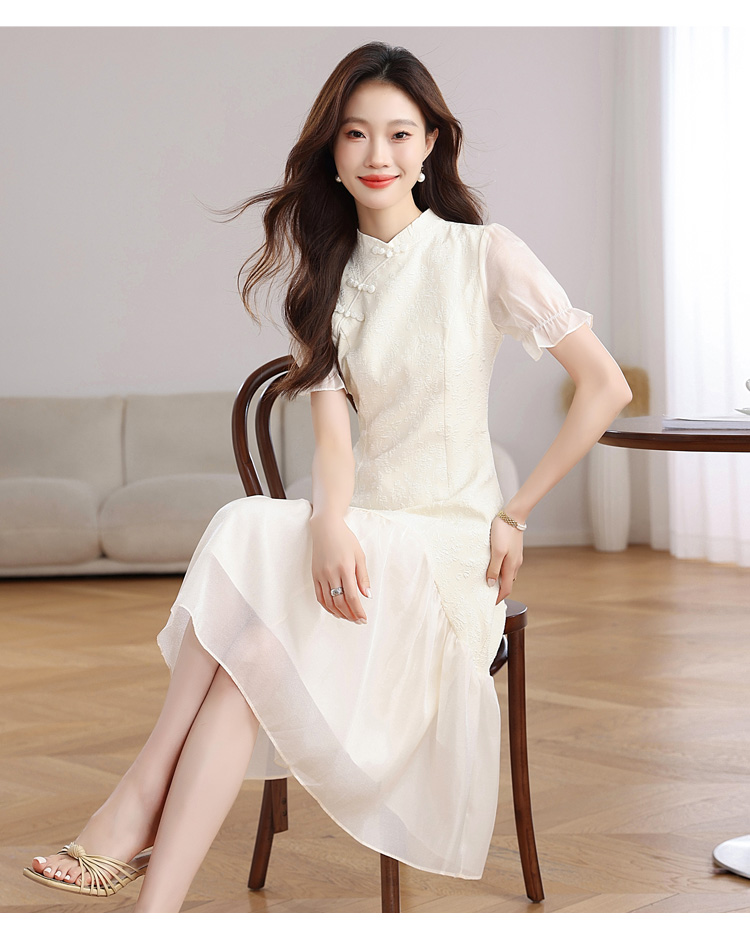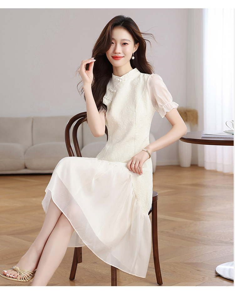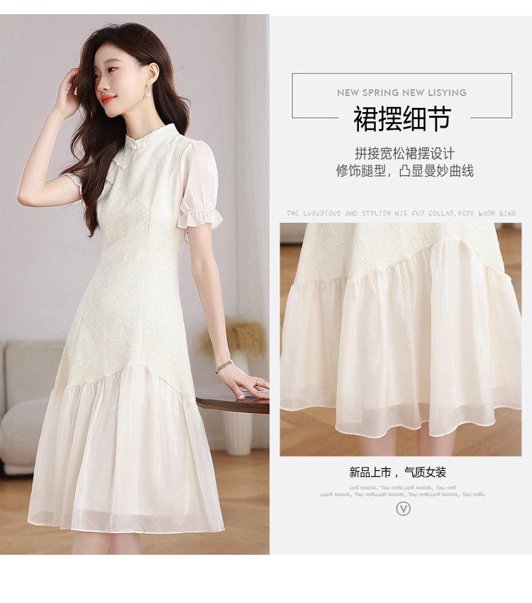 RY293# 实拍夏季女装新中式旗袍改良复古小香风连衣裙拼接设计感气质显瘦