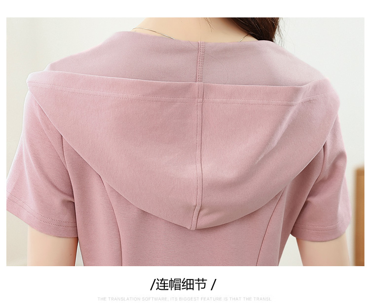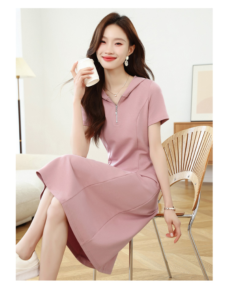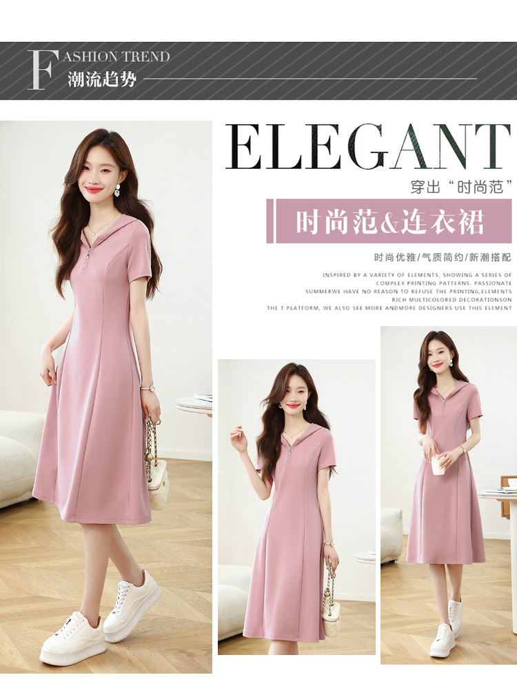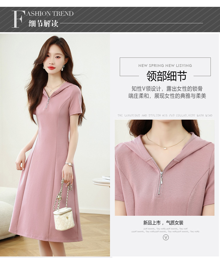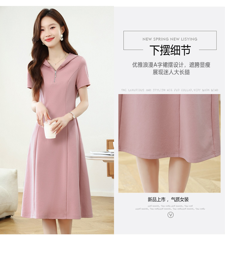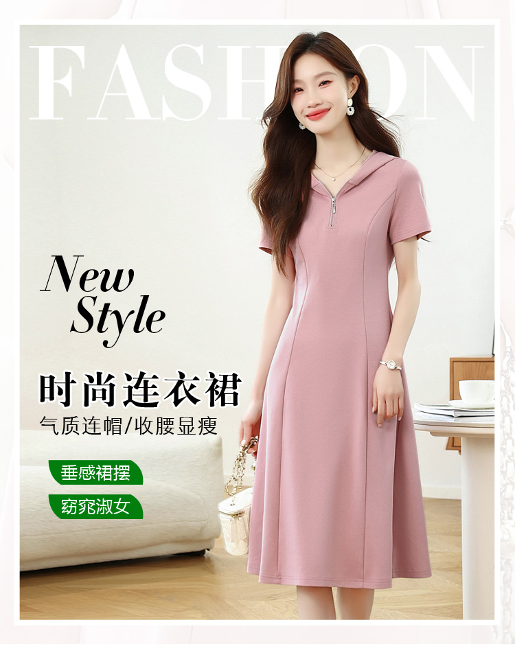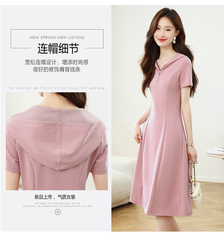 RY309# 实拍 休闲显瘦连帽连衣裙2026夏季新款遮肚子显瘦短袖女连衣裙