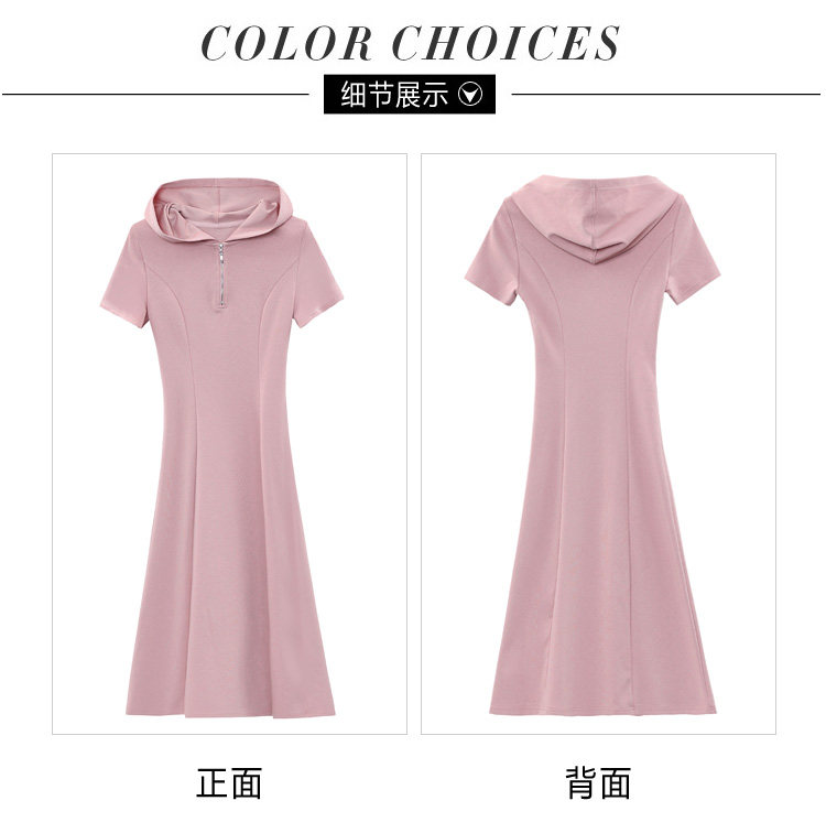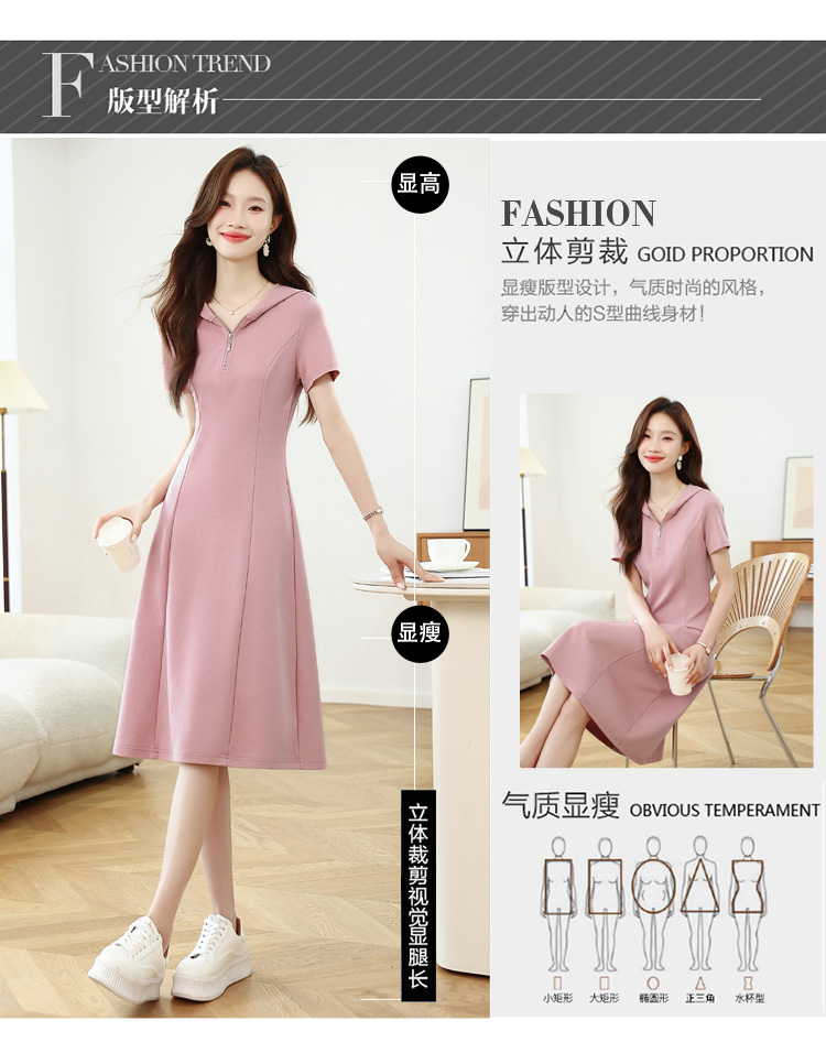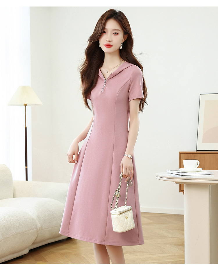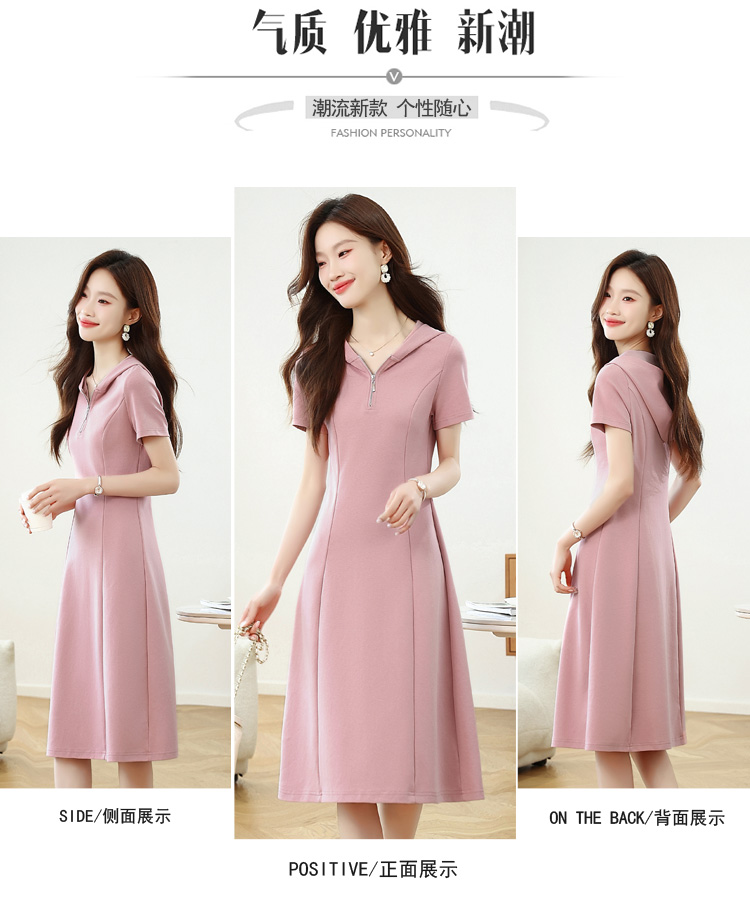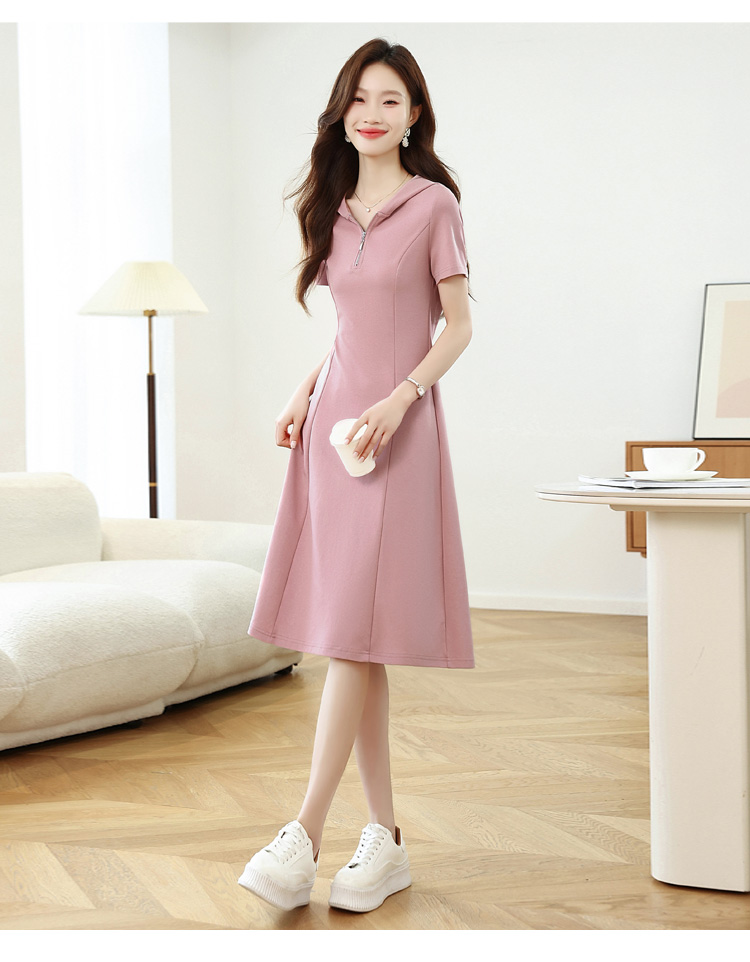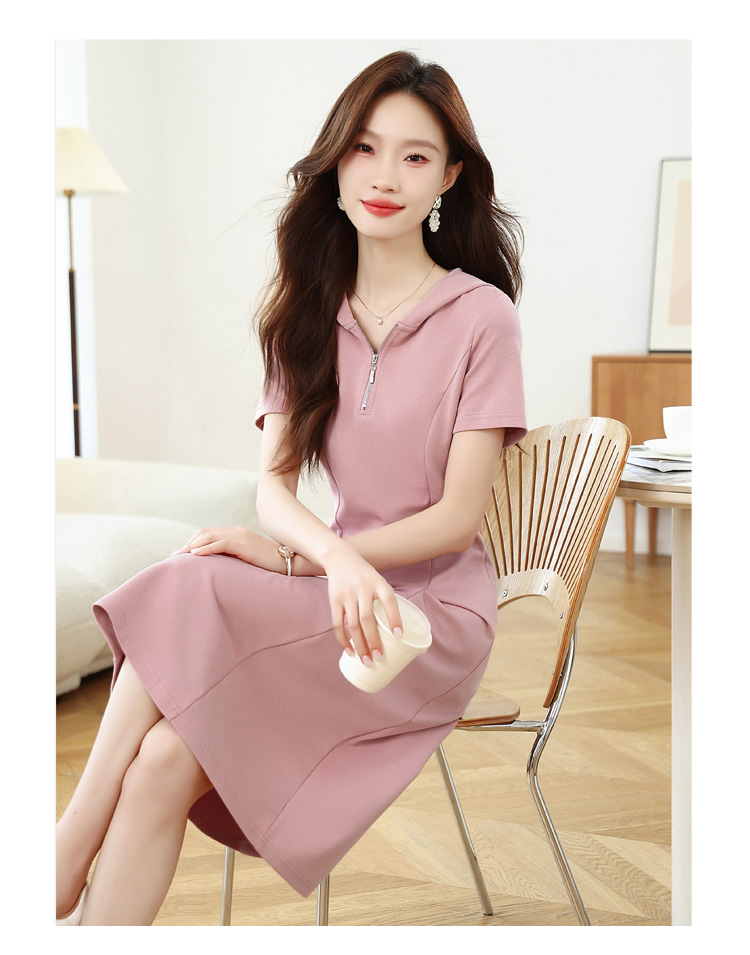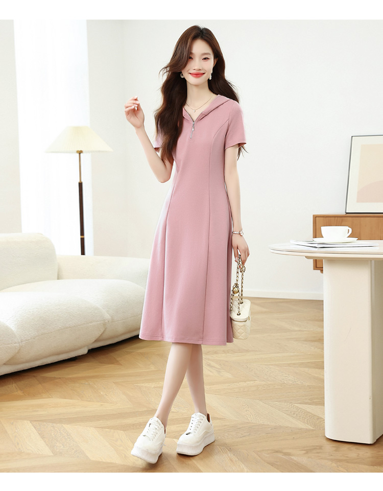 RY309# 实拍 休闲显瘦连帽连衣裙2026夏季新款遮肚子显瘦短袖女连衣裙