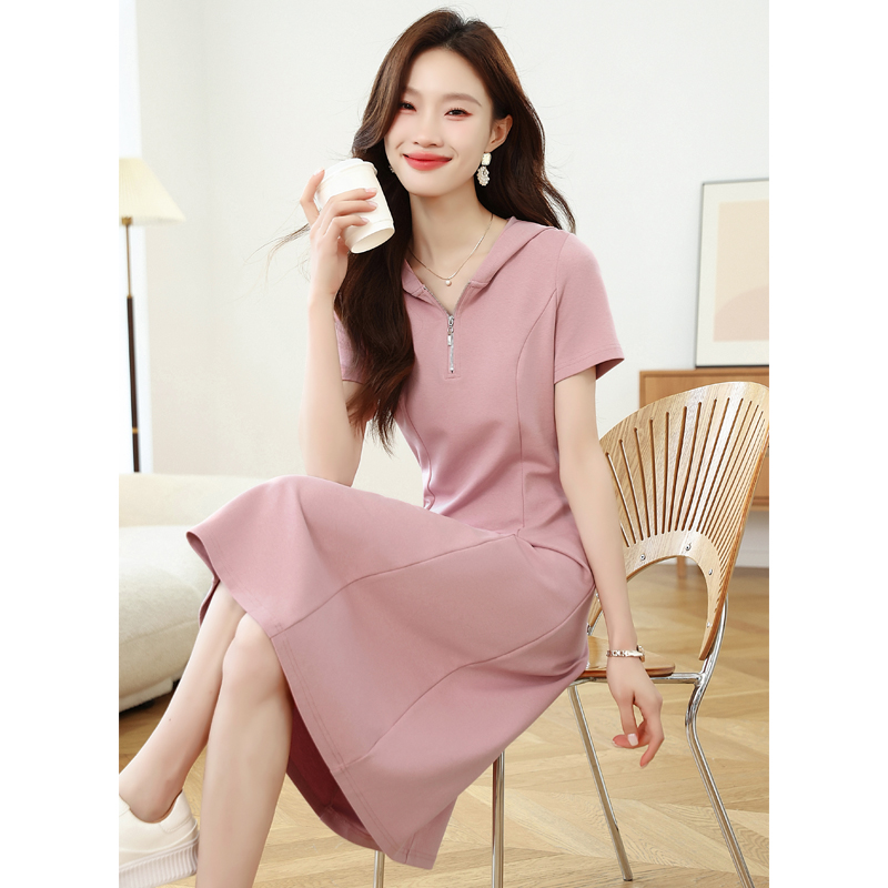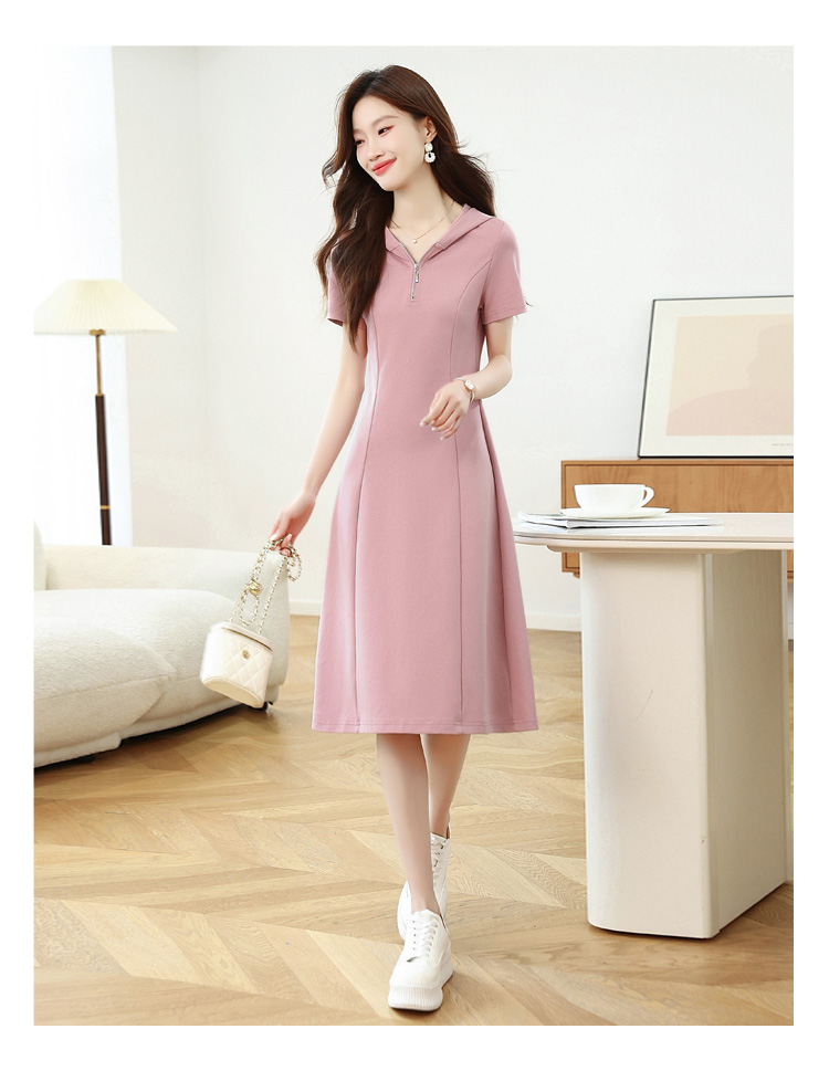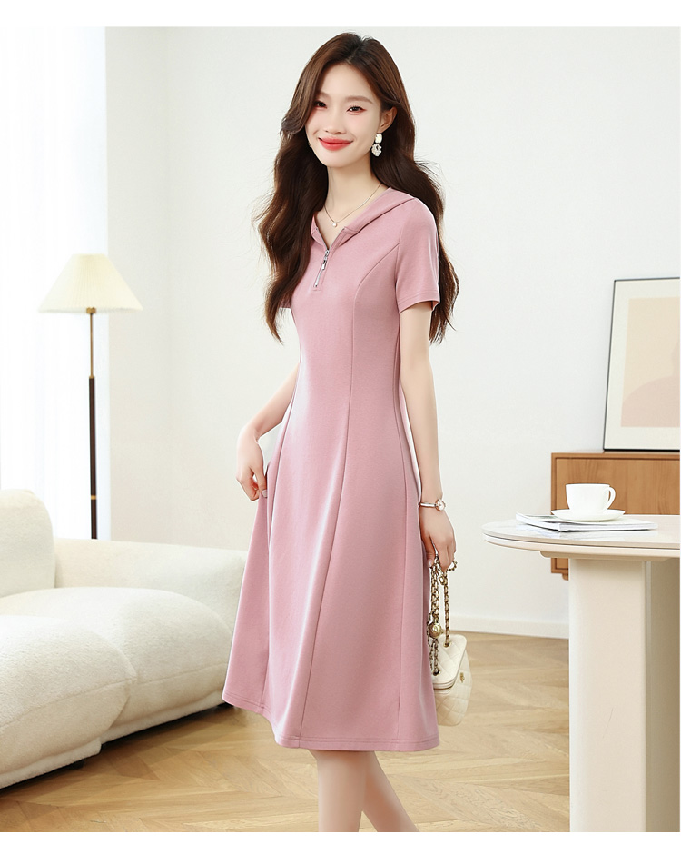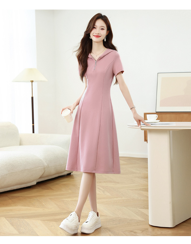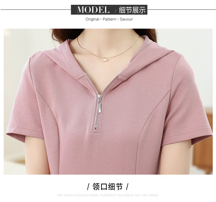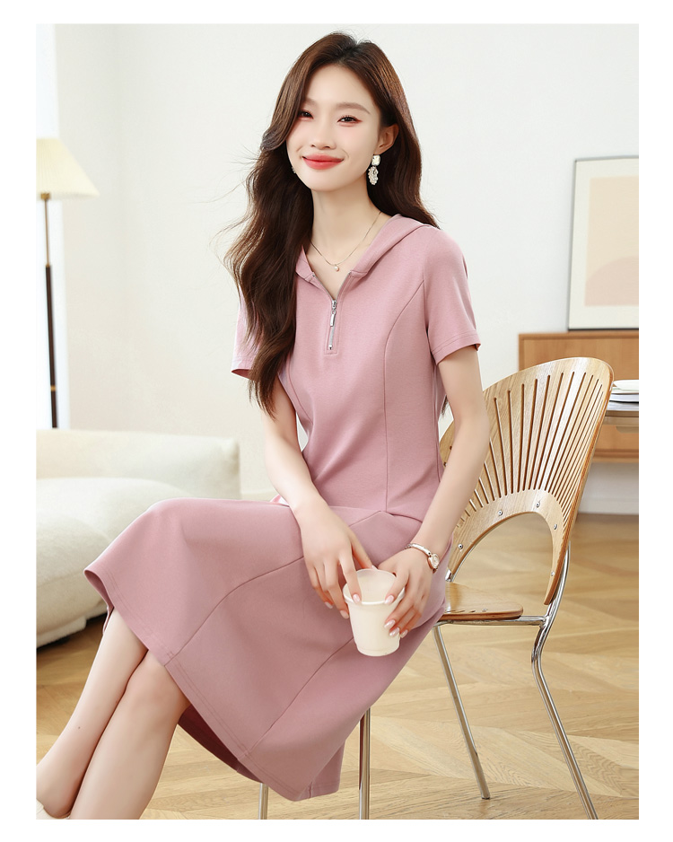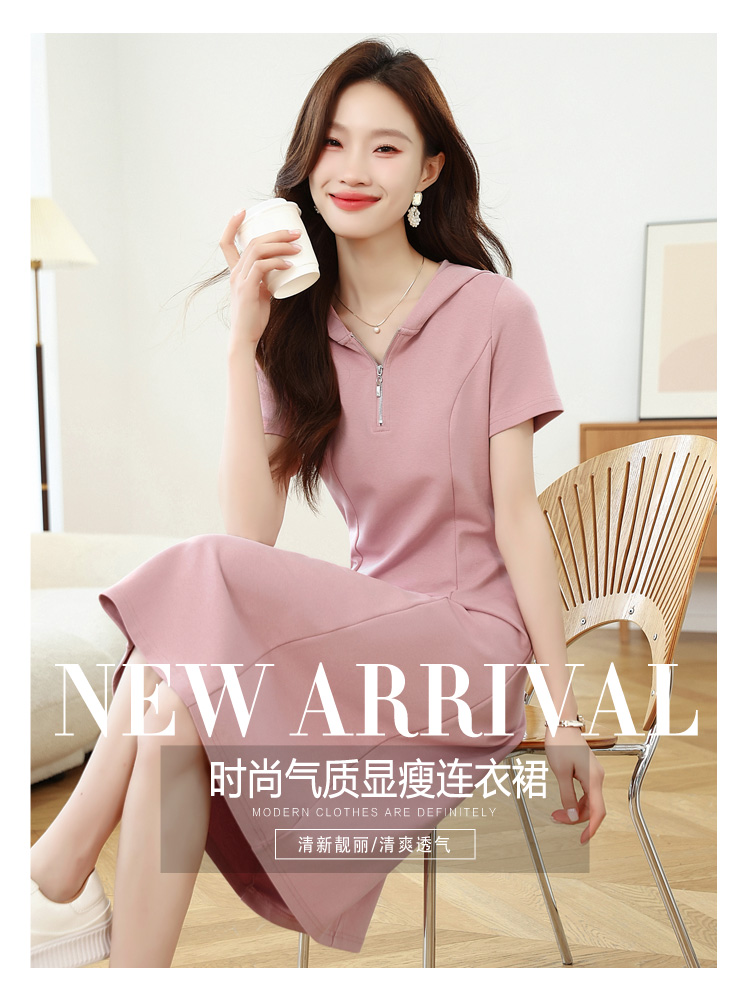 RY309# 实拍 休闲显瘦连帽连衣裙2026夏季新款遮肚子显瘦短袖女连衣裙