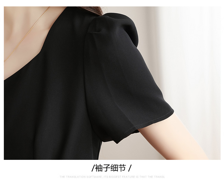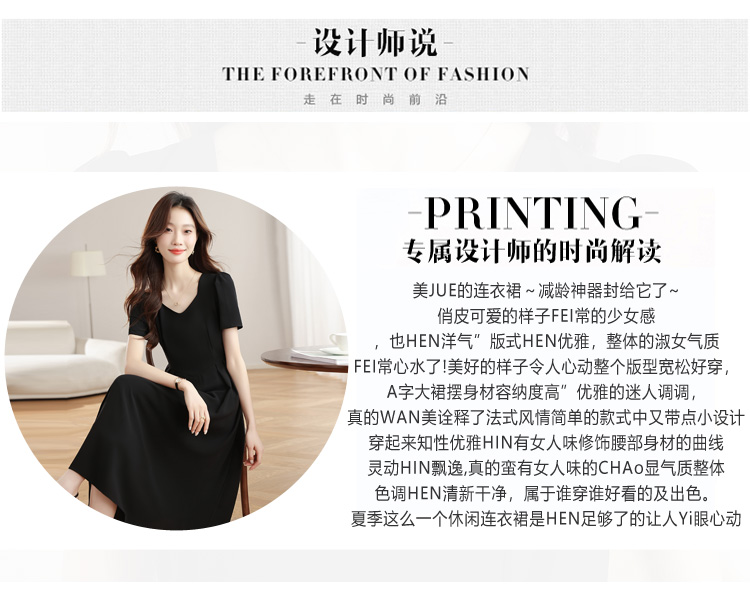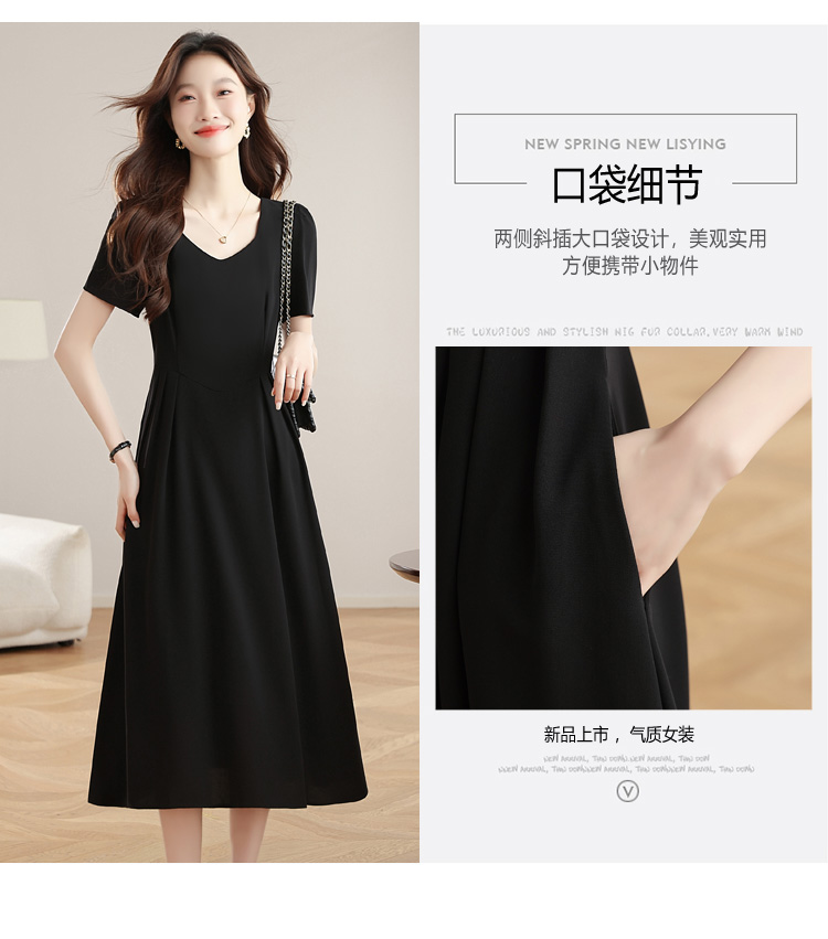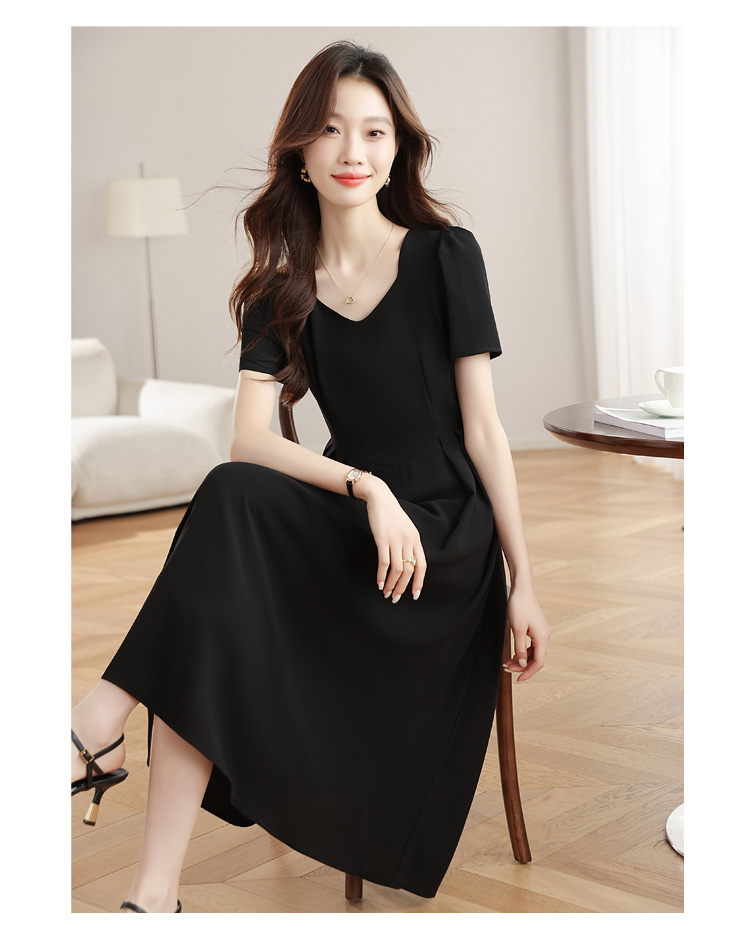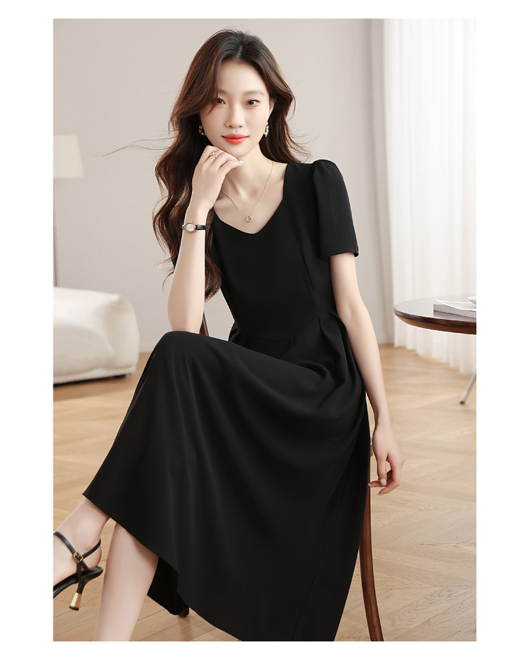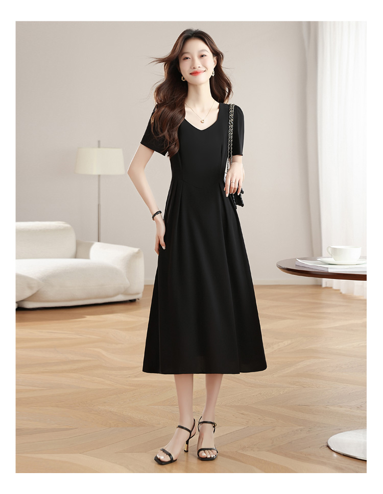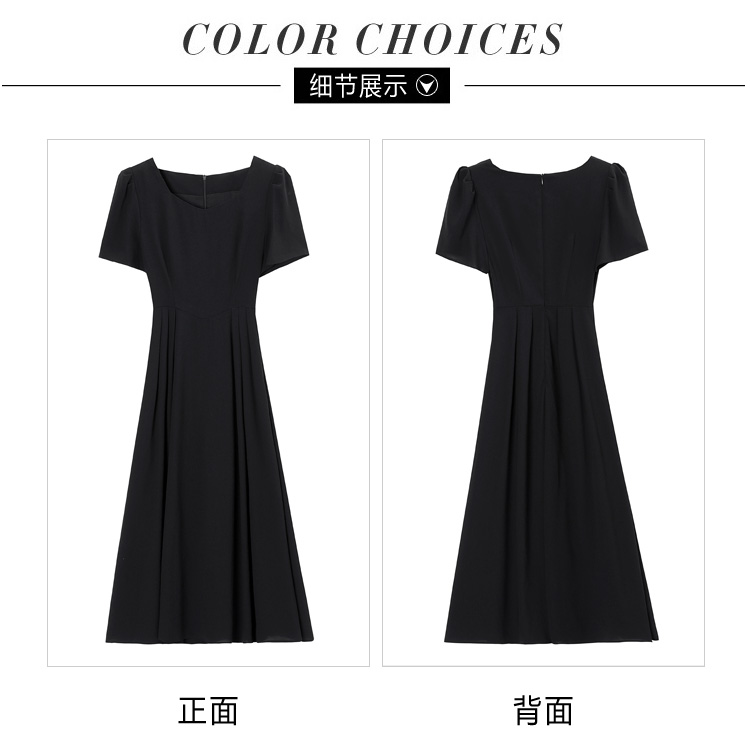 RY311# 实拍 高级感赫本风短袖连衣裙女夏新款显瘦收腰长裙U领a字裙子女