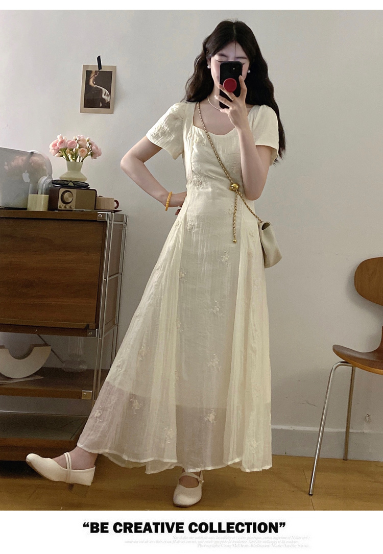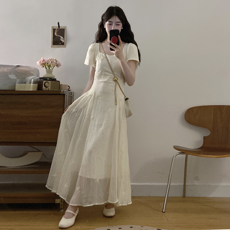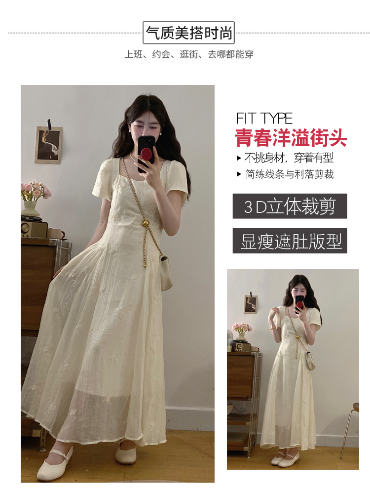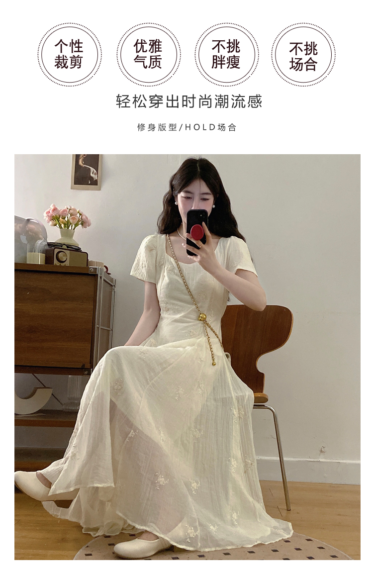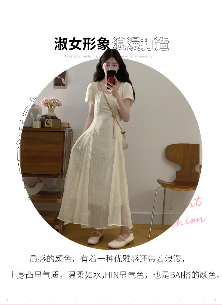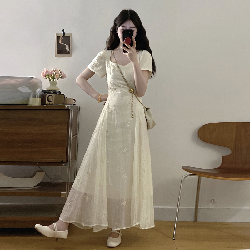 RY326# 实拍~大码法式刺绣连衣裙女夏季收腰短袖仙女裙温柔风初恋约会裙
