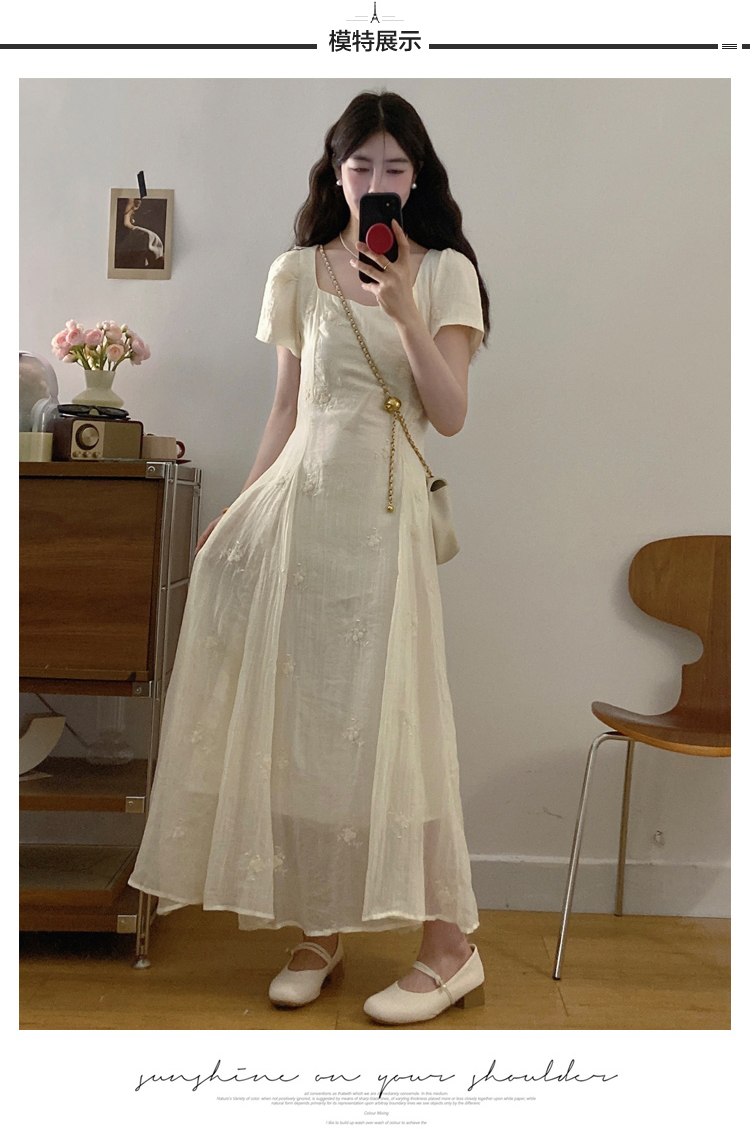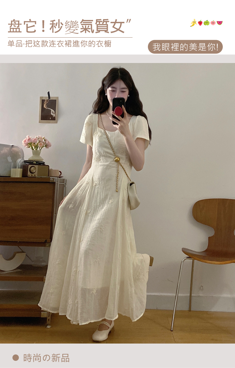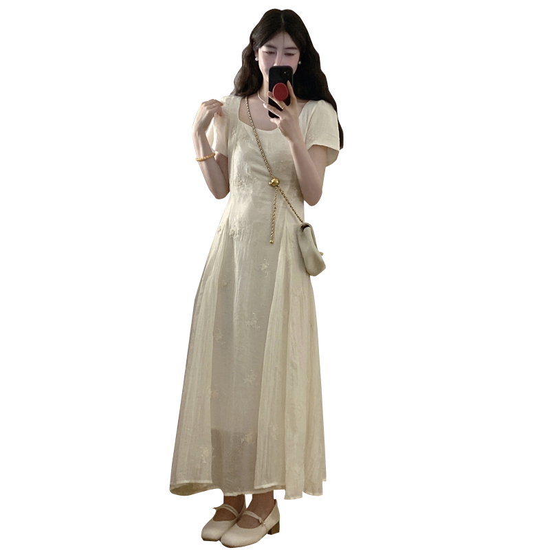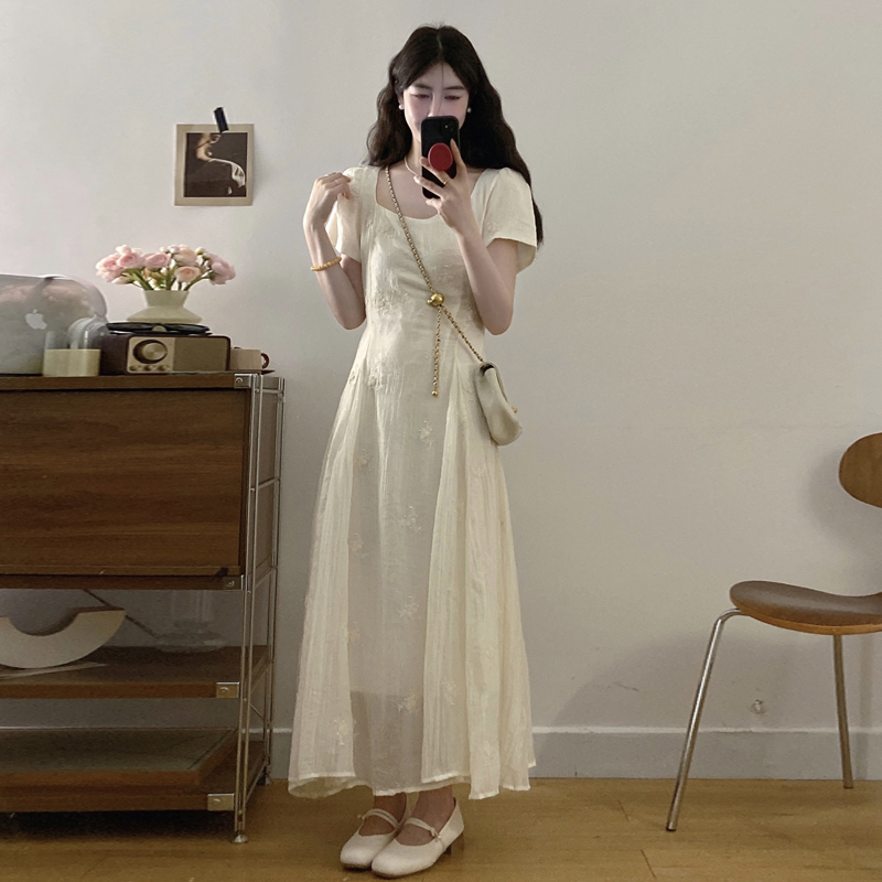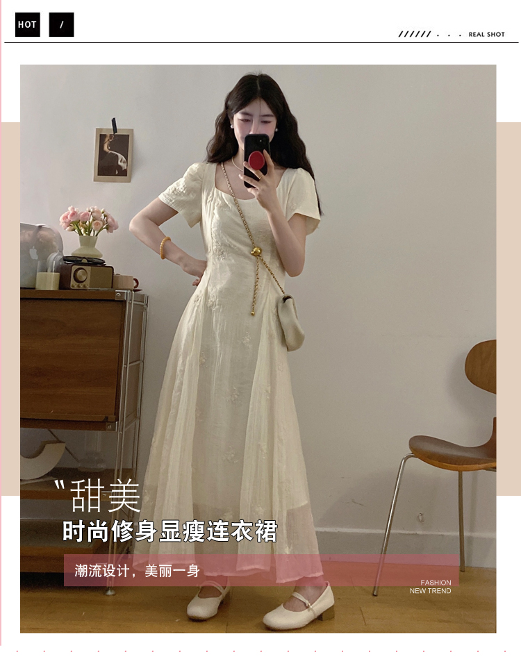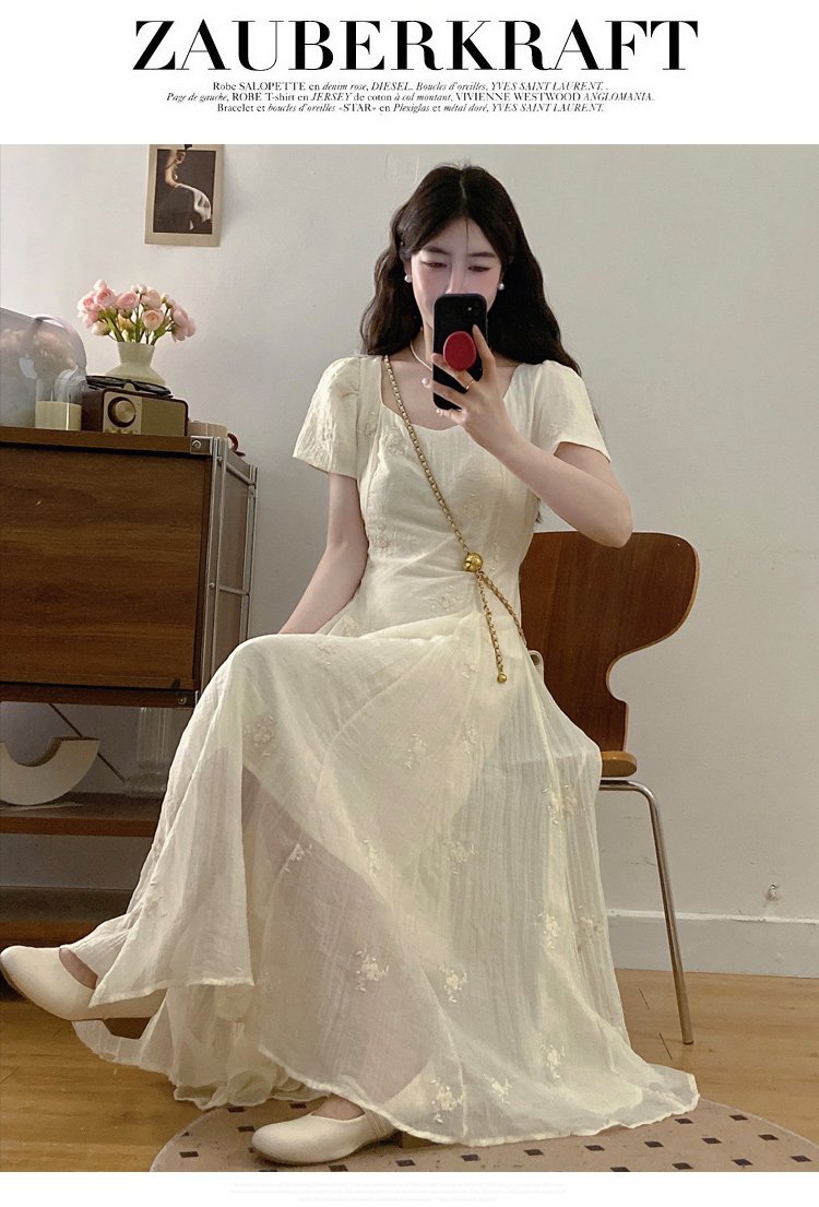 RY326# 实拍~大码法式刺绣连衣裙女夏季收腰短袖仙女裙温柔风初恋约会裙