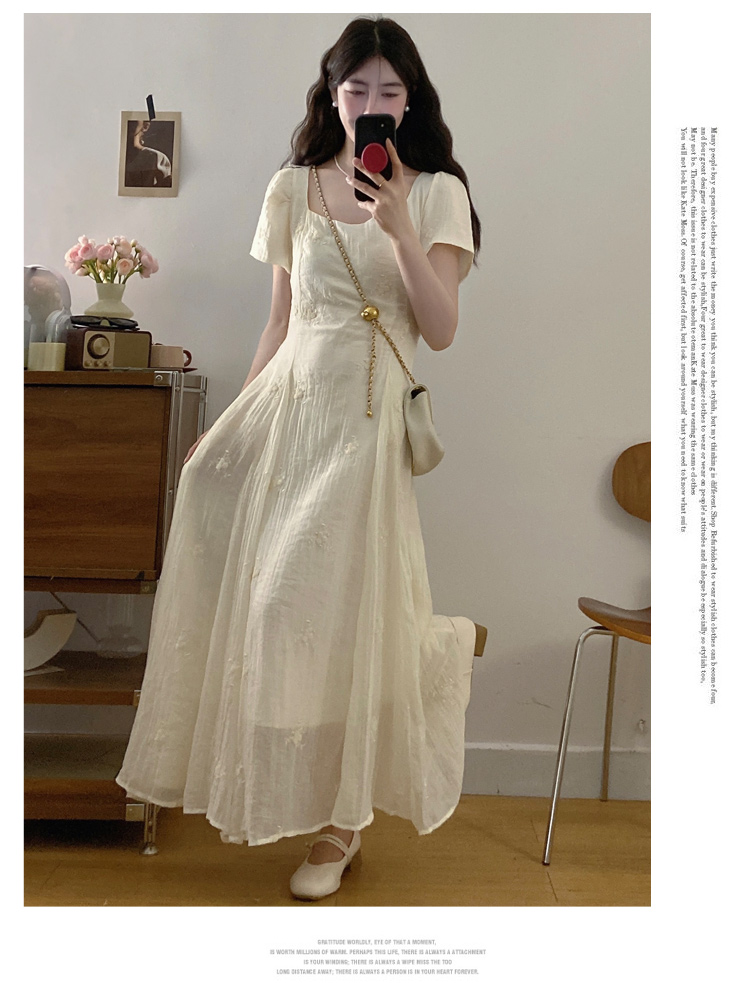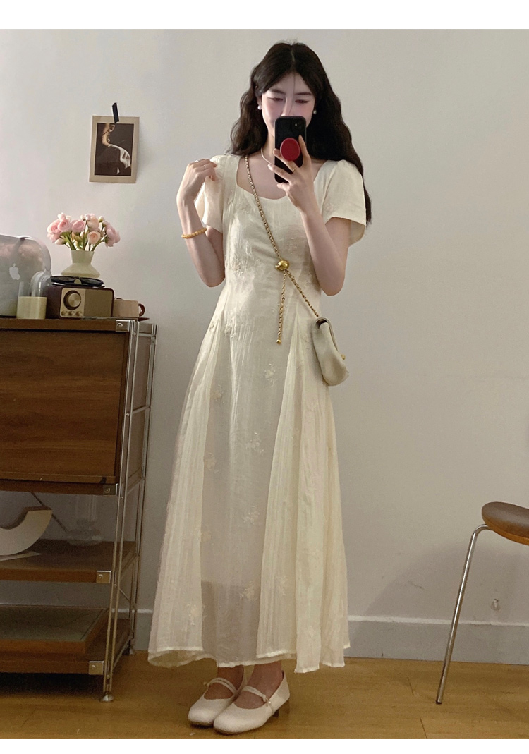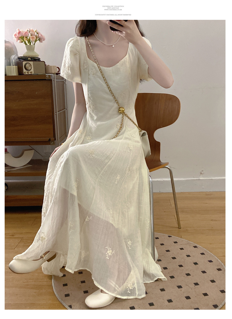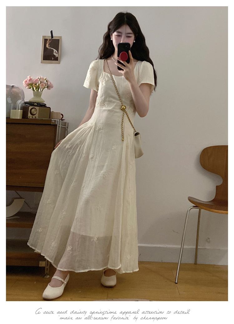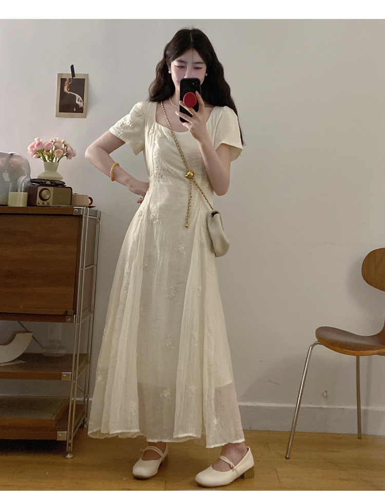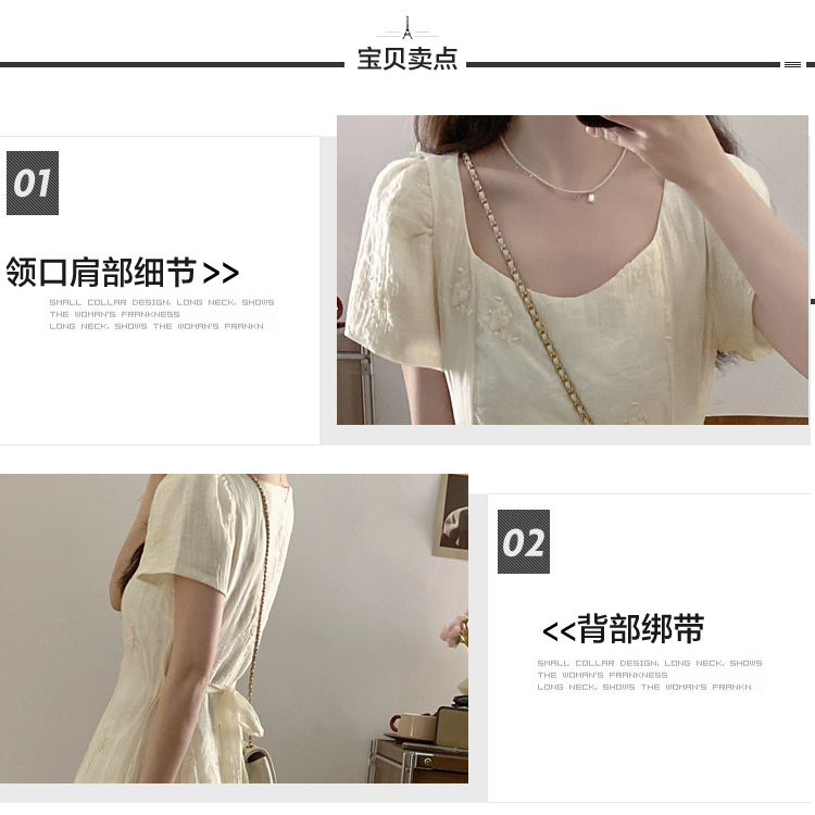 RY326# 实拍~大码法式刺绣连衣裙女夏季收腰短袖仙女裙温柔风初恋约会裙