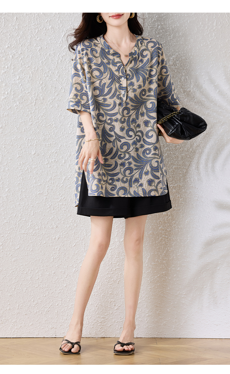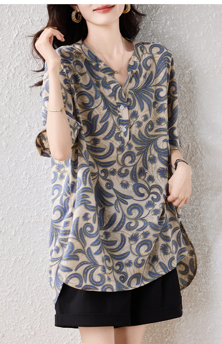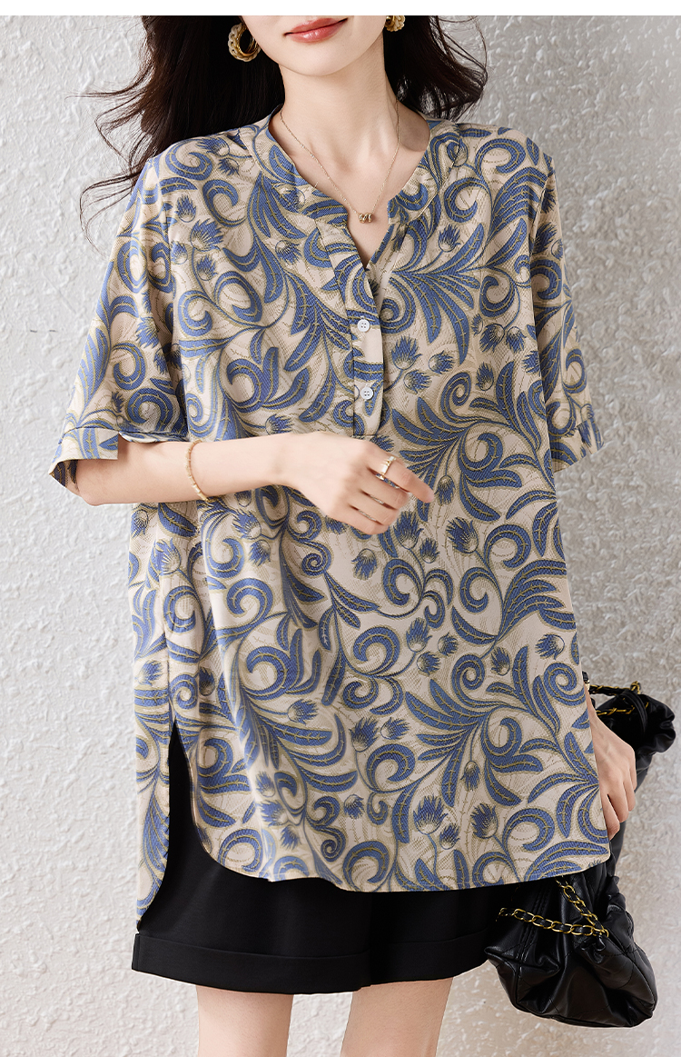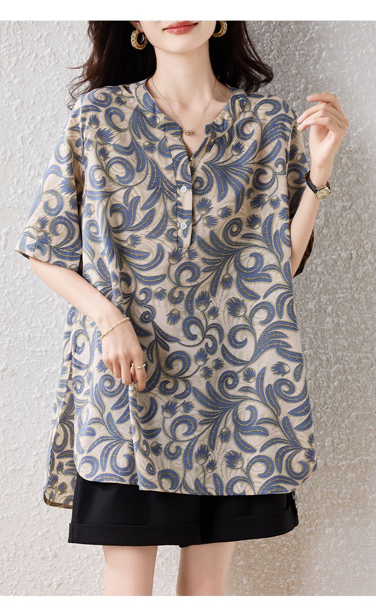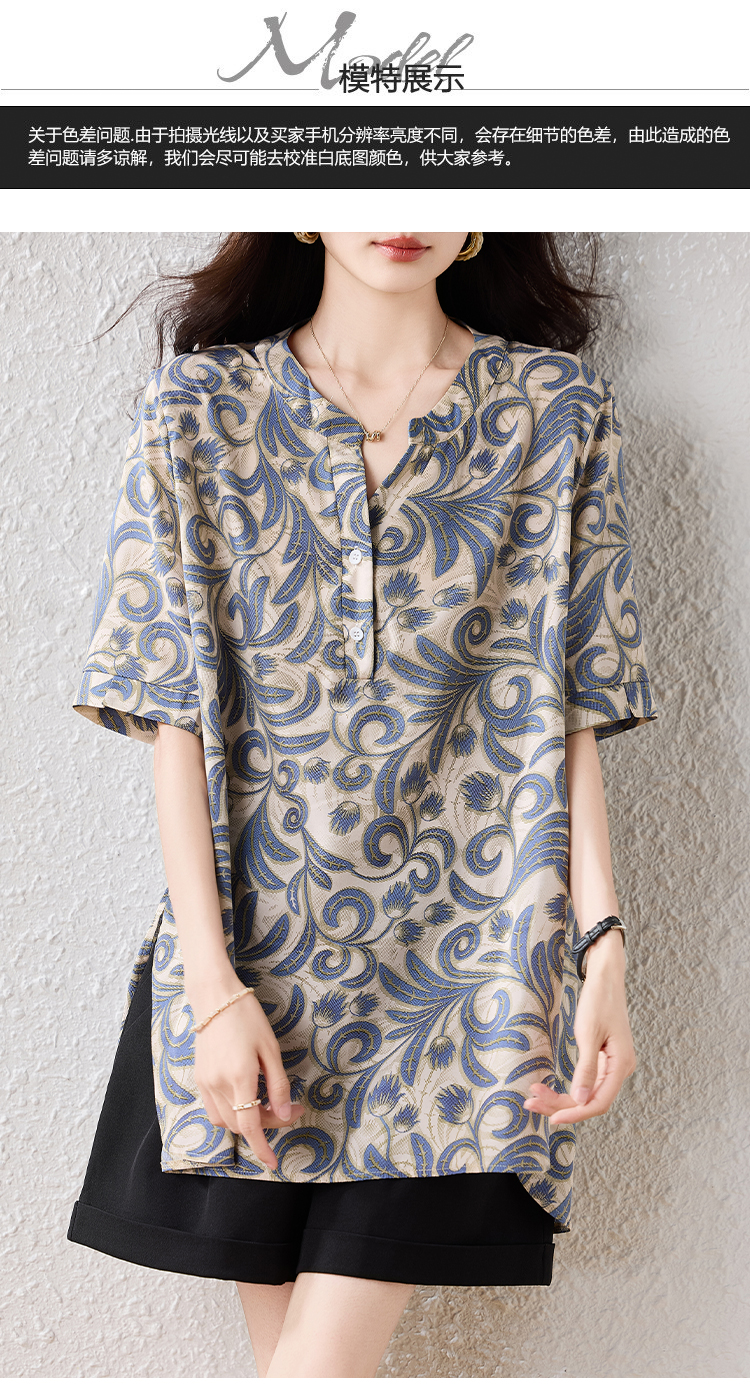 RY377# 实拍2026夏季新款V领短袖宽松型中长款大码T恤时尚透气显瘦上衣女