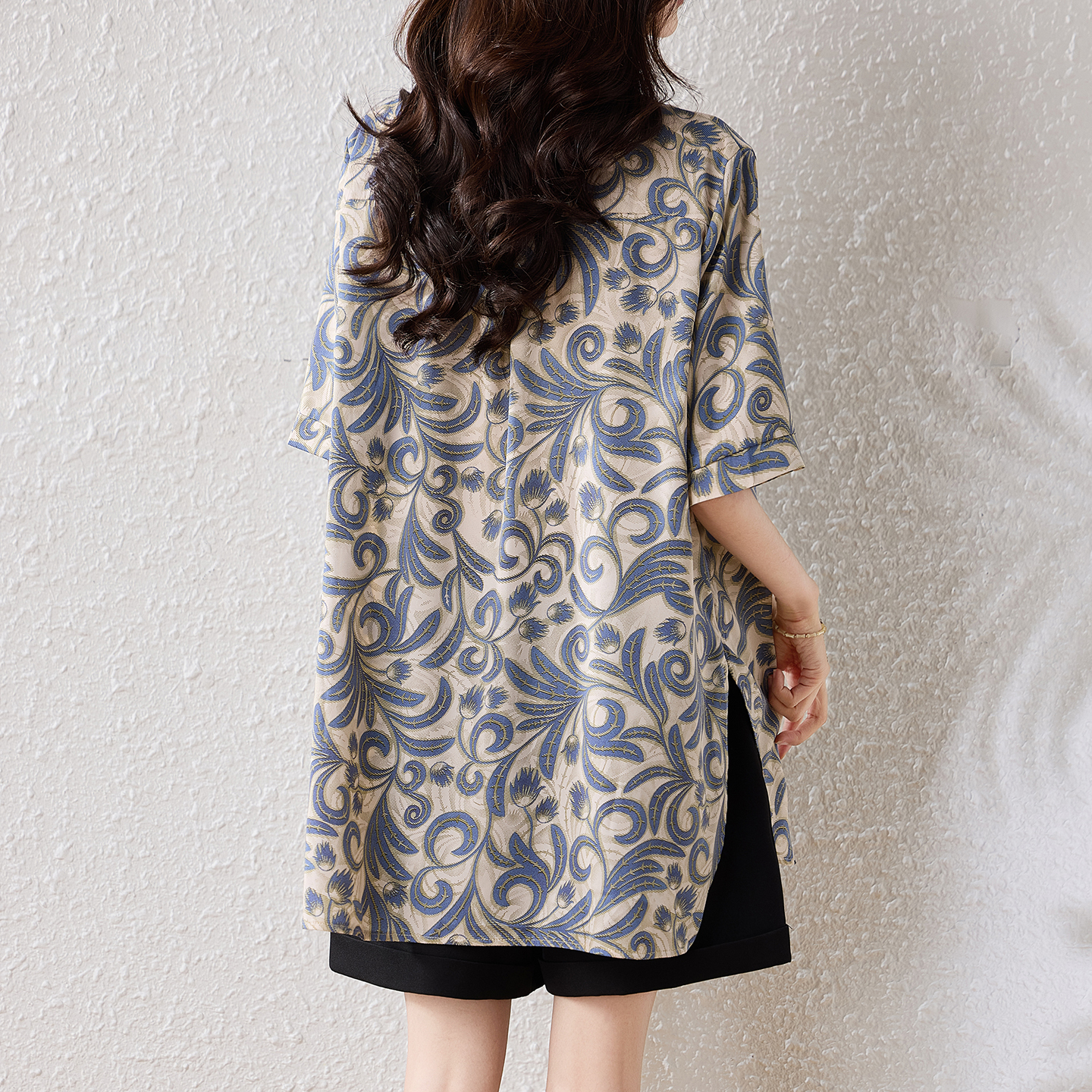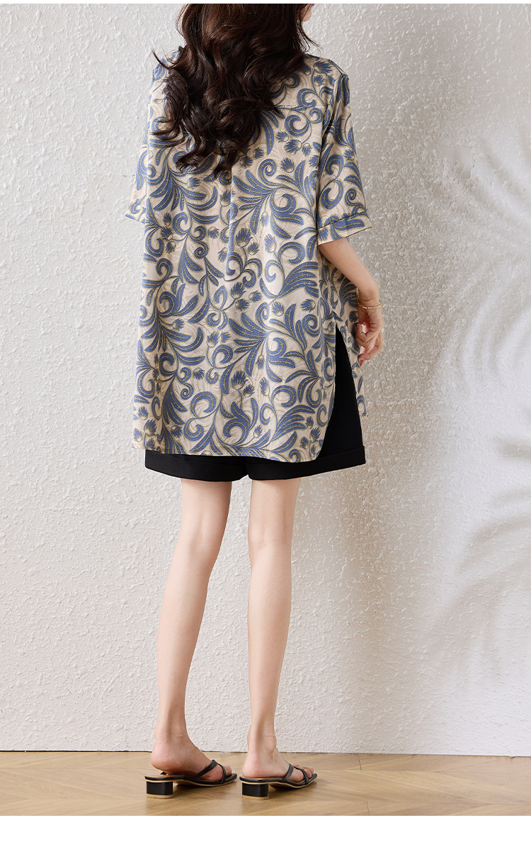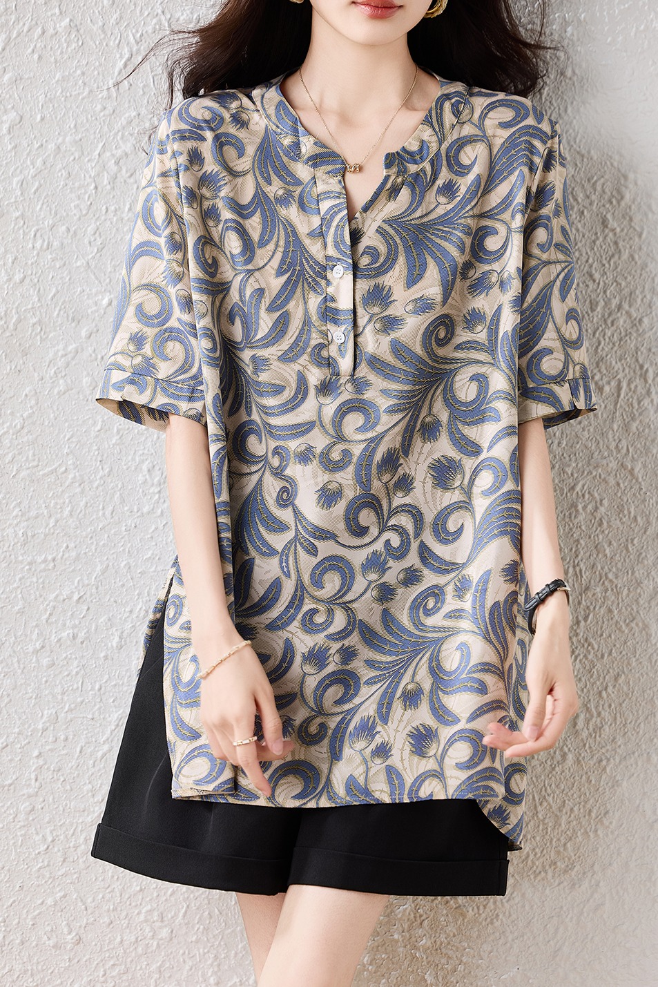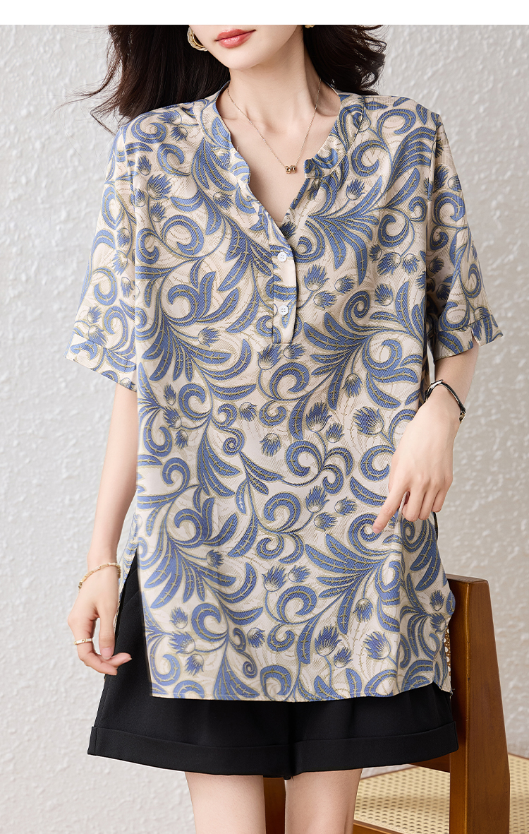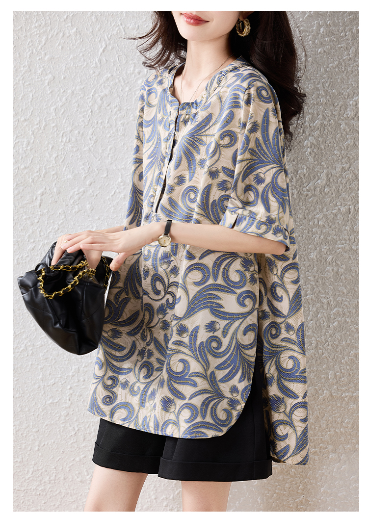 RY377# 实拍2026夏季新款V领短袖宽松型中长款大码T恤时尚透气显瘦上衣女