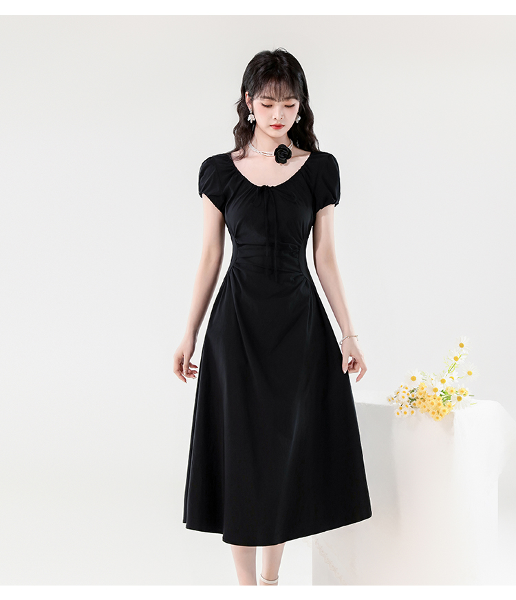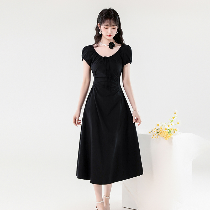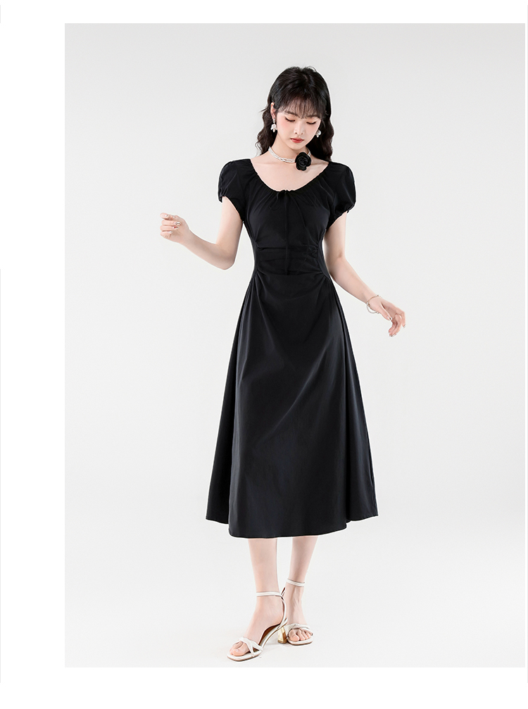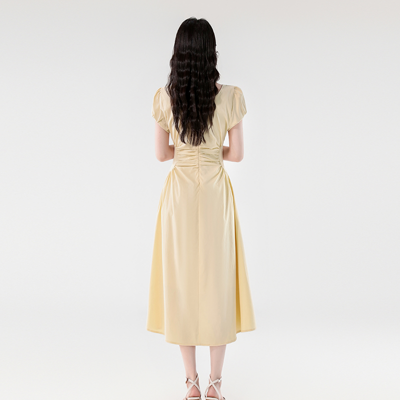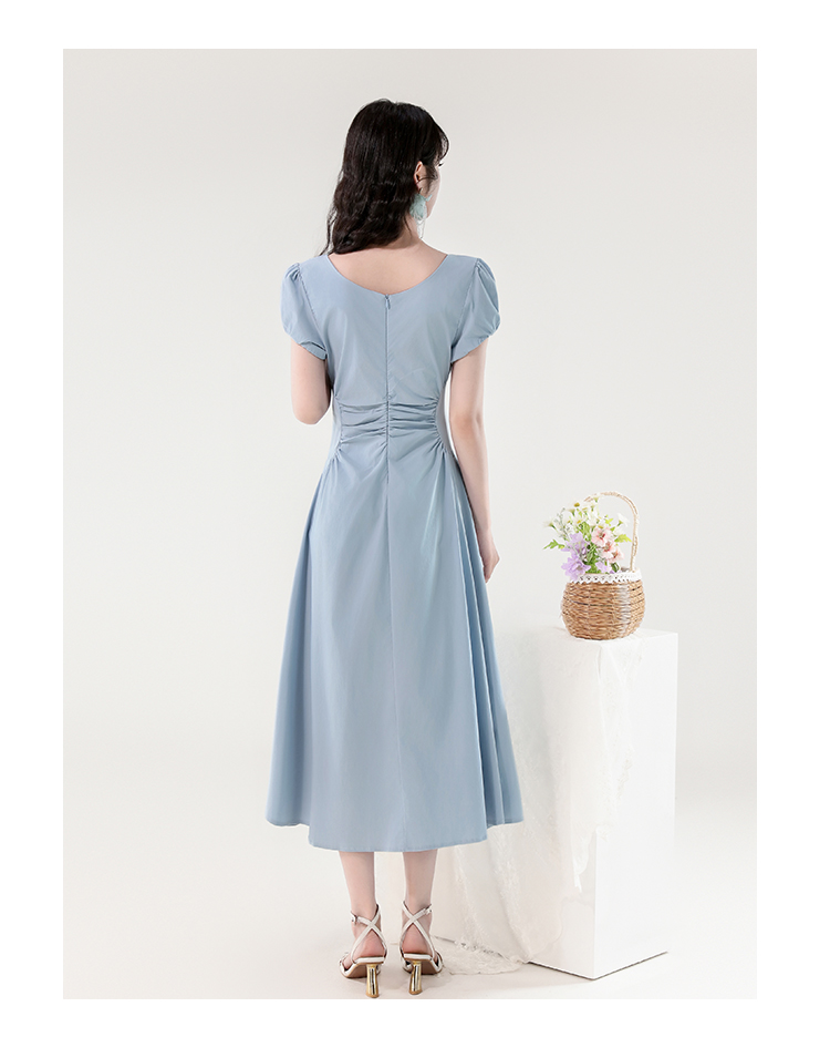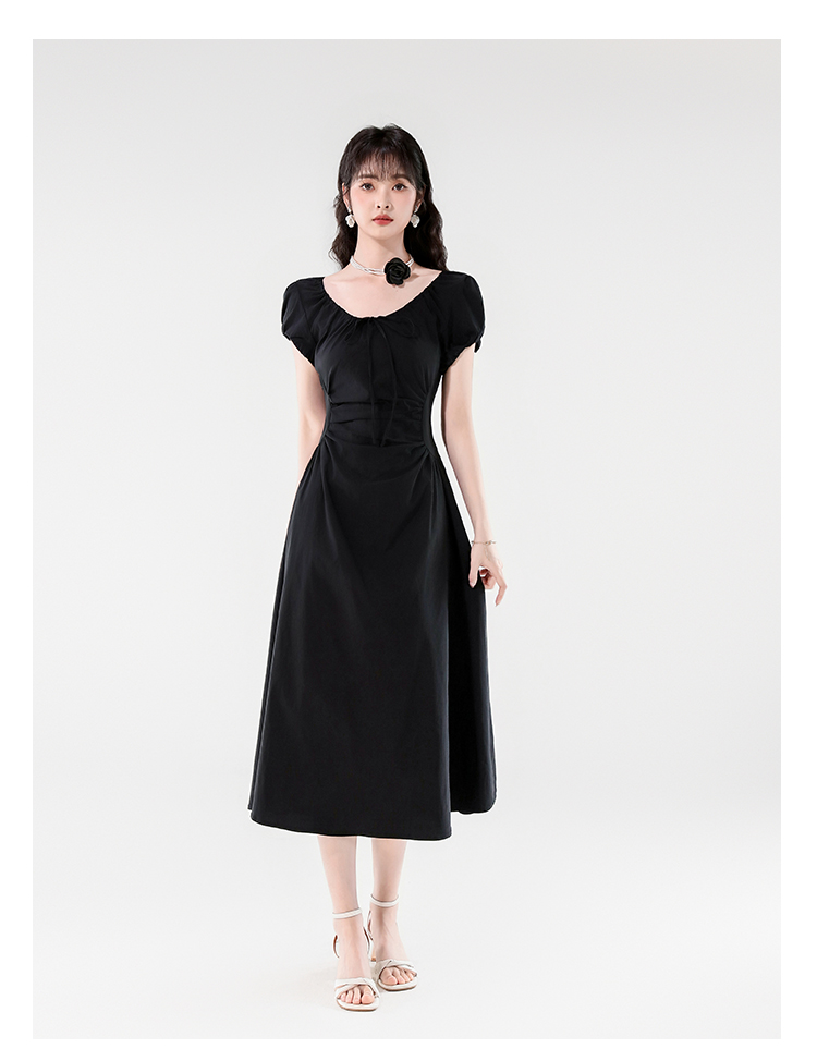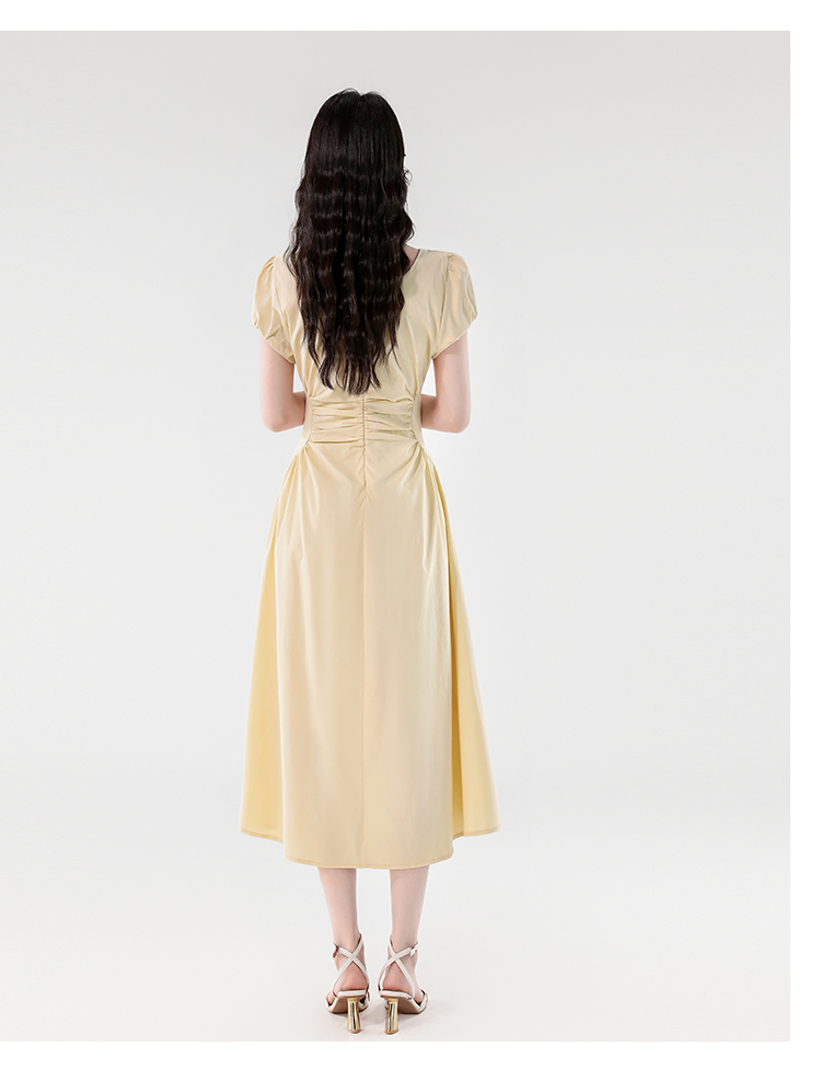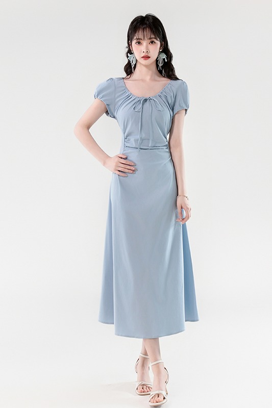 RY390# 实拍2026夏新款韩版甜美减龄抽绳系带褶皱收腰弹力显瘦长款连衣裙