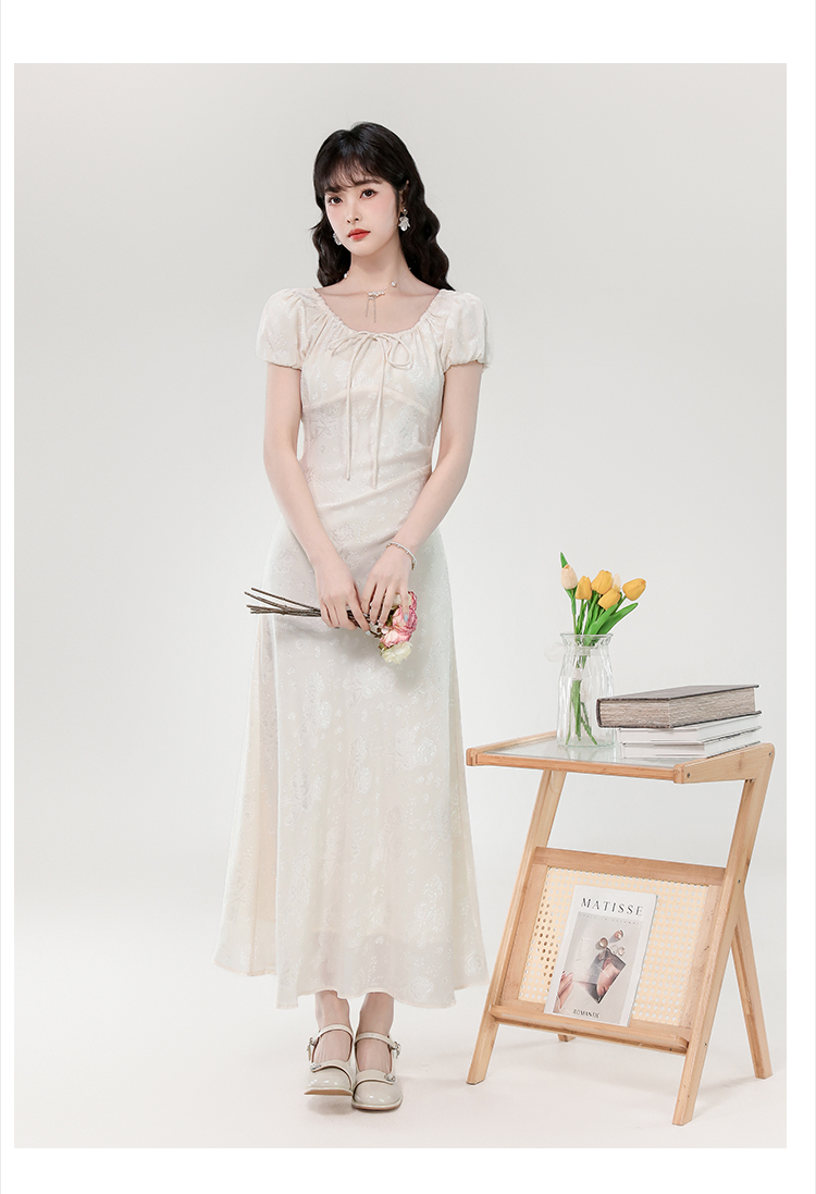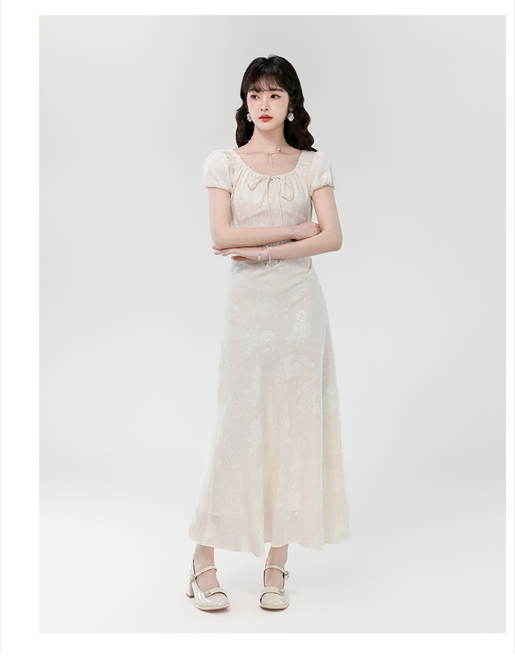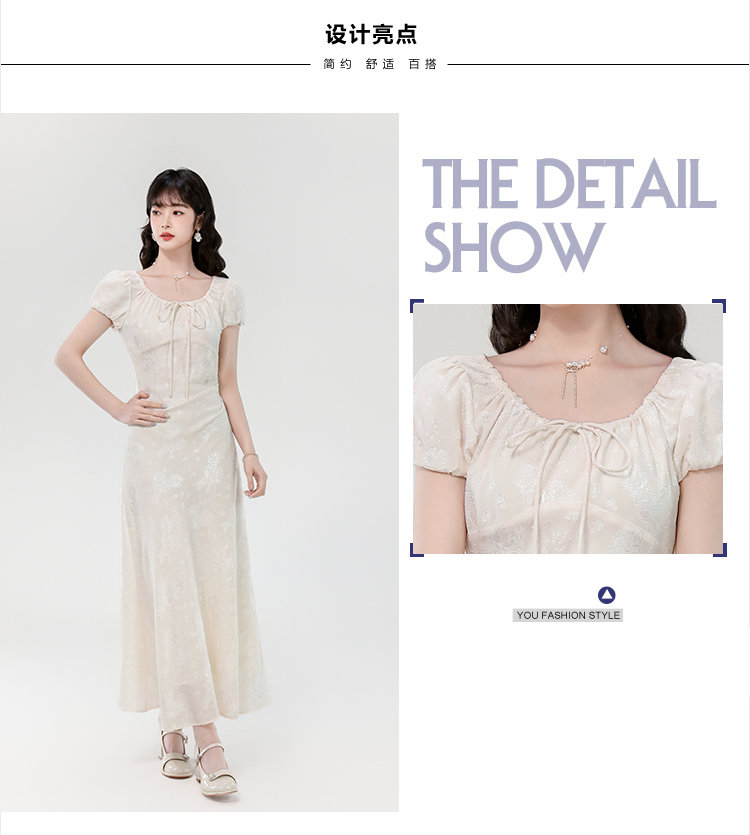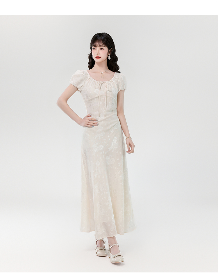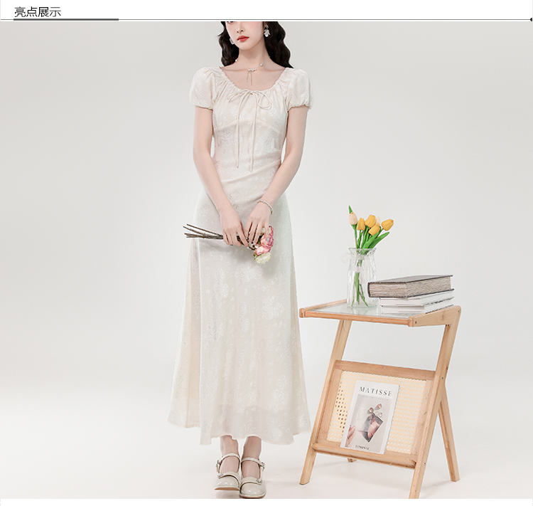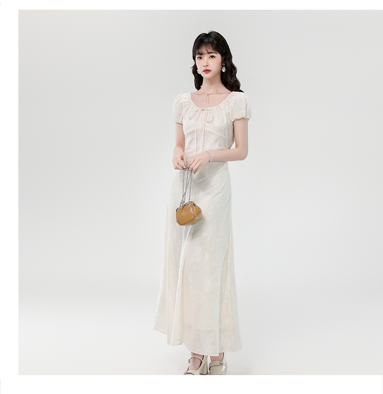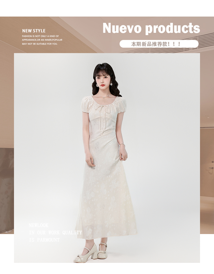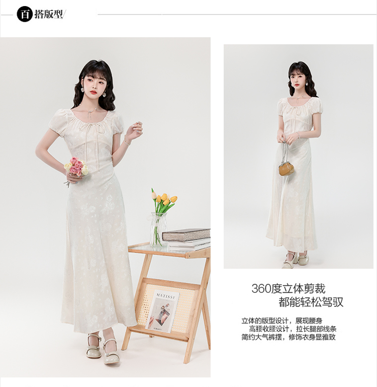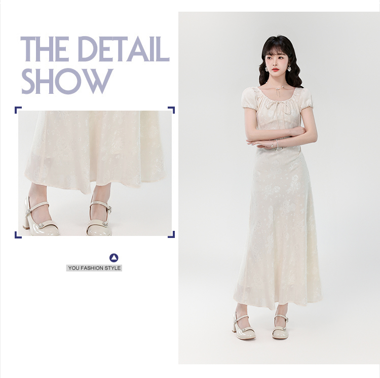 RY393# 实拍2026夏季新款法式温柔优雅提花抽绳气质收腰显瘦长款连衣裙