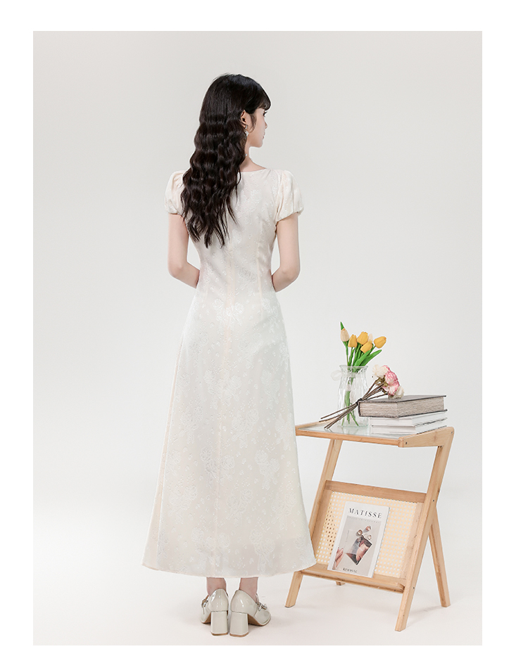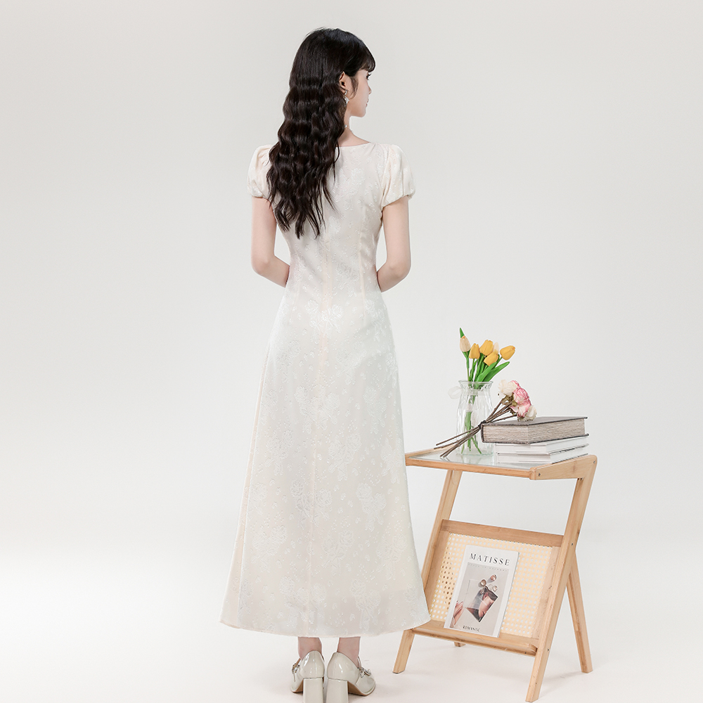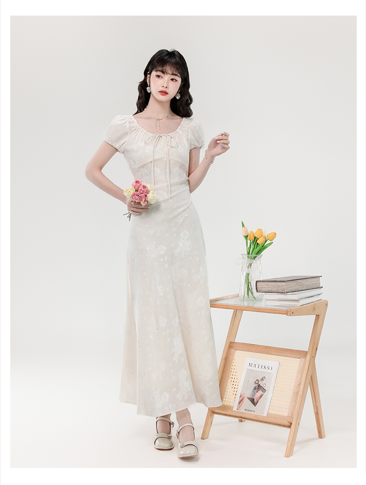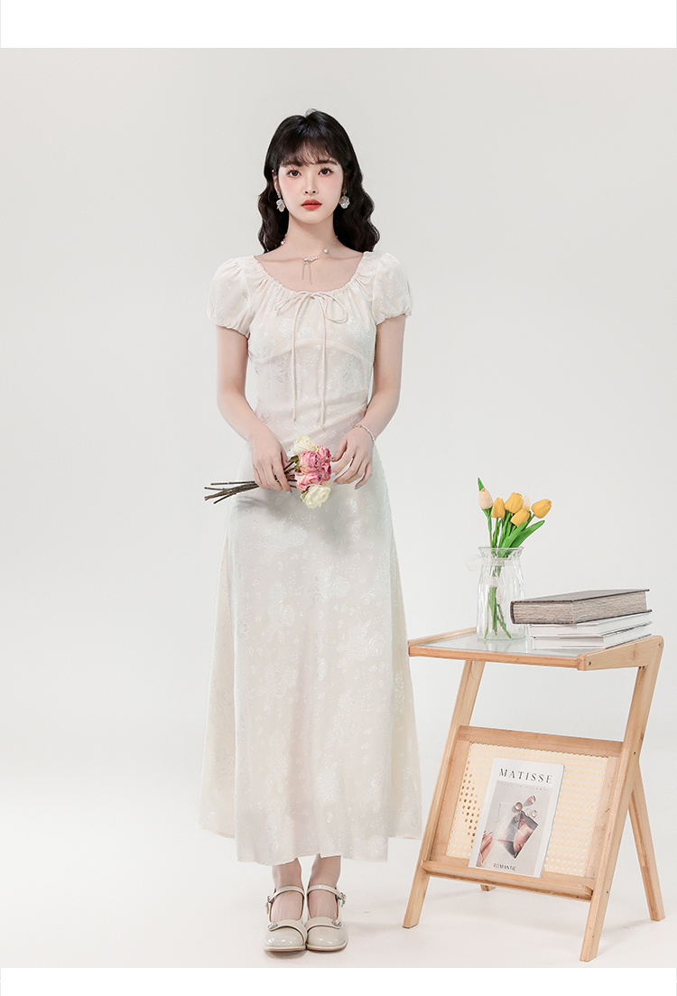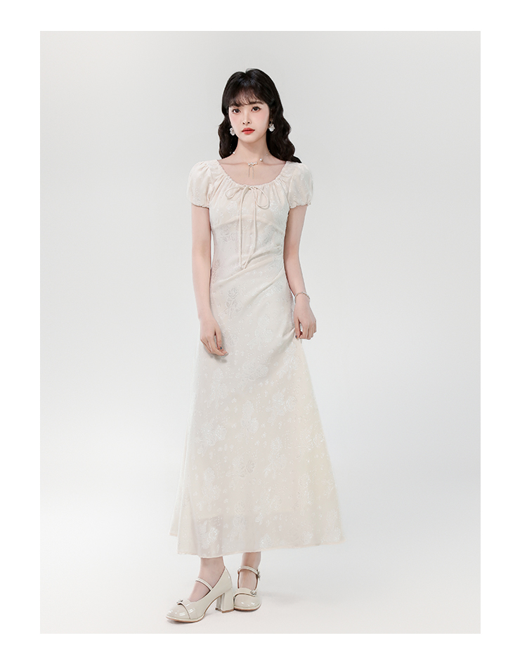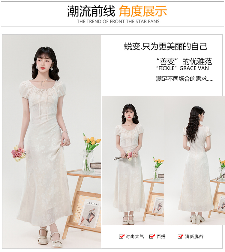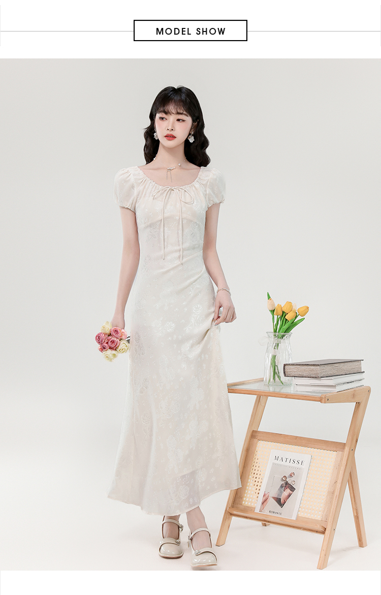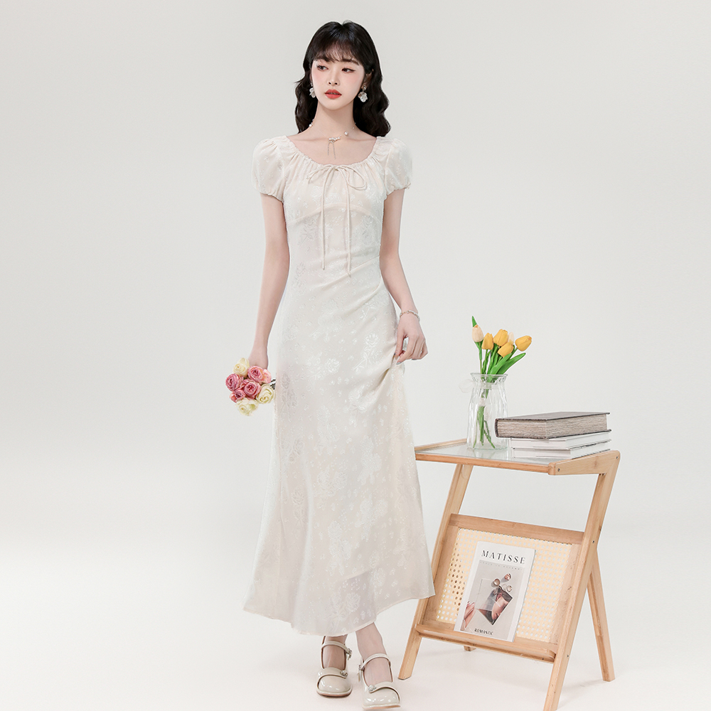 RY393# 实拍2026夏季新款法式温柔优雅提花抽绳气质收腰显瘦长款连衣裙