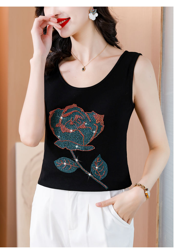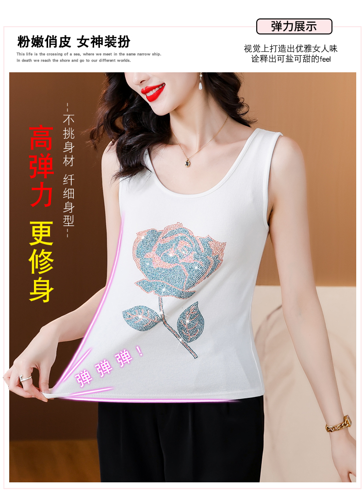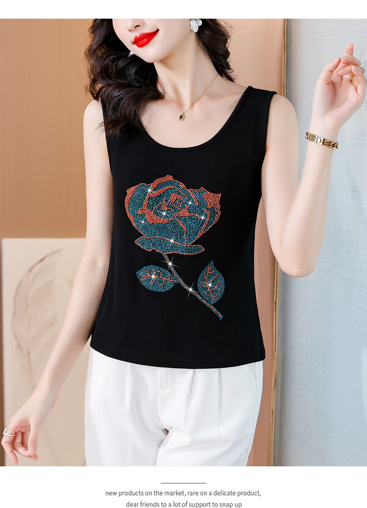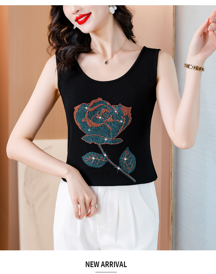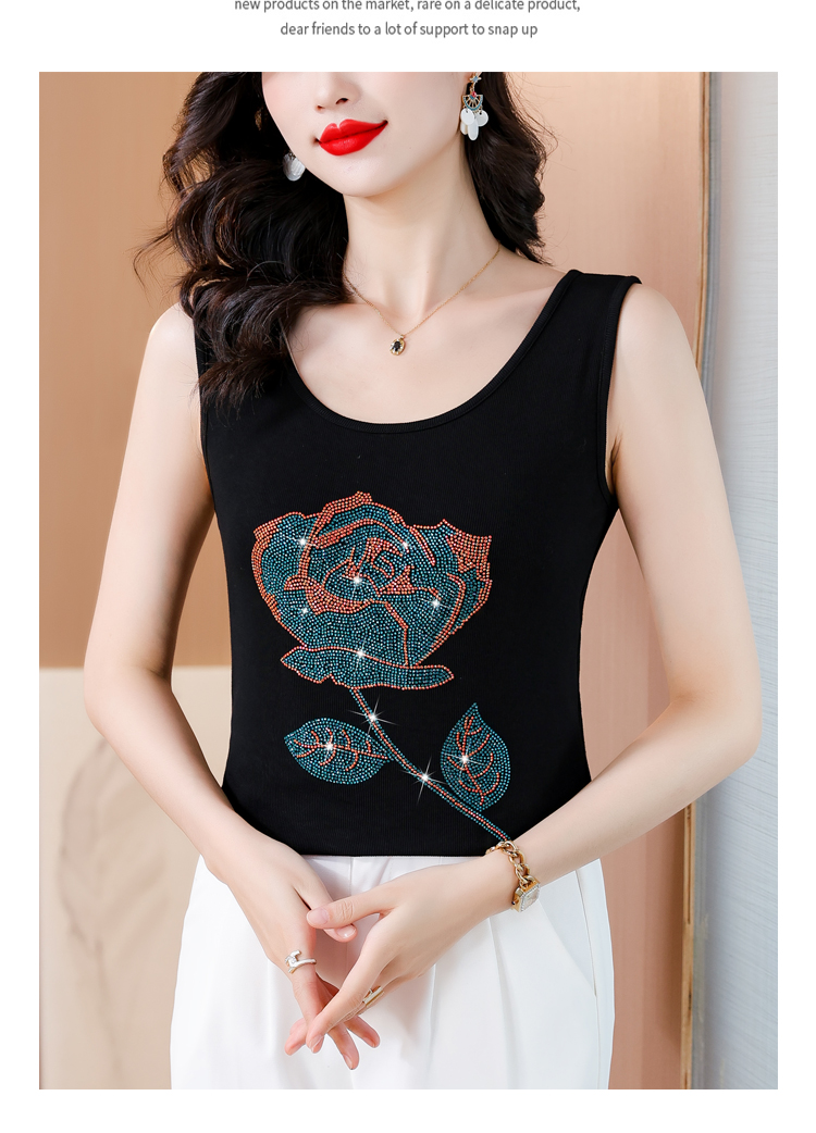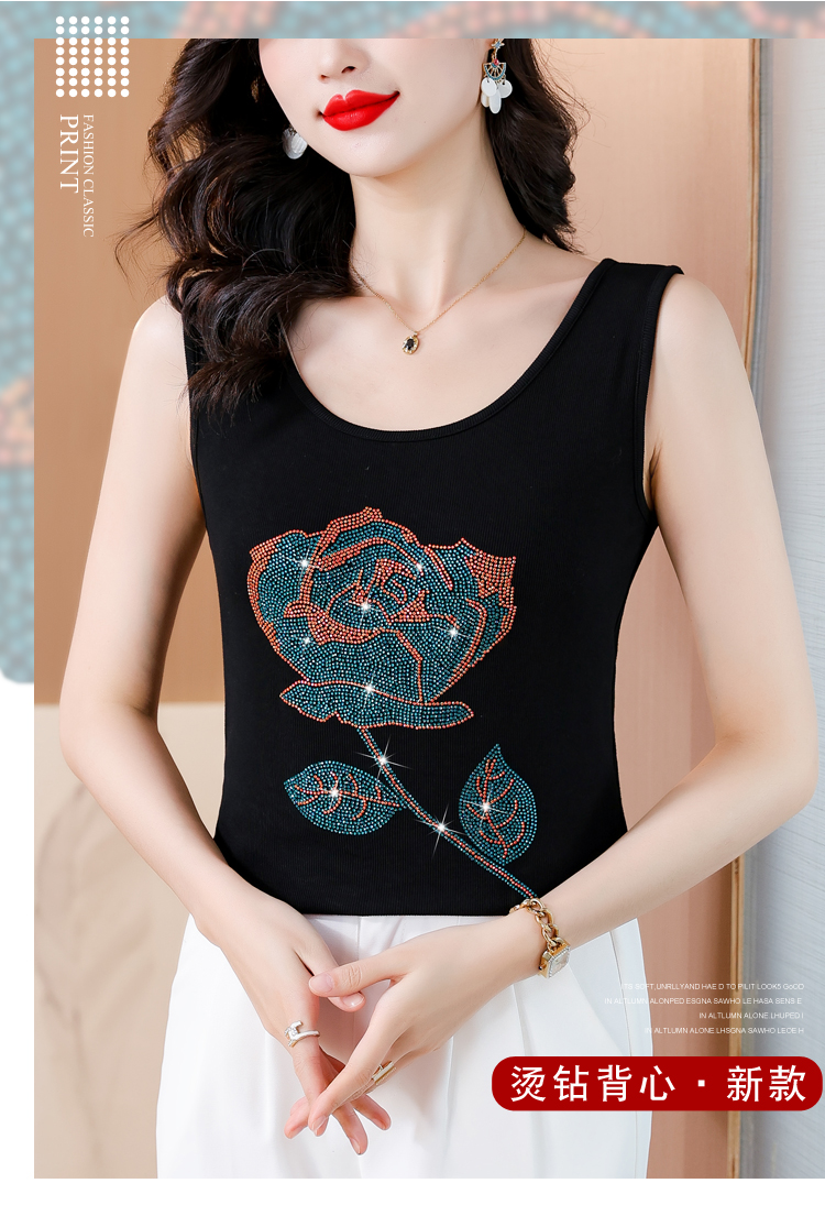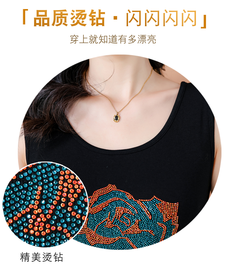 RY535# 实拍2026新款重工烫钻玫瑰花水钻洋气减龄时尚高弹棉吊带背心