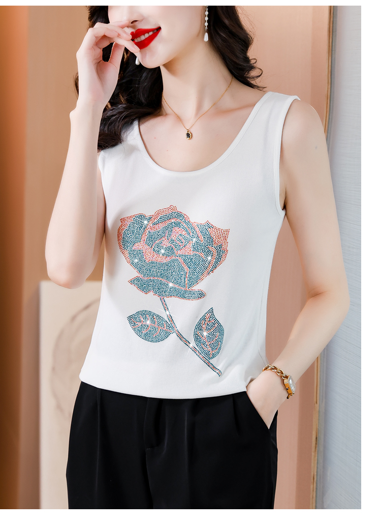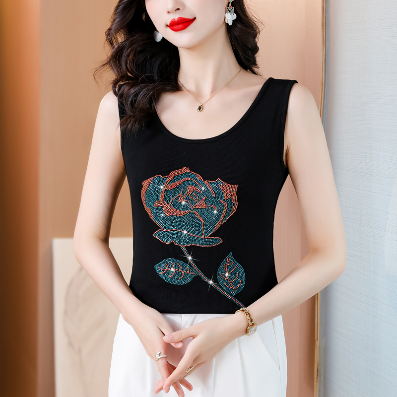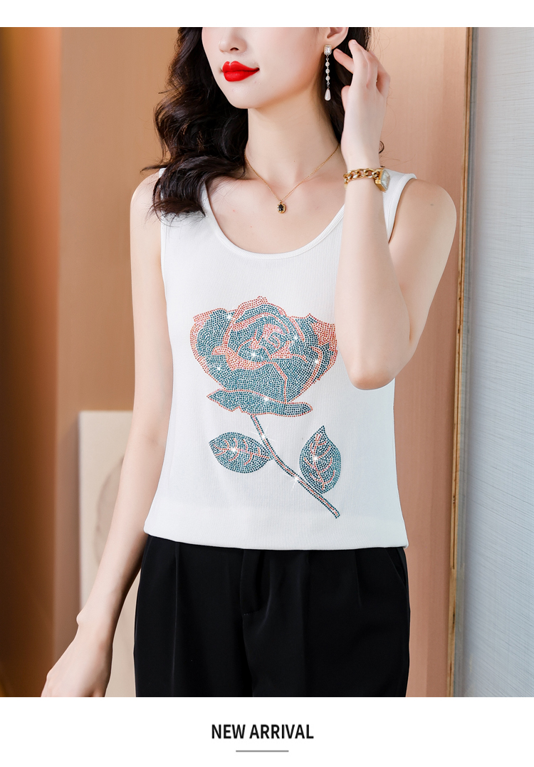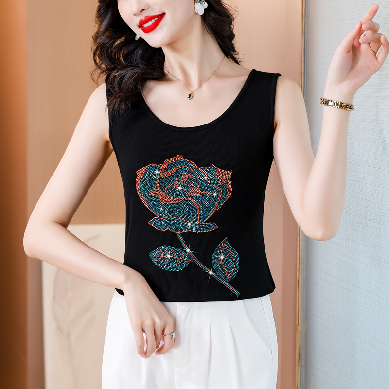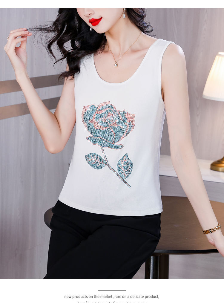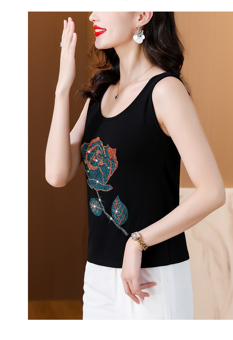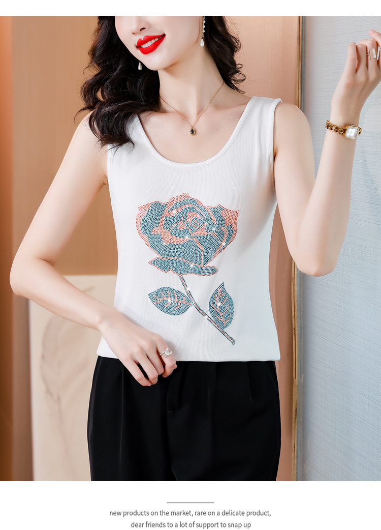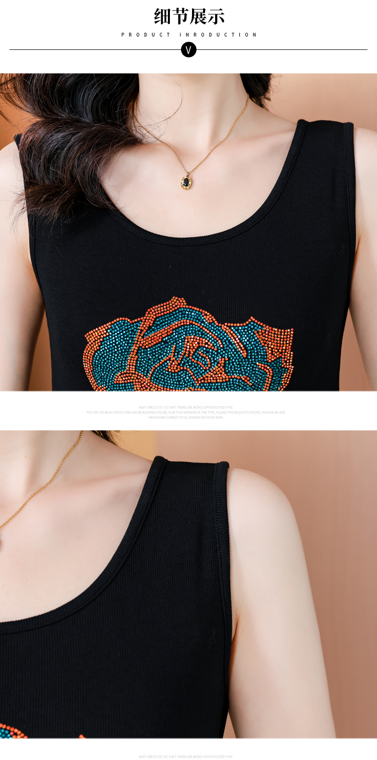 RY535# 实拍2026新款重工烫钻玫瑰花水钻洋气减龄时尚高弹棉吊带背心