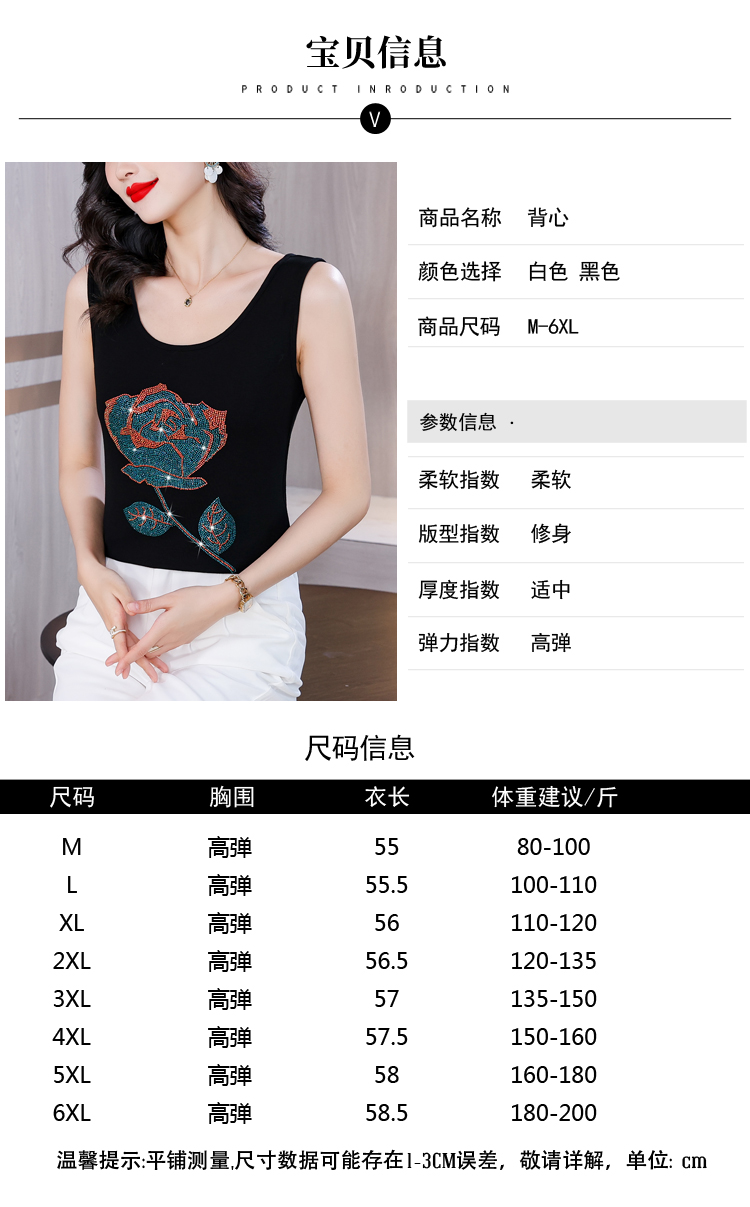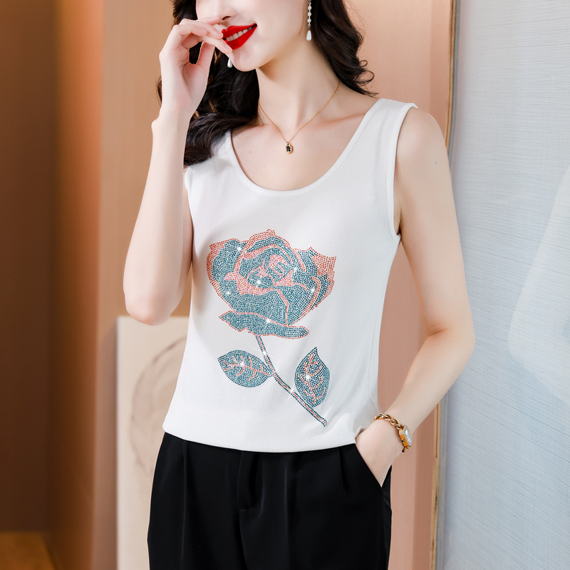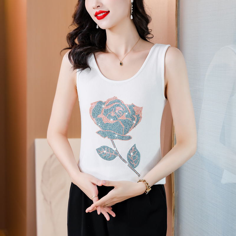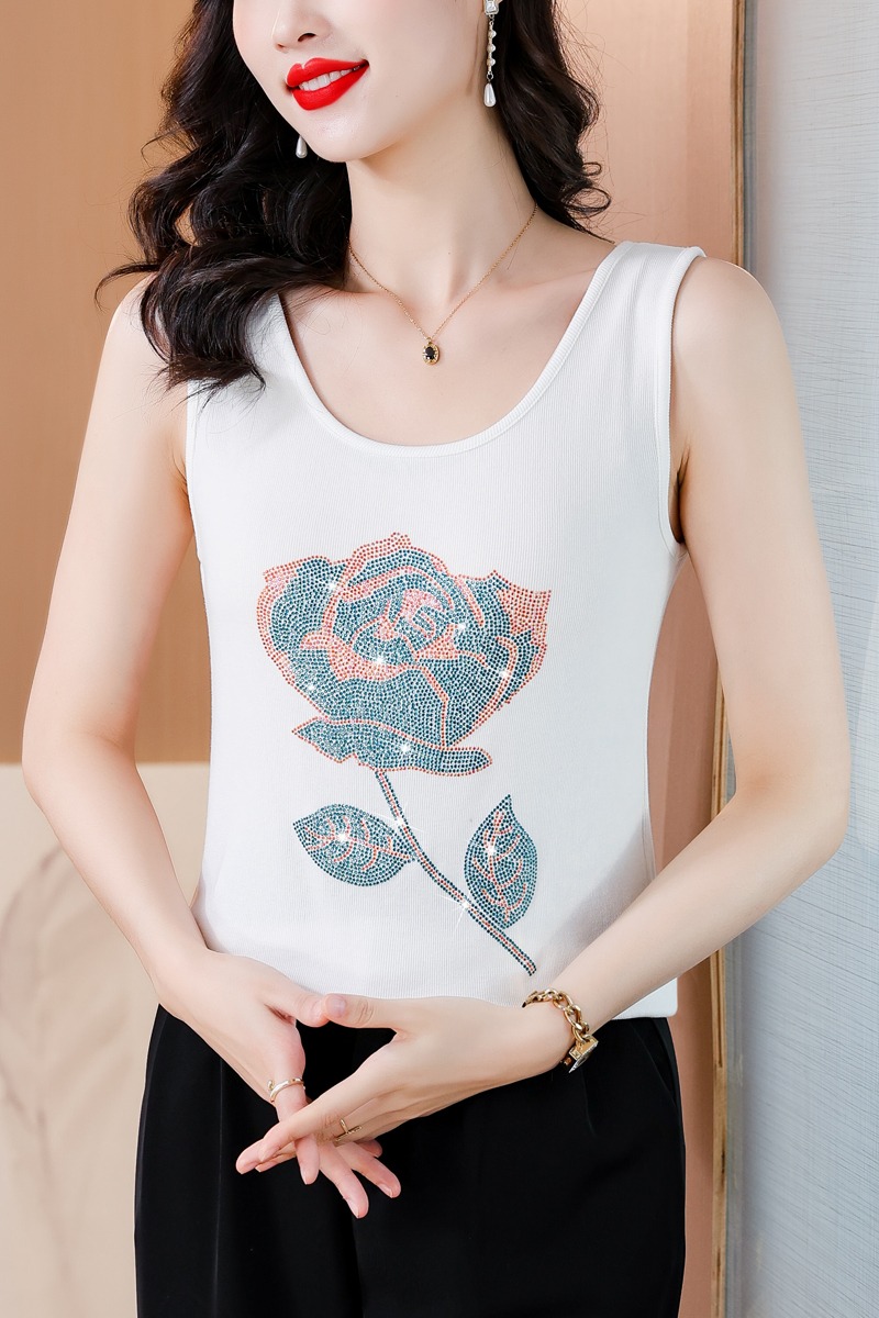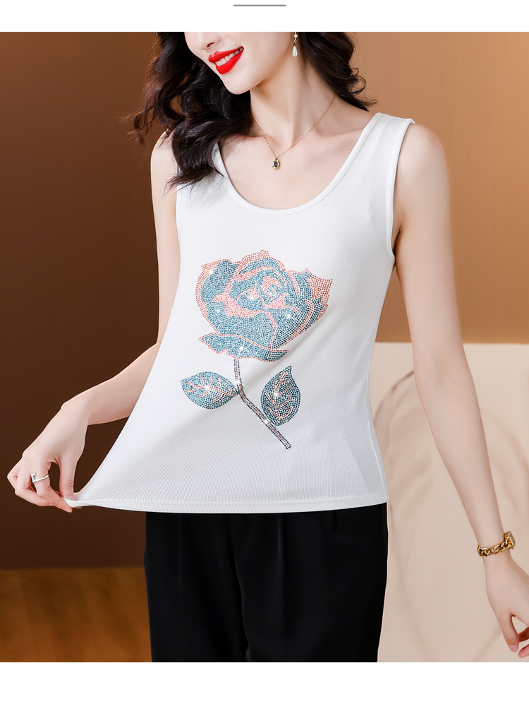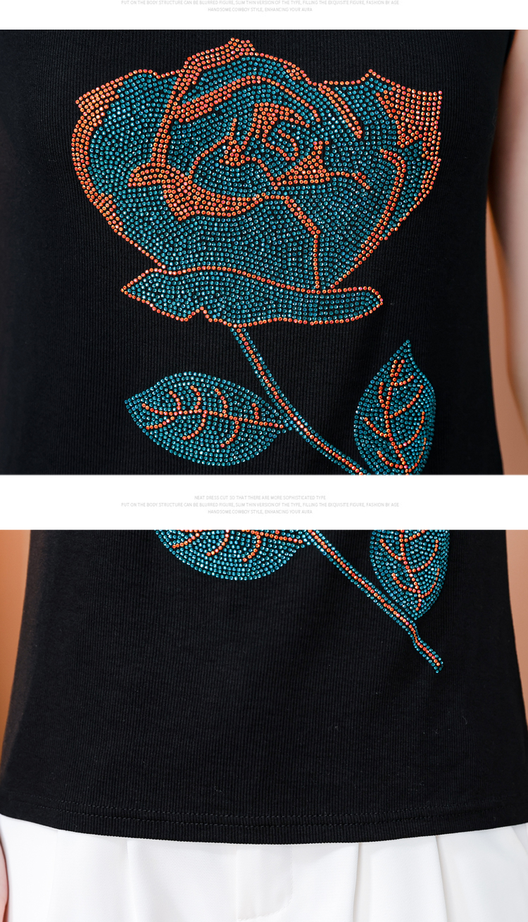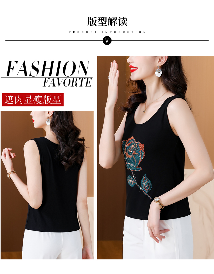 RY535# 实拍2026新款重工烫钻玫瑰花水钻洋气减龄时尚高弹棉吊带背心
