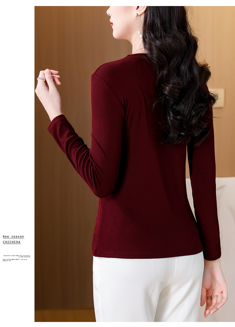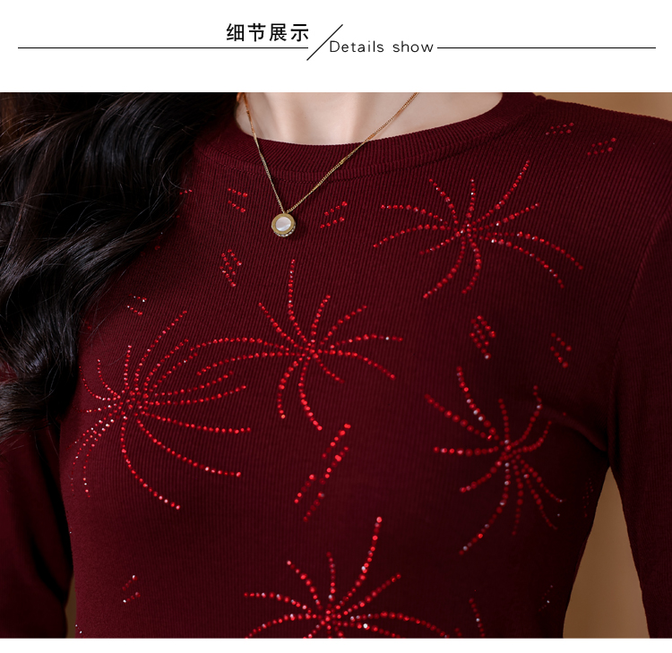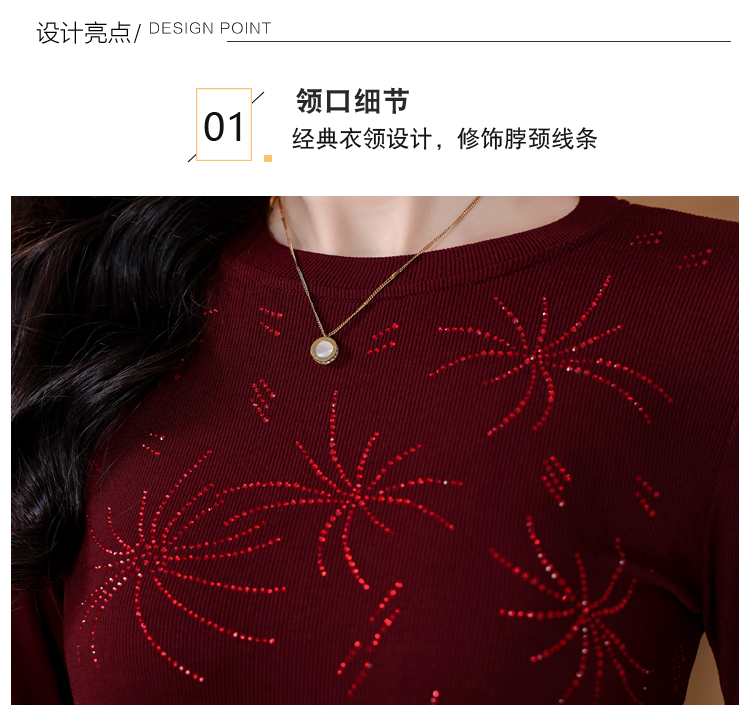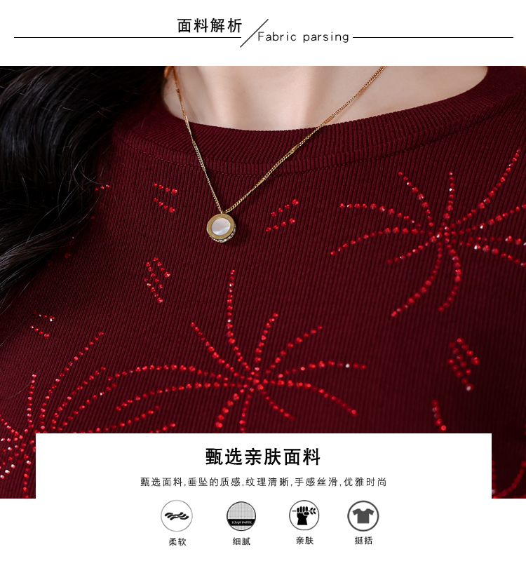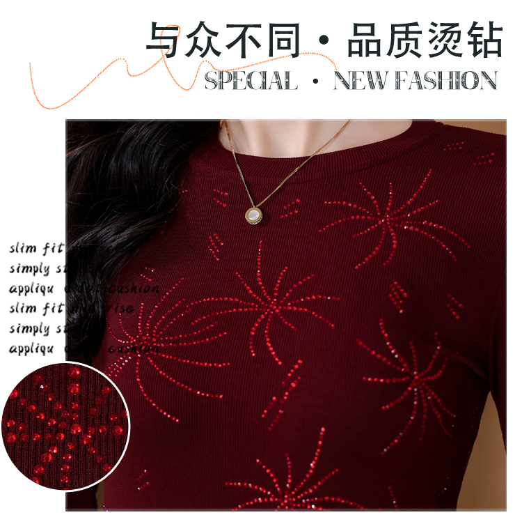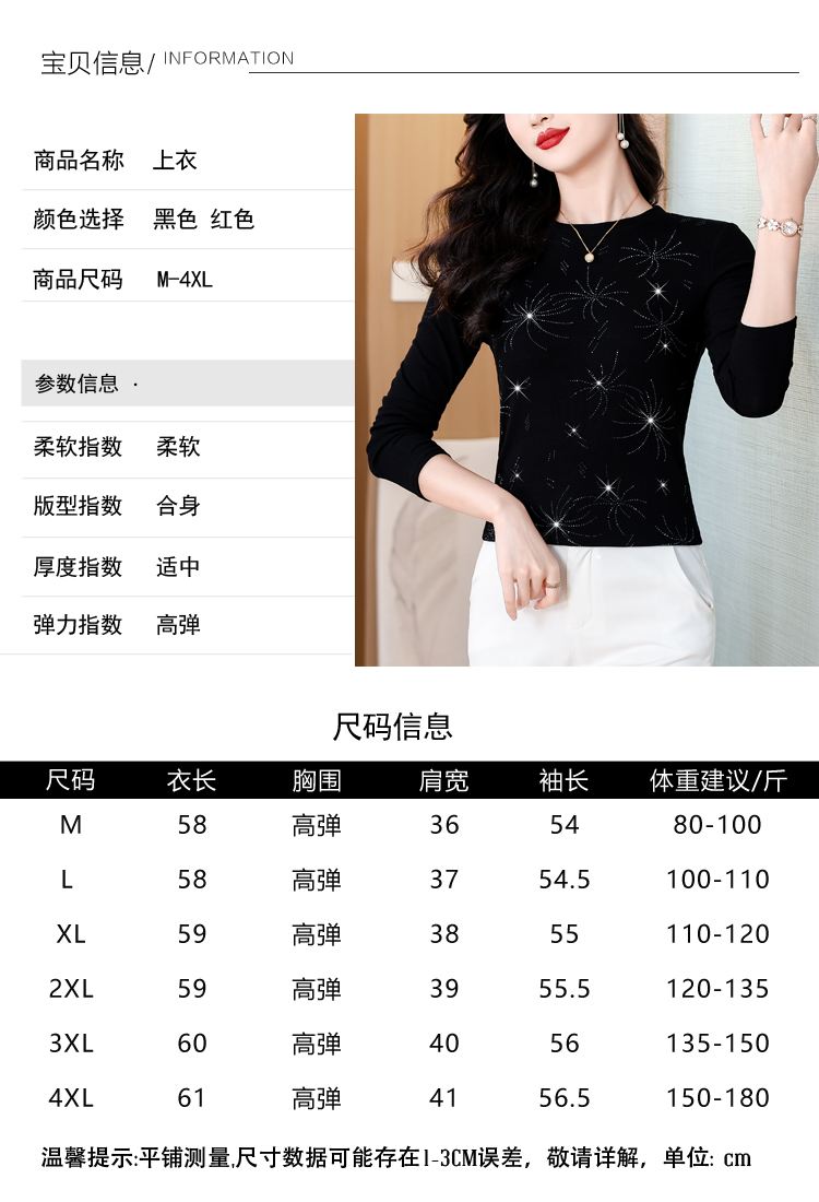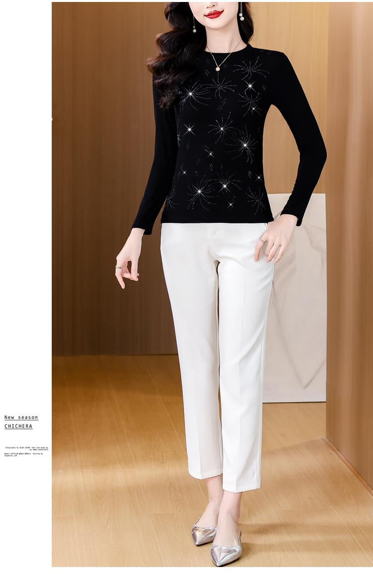 RY538# 实拍2026春季新款高级感烫彩钻烟花图案圆领长袖棉t恤洋气上衣女
