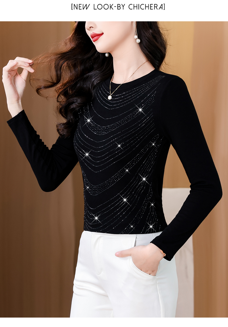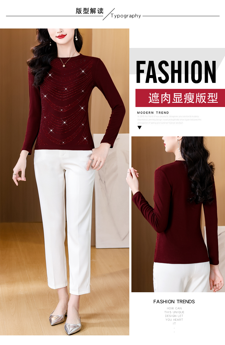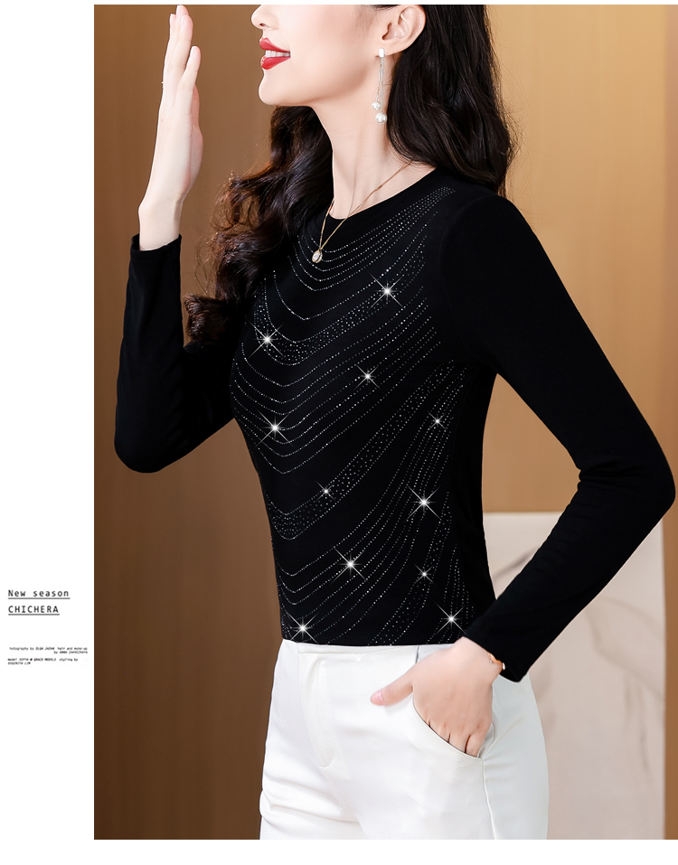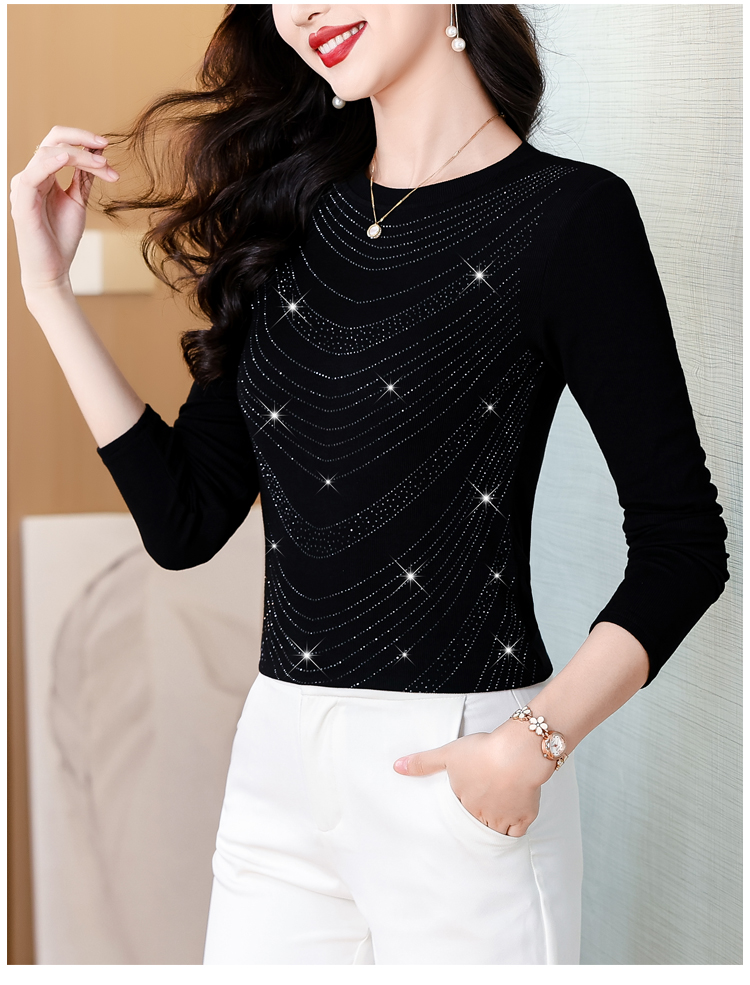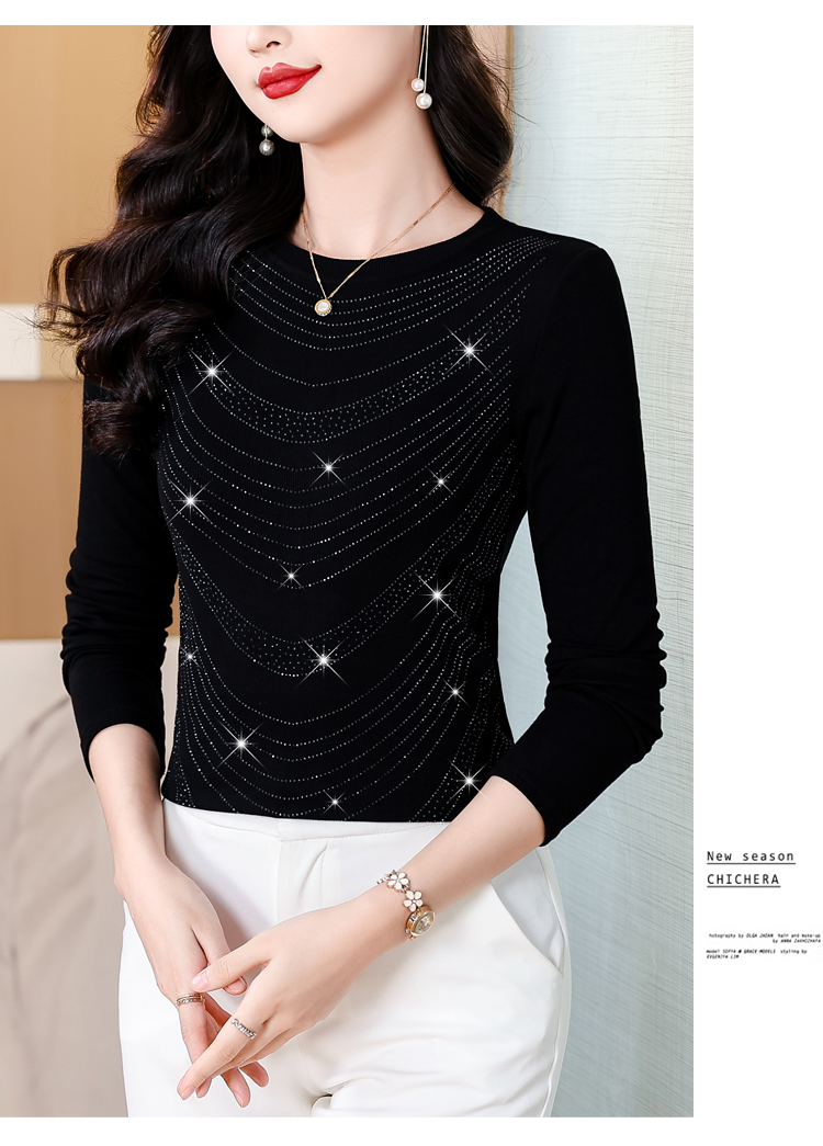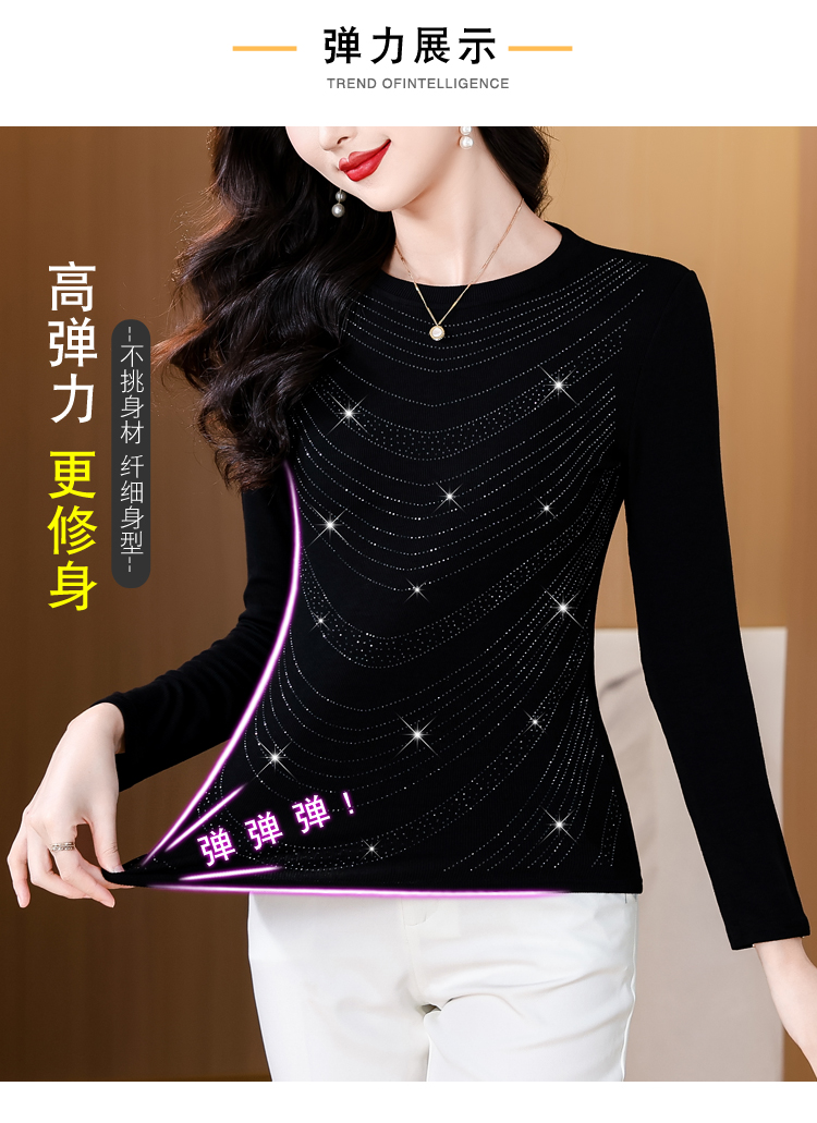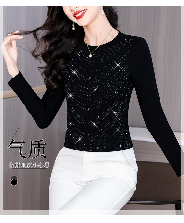 RY539# 实拍2026春季新款大码女装高档重工烫钻圆领长袖棉t恤洋气上衣女