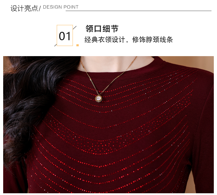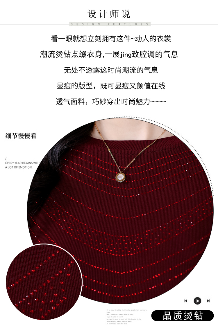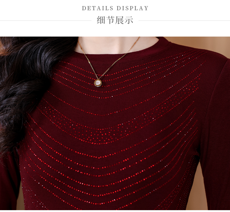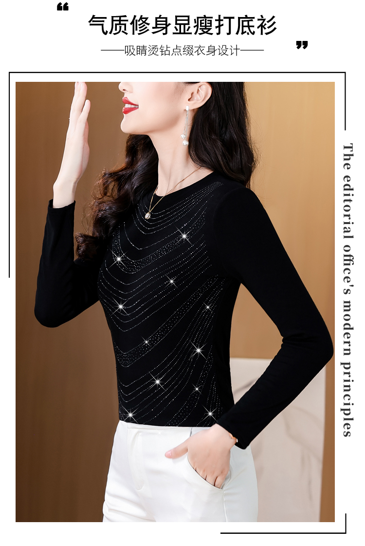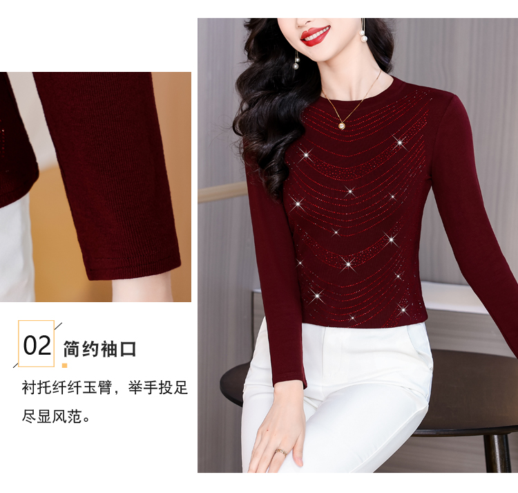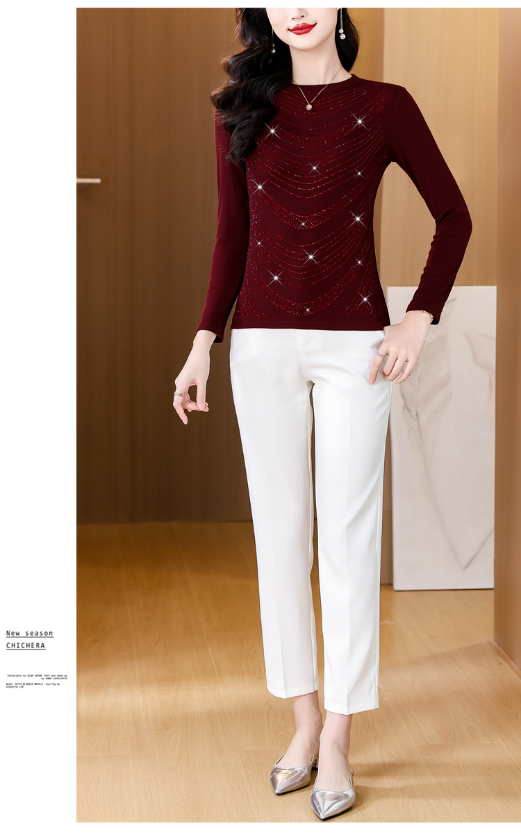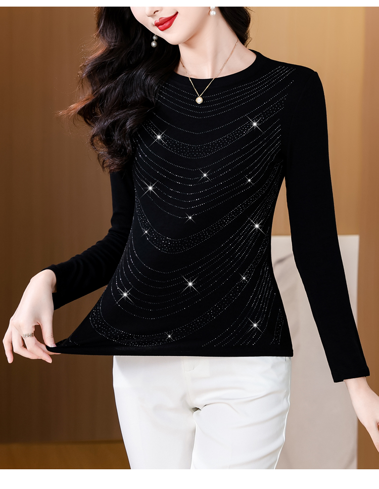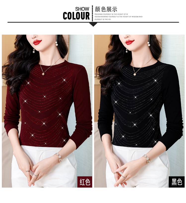RY539# 实拍2026春季新款大码女装高档重工烫钻圆领长袖棉t恤洋气上衣女