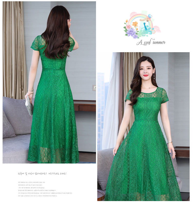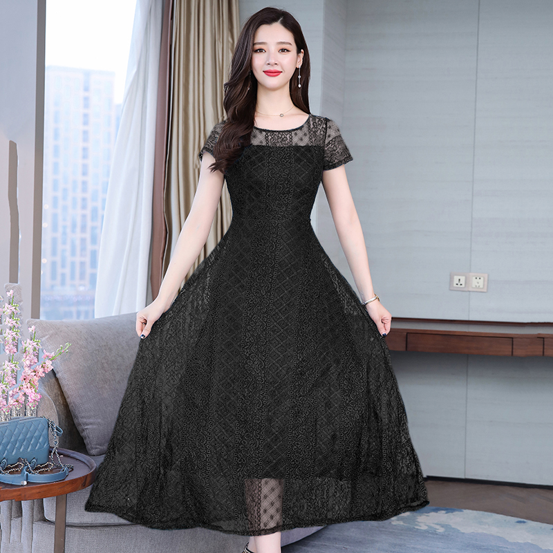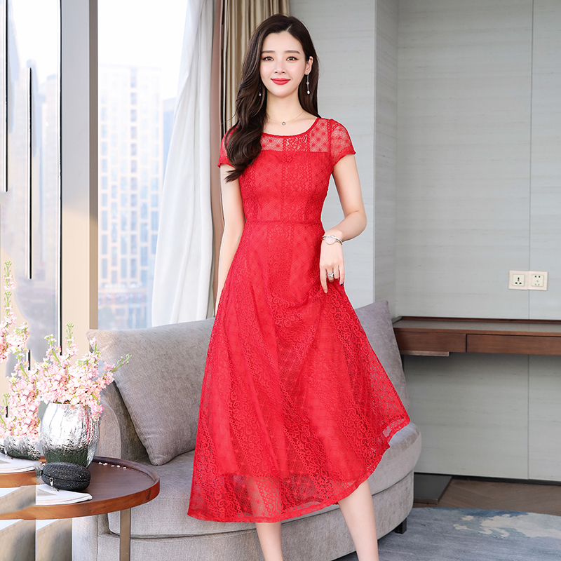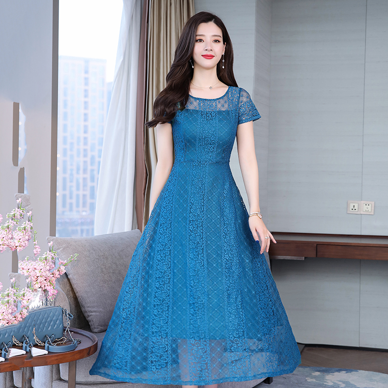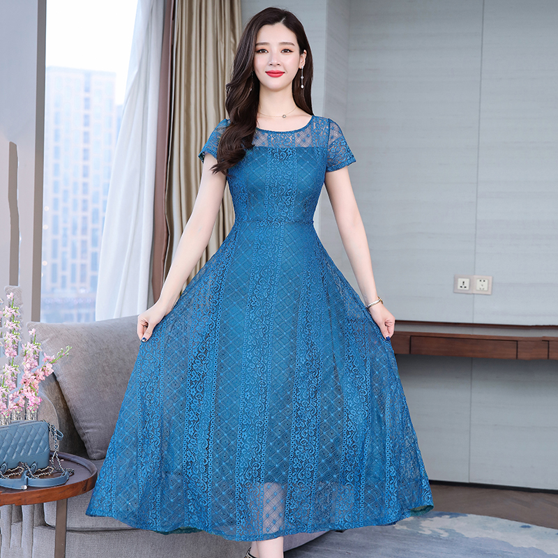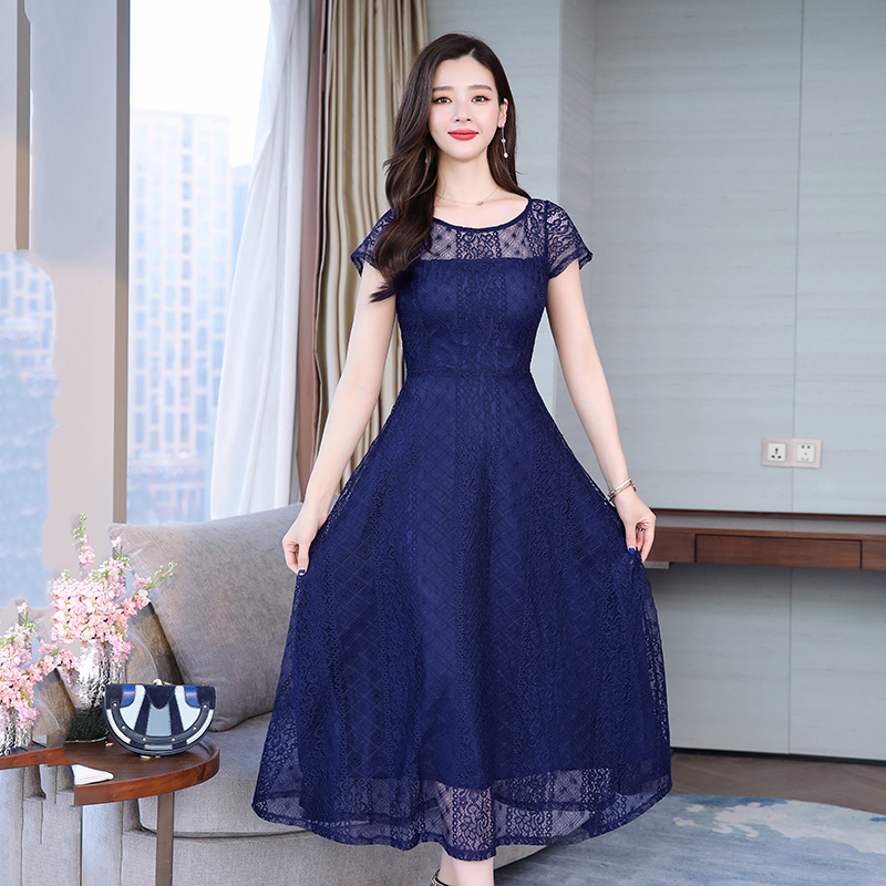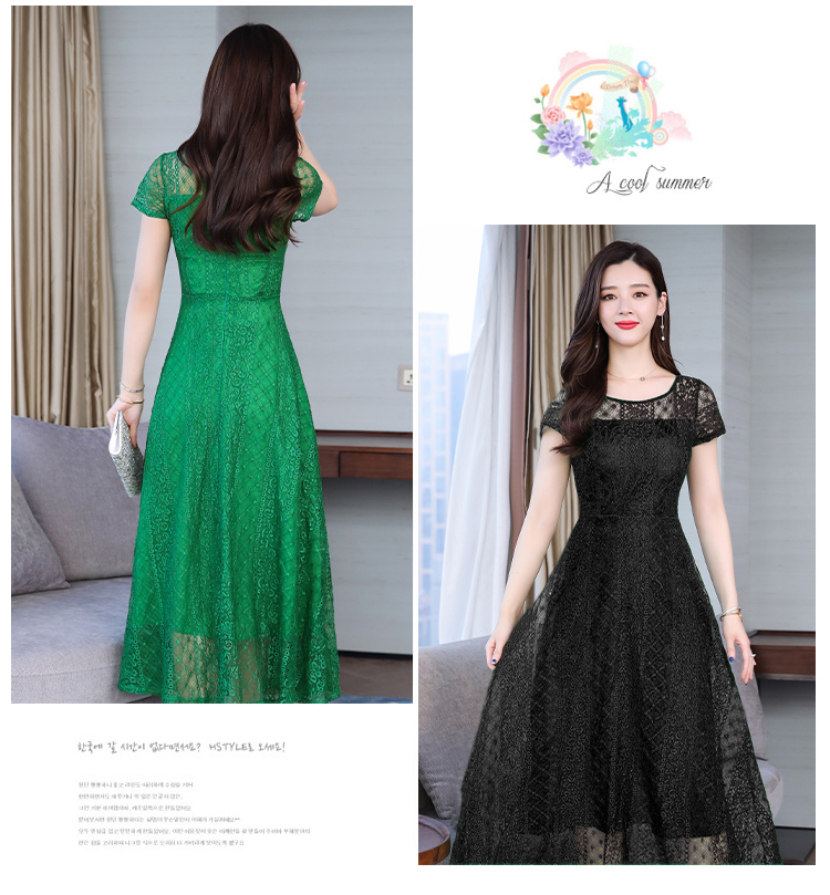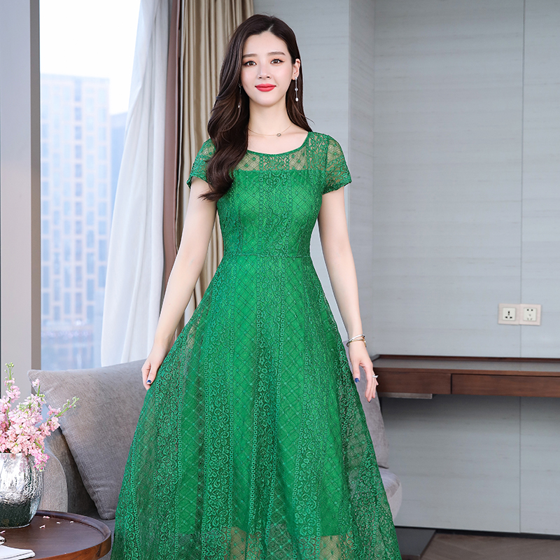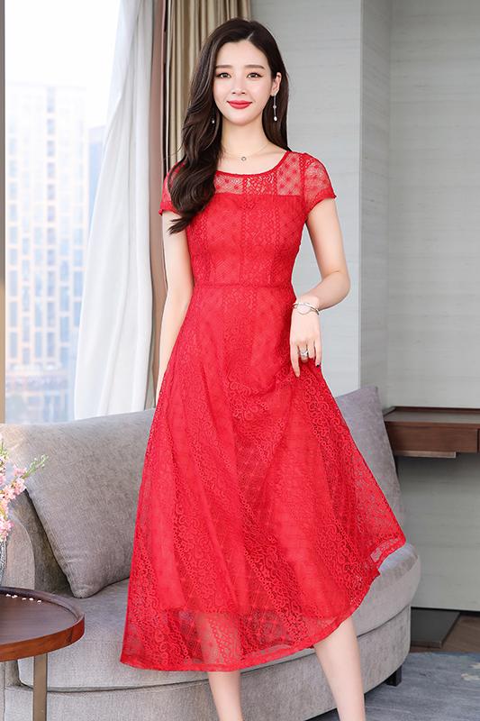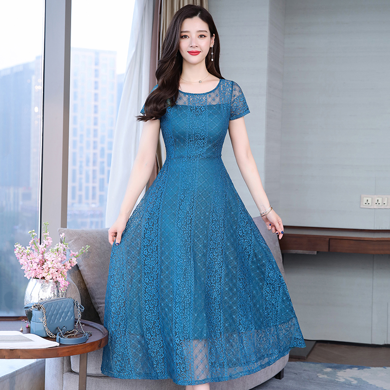 RY591# 2022蕾丝连衣裙女夏天高端气质减龄裙子妈妈遮肚子显瘦大码女装裙