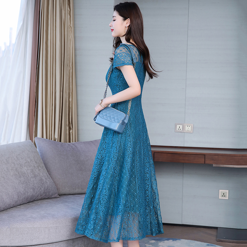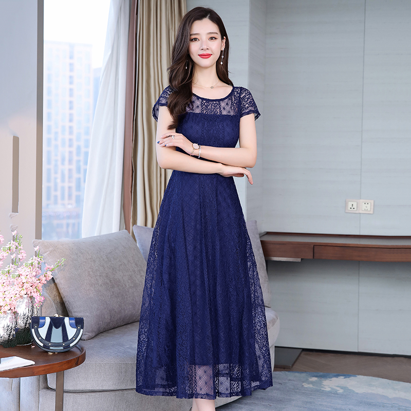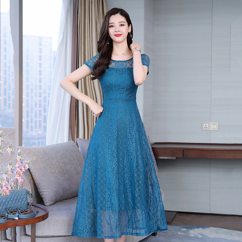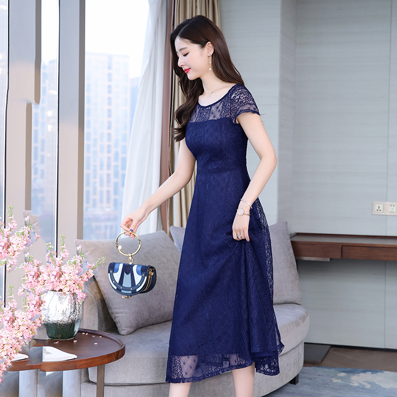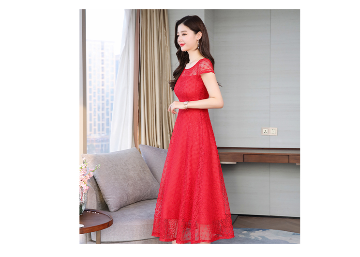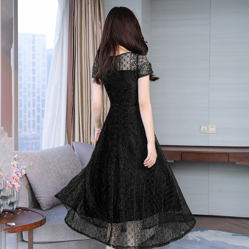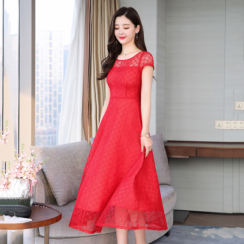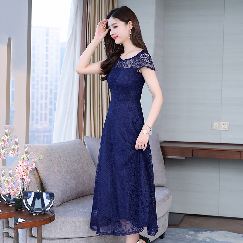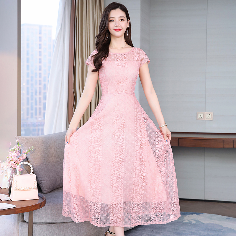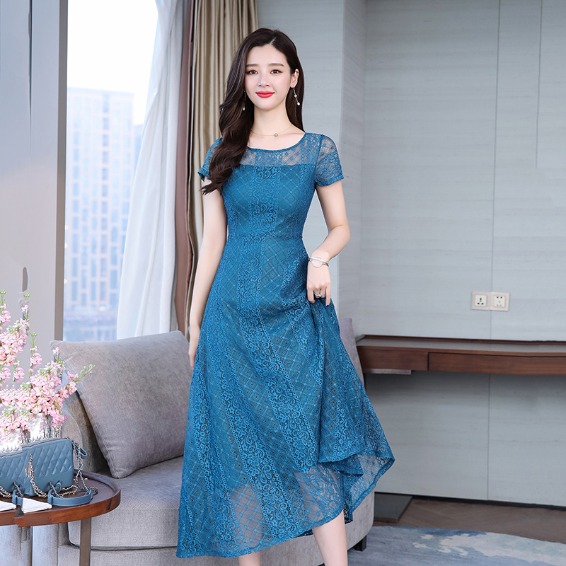 RY591# 2022蕾丝连衣裙女夏天高端气质减龄裙子妈妈遮肚子显瘦大码女装裙