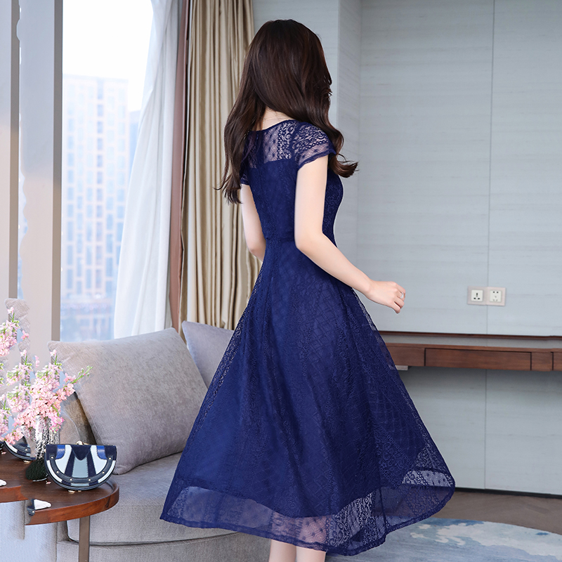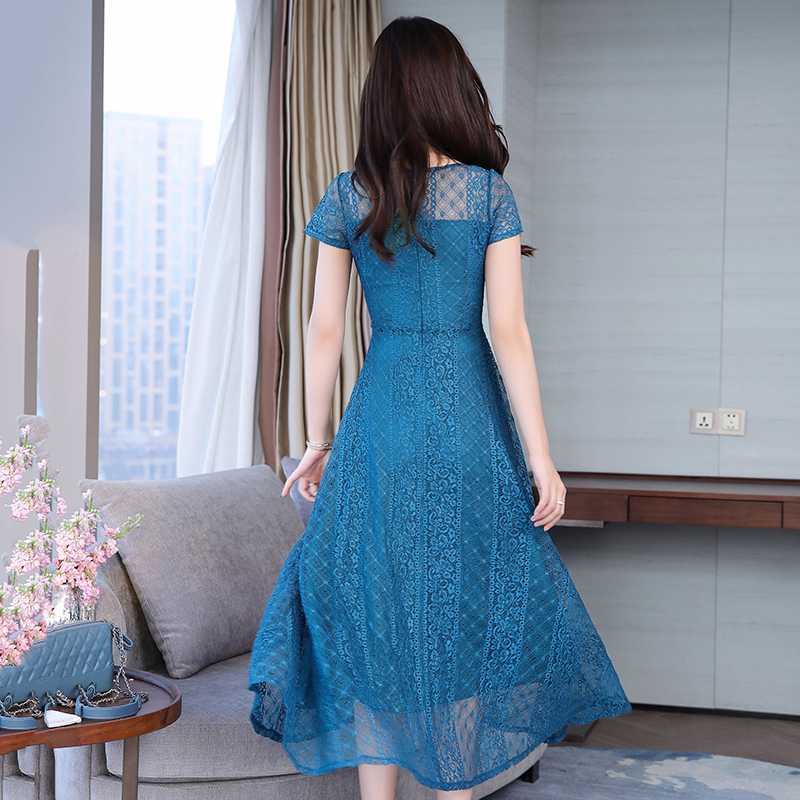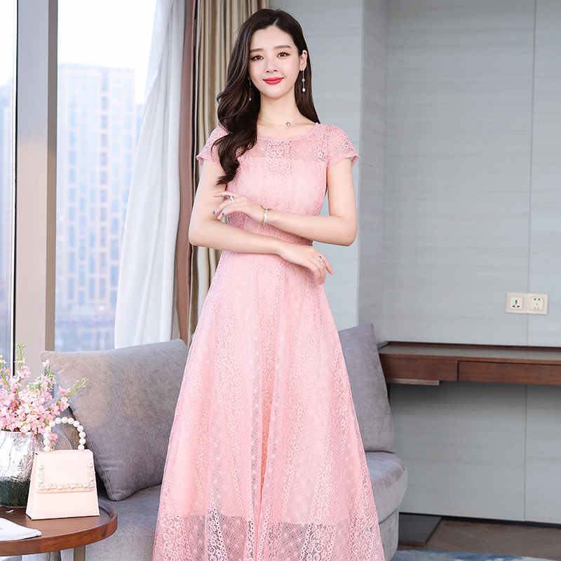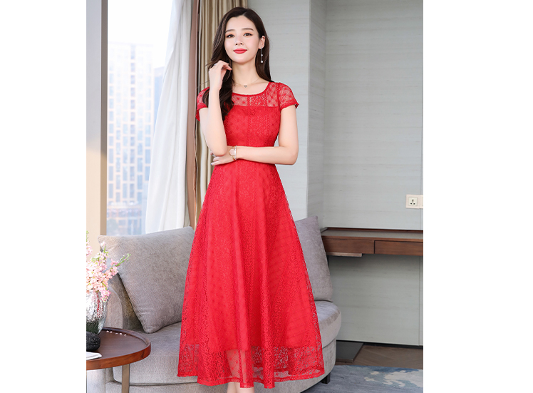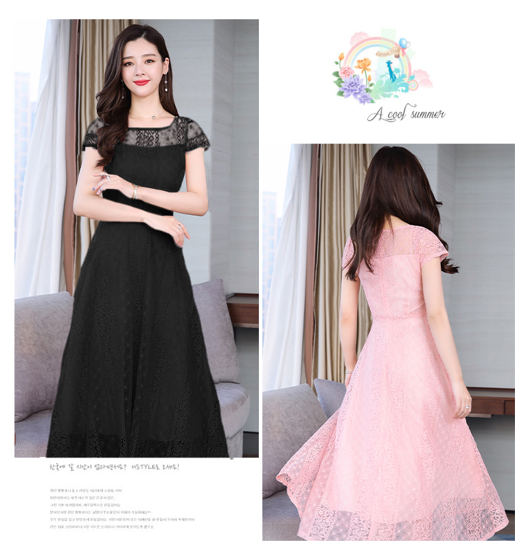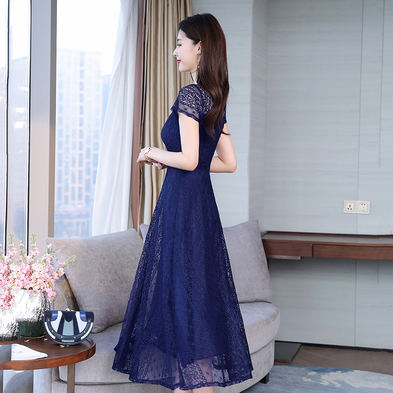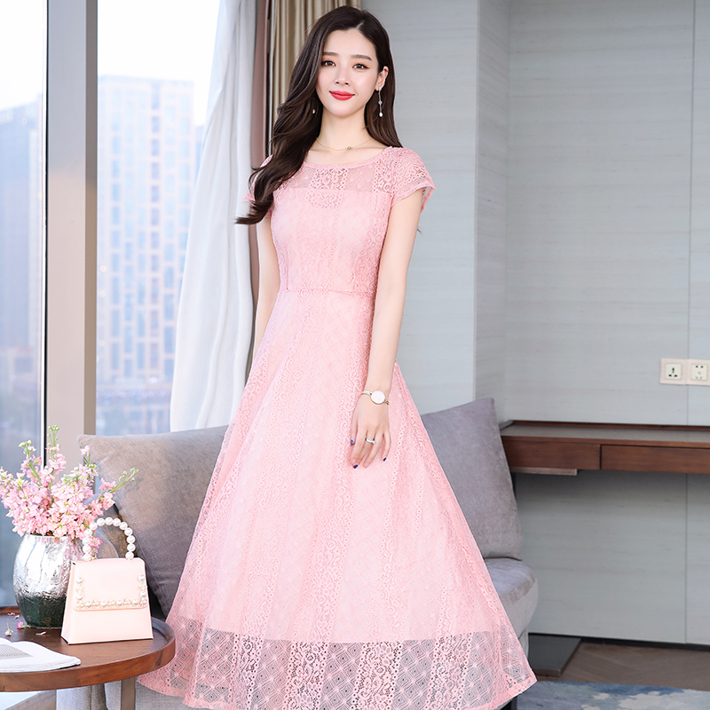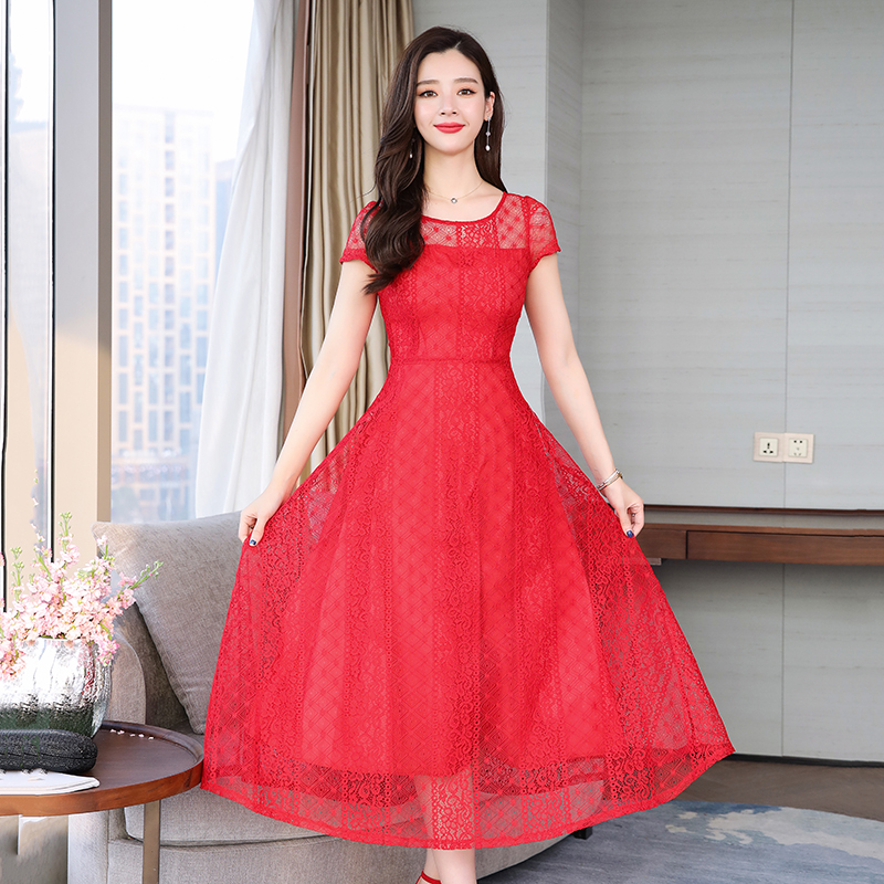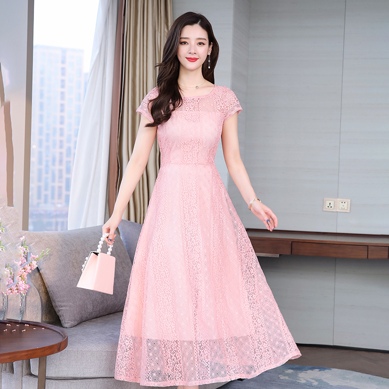 RY591# 2022蕾丝连衣裙女夏天高端气质减龄裙子妈妈遮肚子显瘦大码女装裙