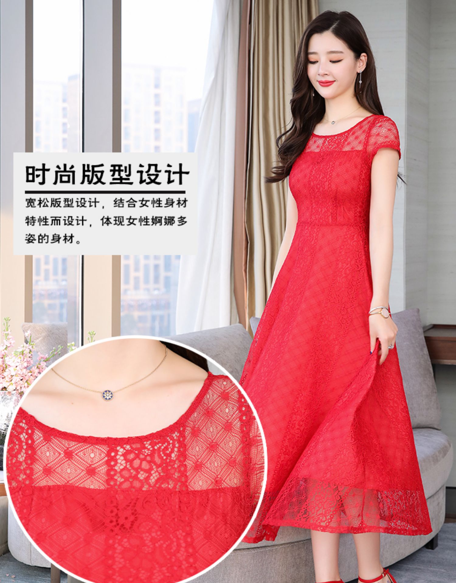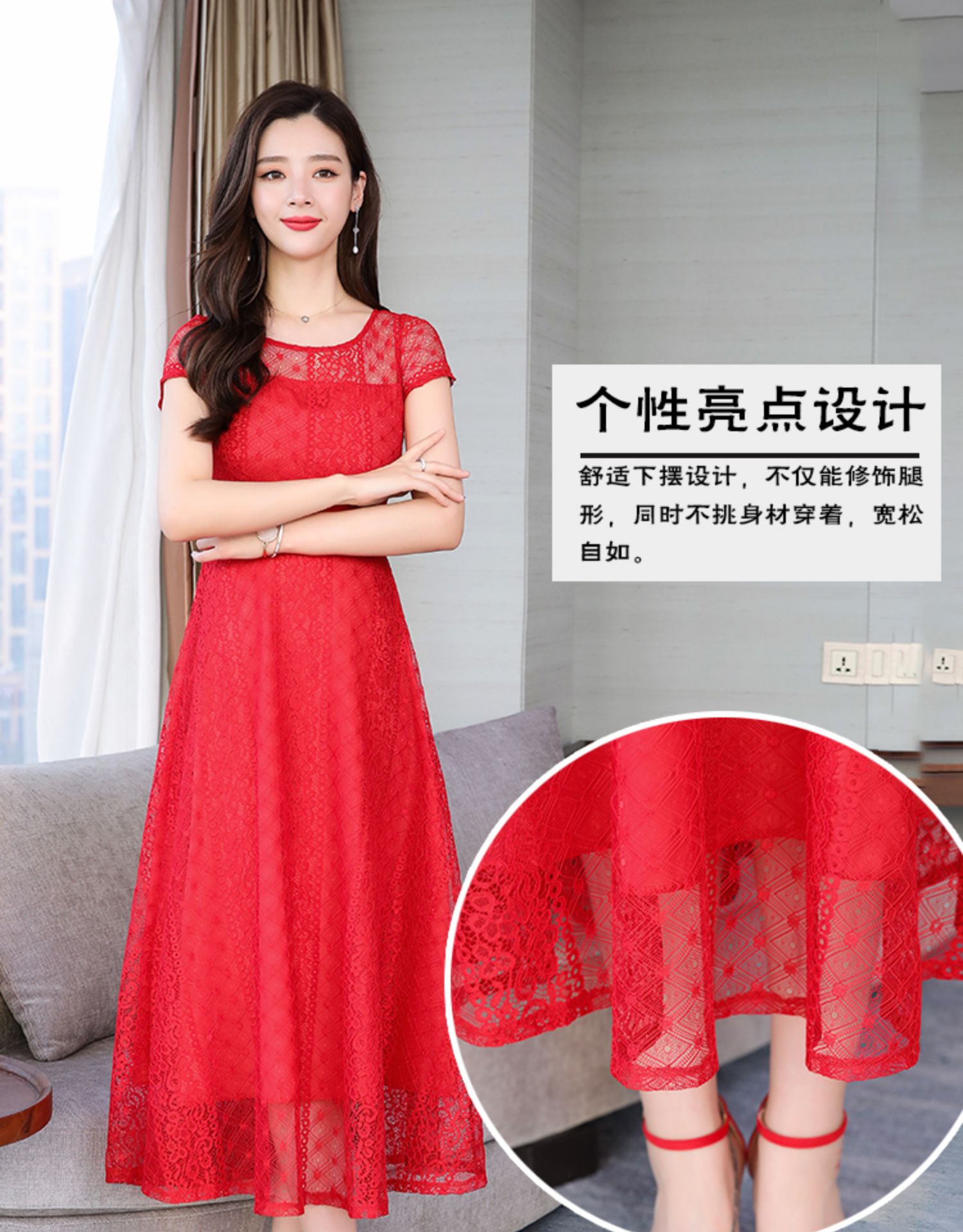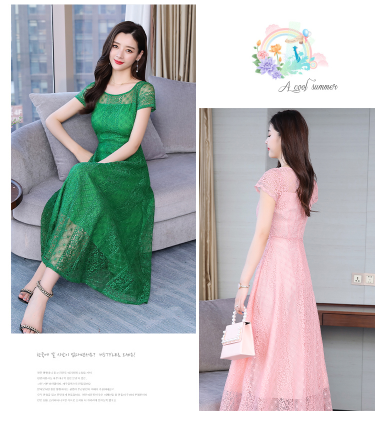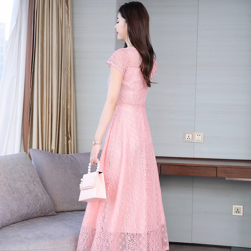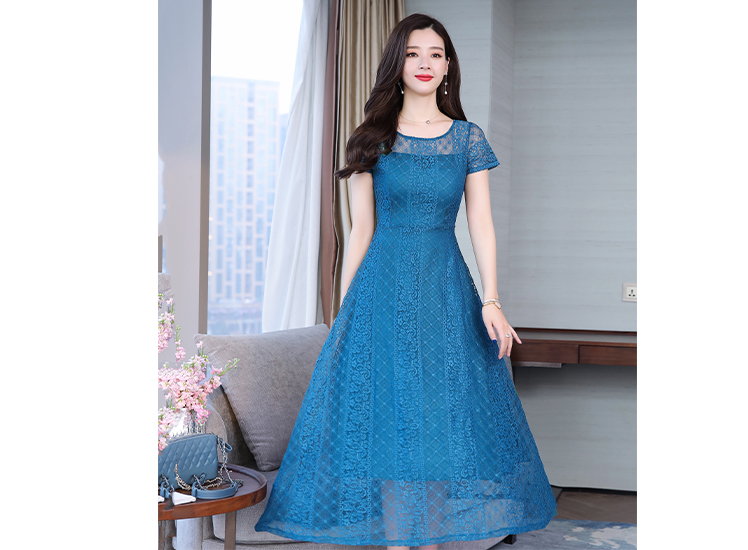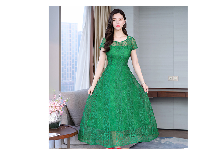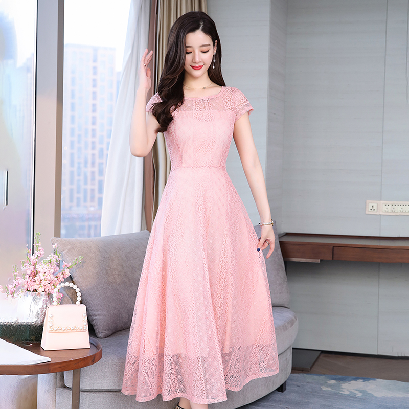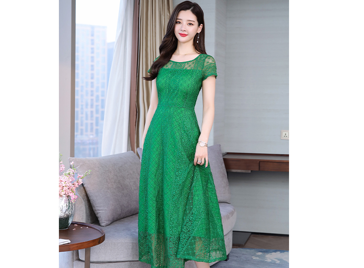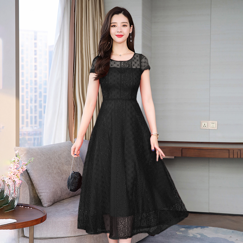 RY591# 2022蕾丝连衣裙女夏天高端气质减龄裙子妈妈遮肚子显瘦大码女装裙