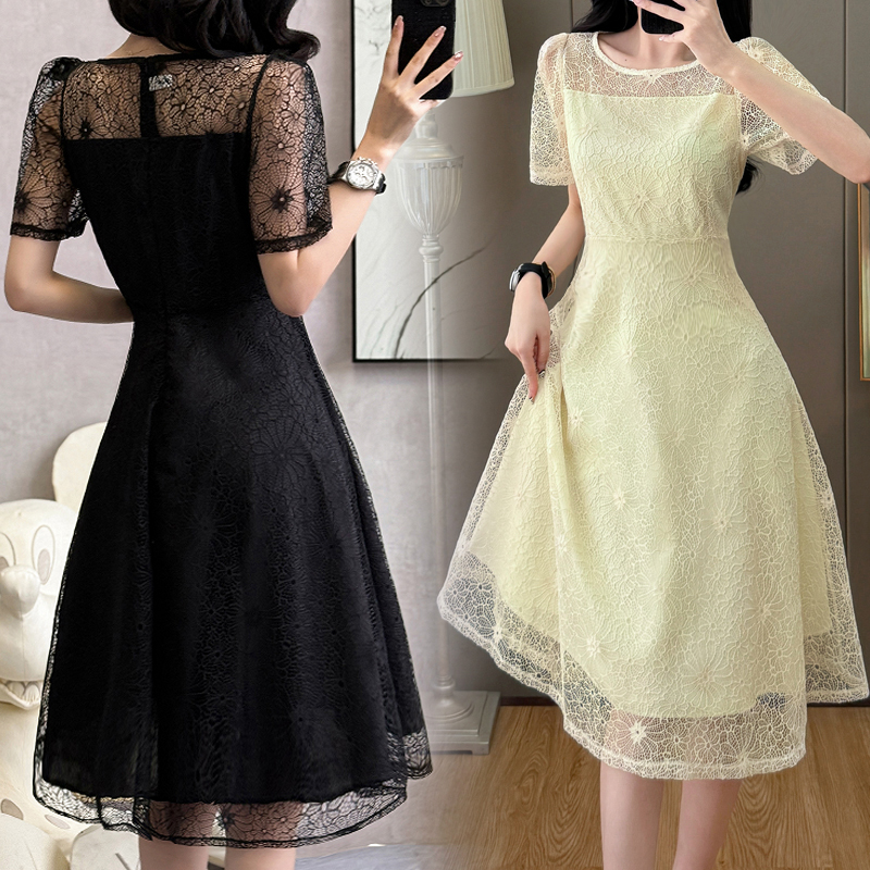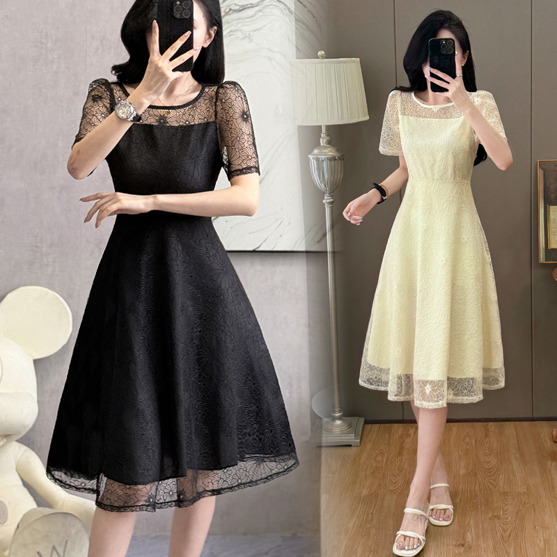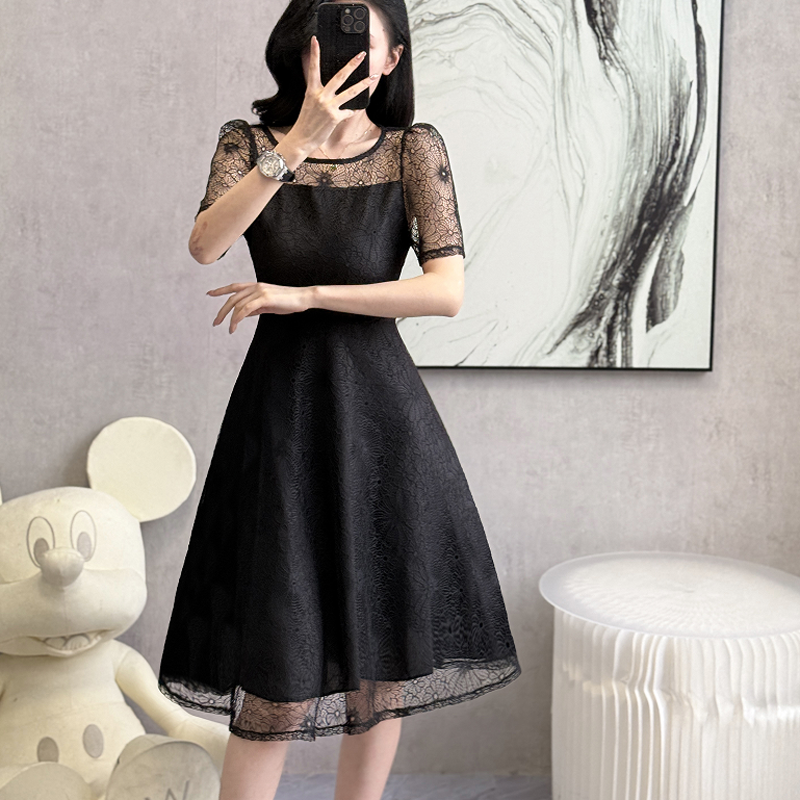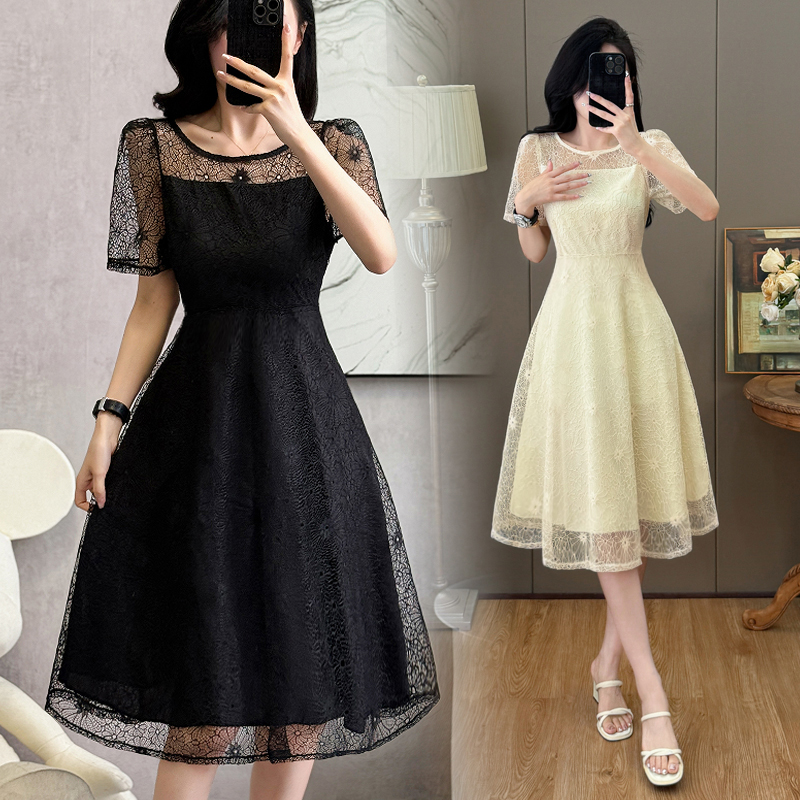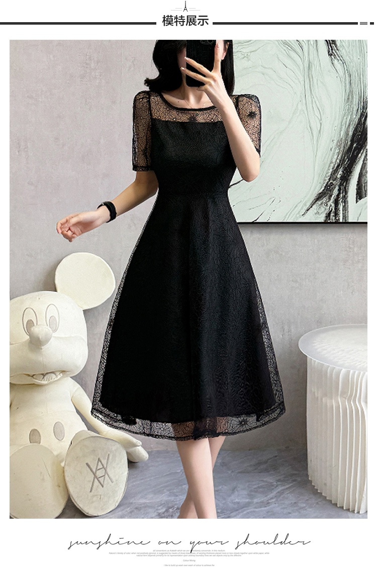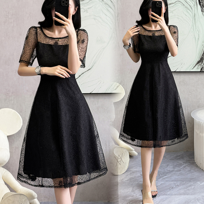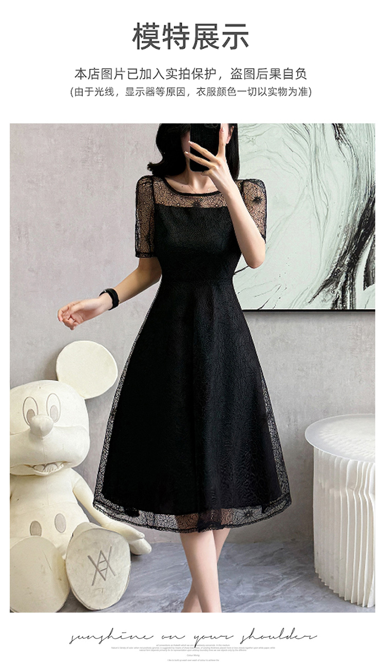 RY598# 新款微胖mm气质名媛高级拼接网纱丝绒连衣裙大码女装春季显瘦裙子