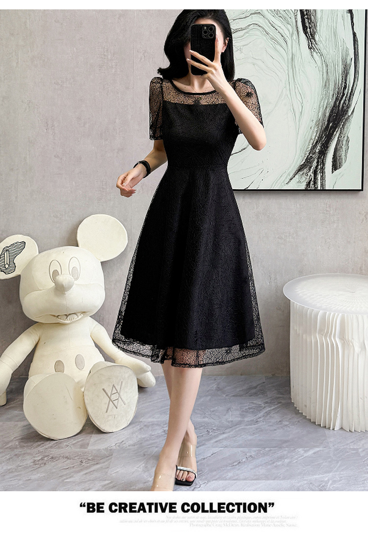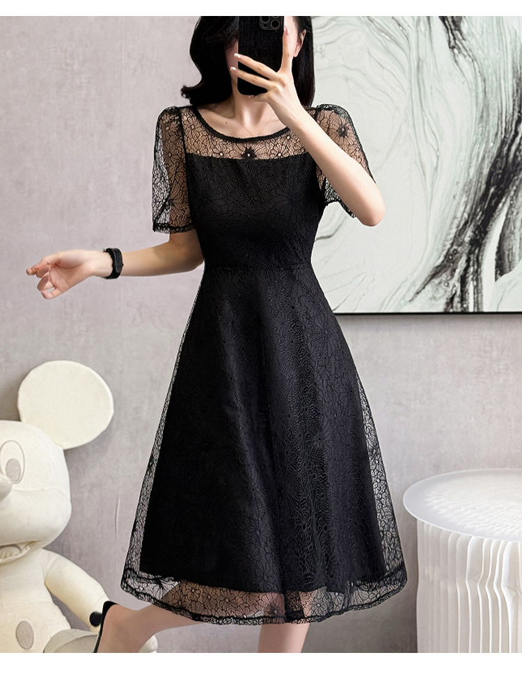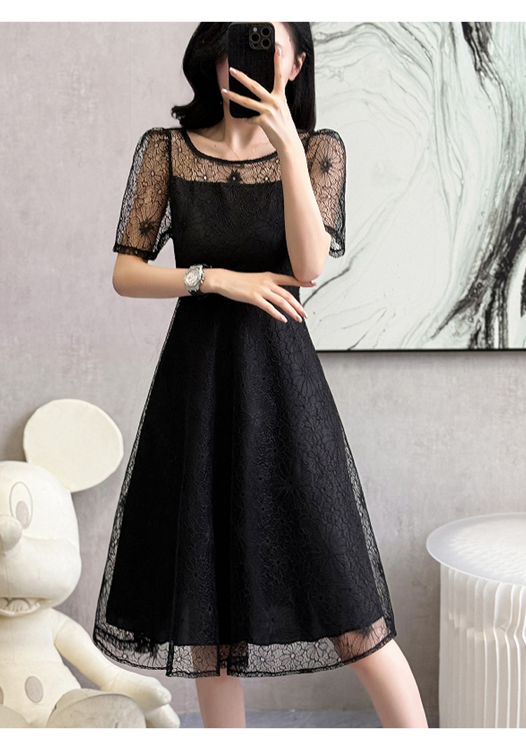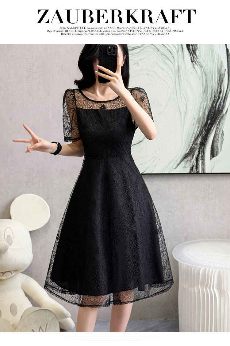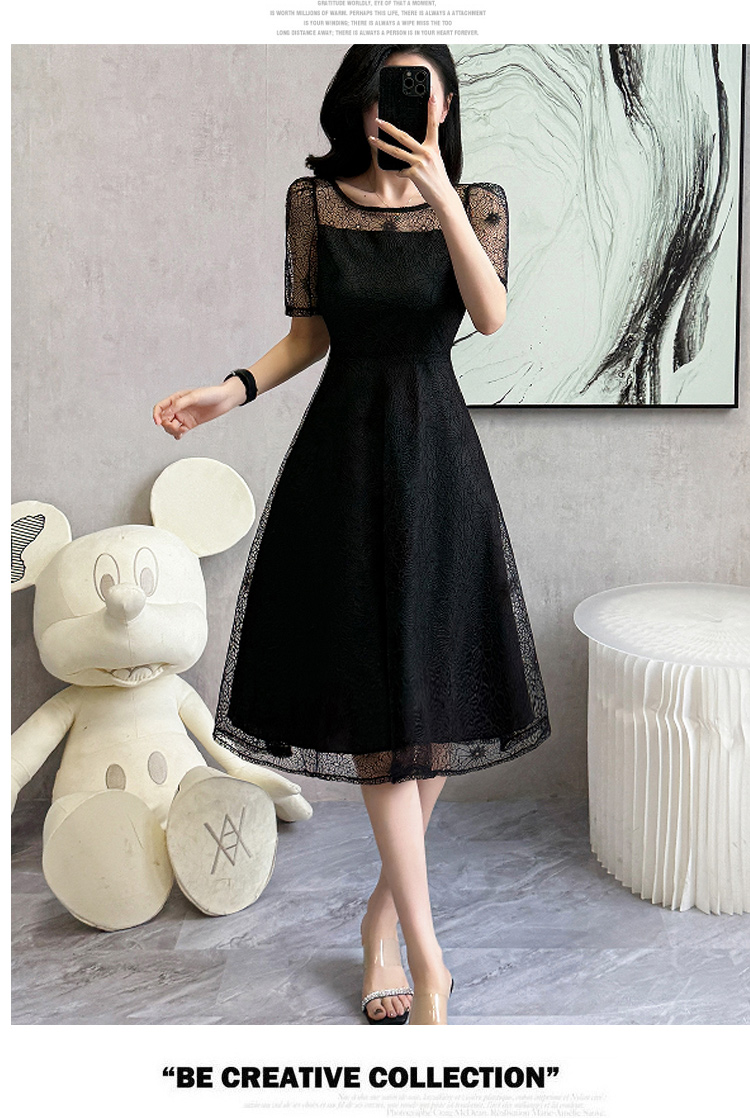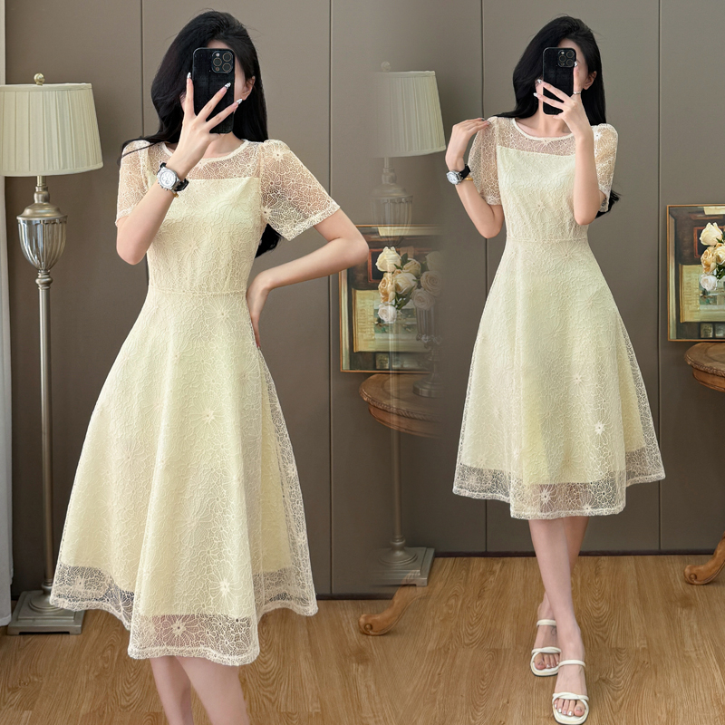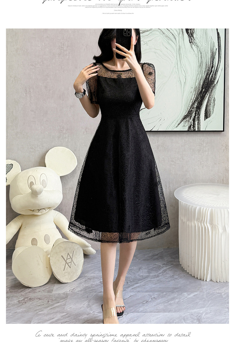 RY598# 新款微胖mm气质名媛高级拼接网纱丝绒连衣裙大码女装春季显瘦裙子