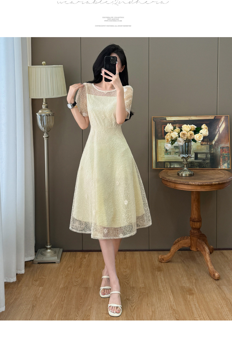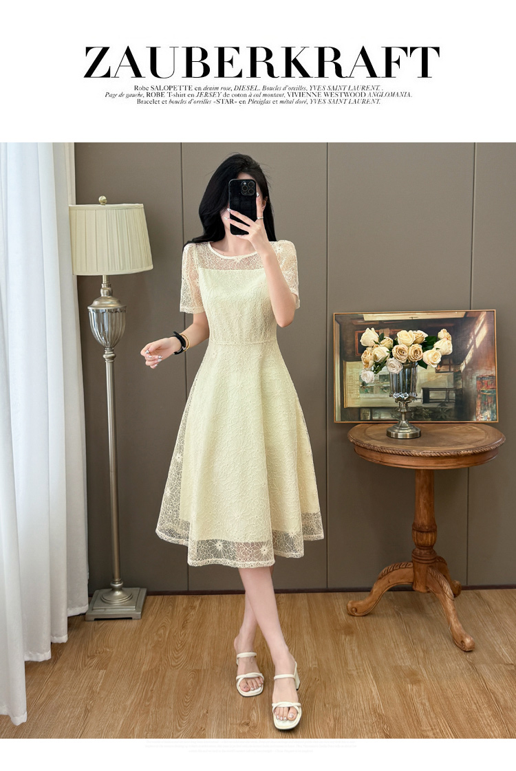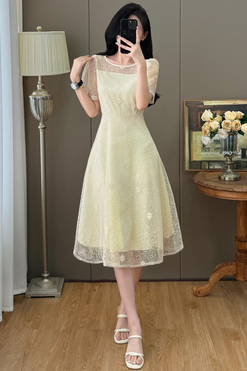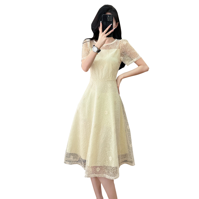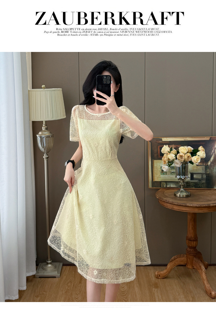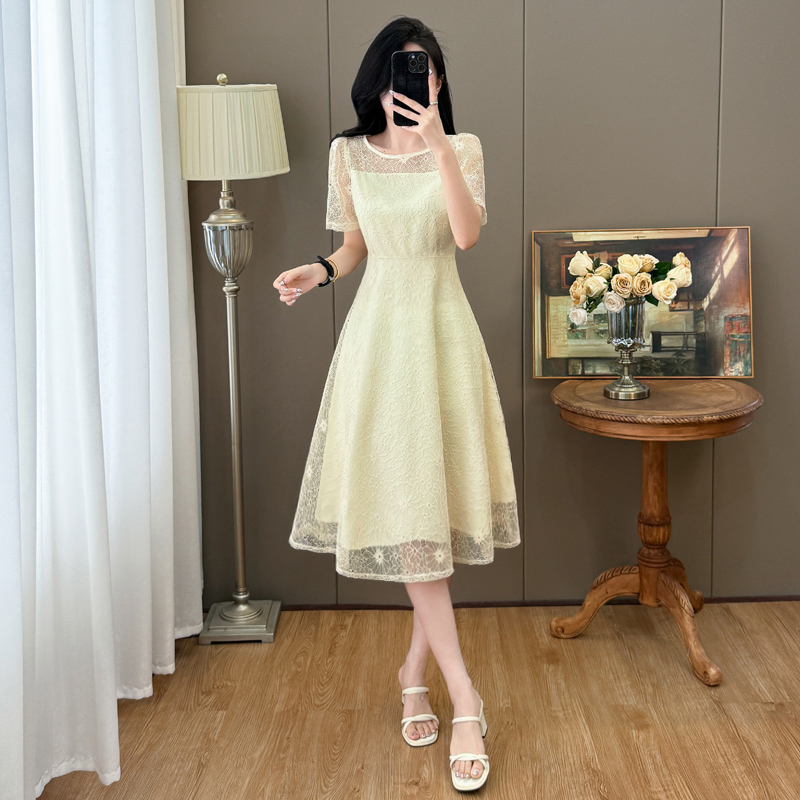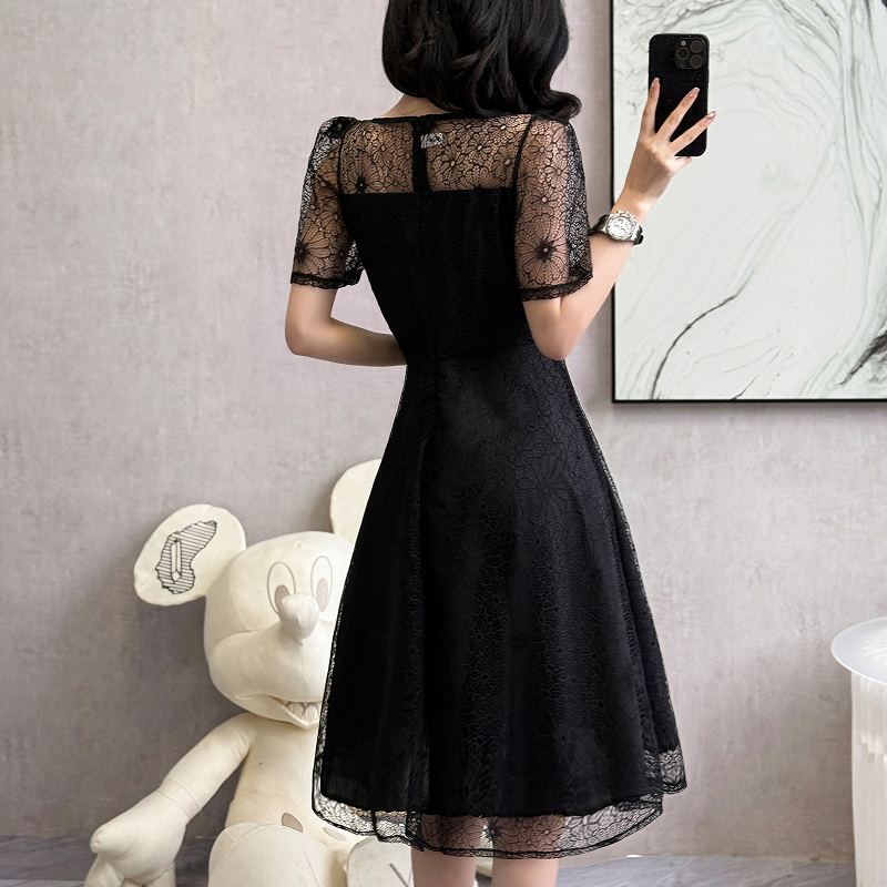 RY598# 新款微胖mm气质名媛高级拼接网纱丝绒连衣裙大码女装春季显瘦裙子