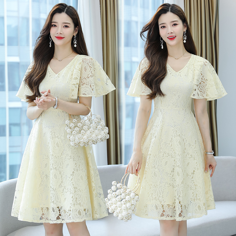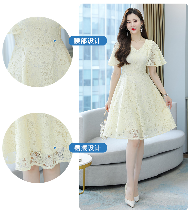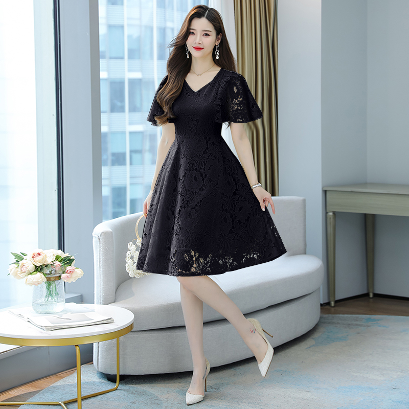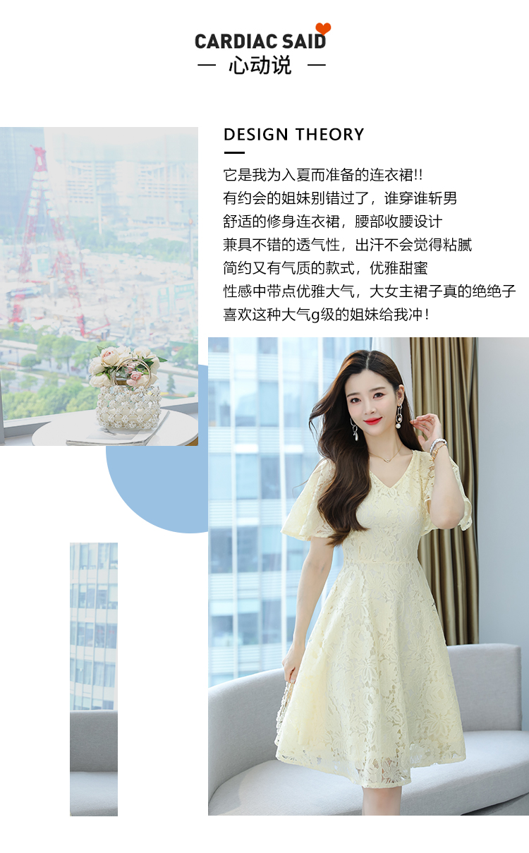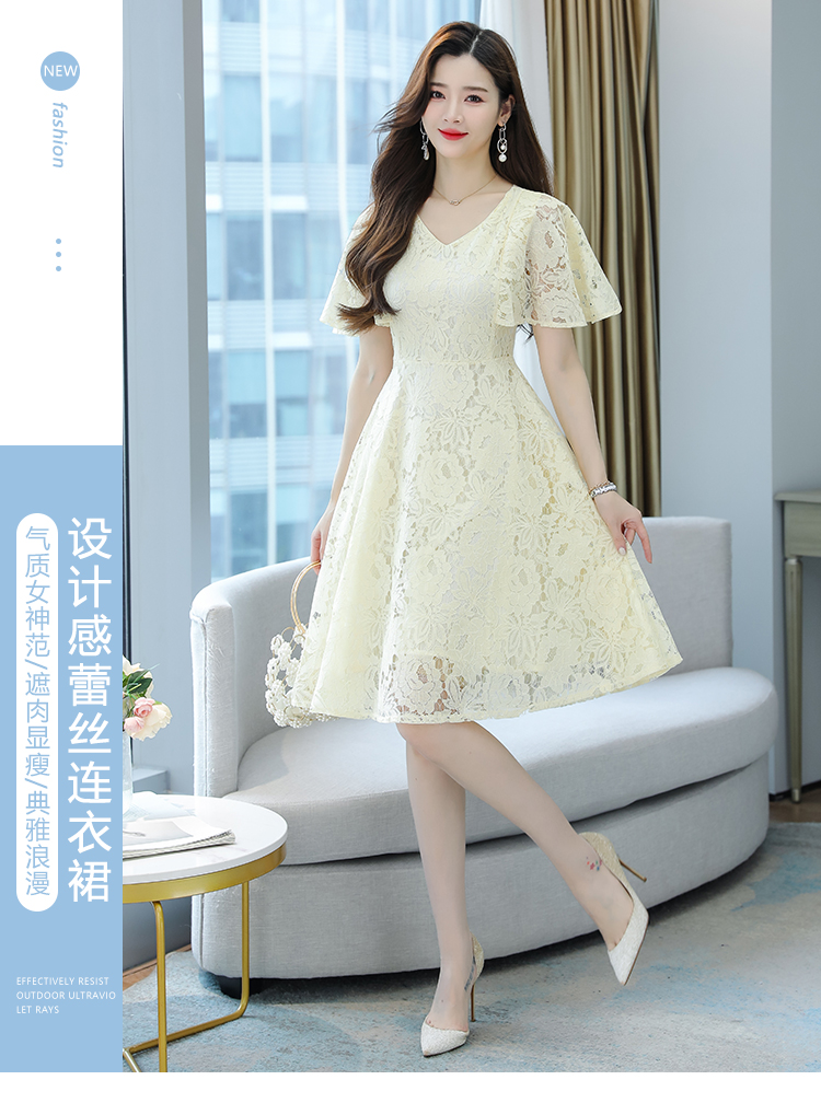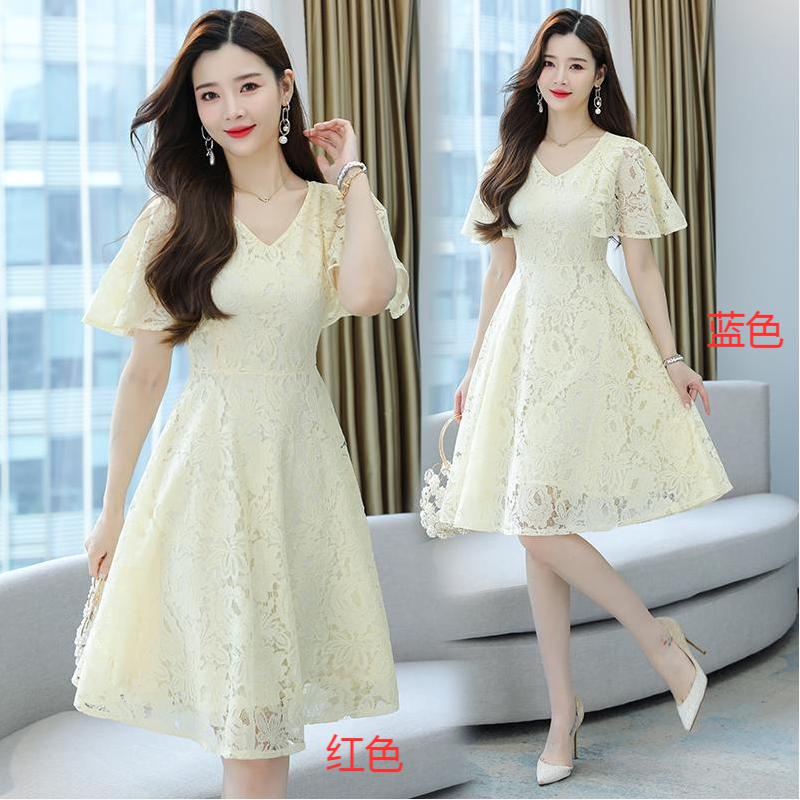 RY606# 夏季大码女装法式显瘦蕾丝胖mm连衣裙微胖妹妹收腰减龄甜美长裙子