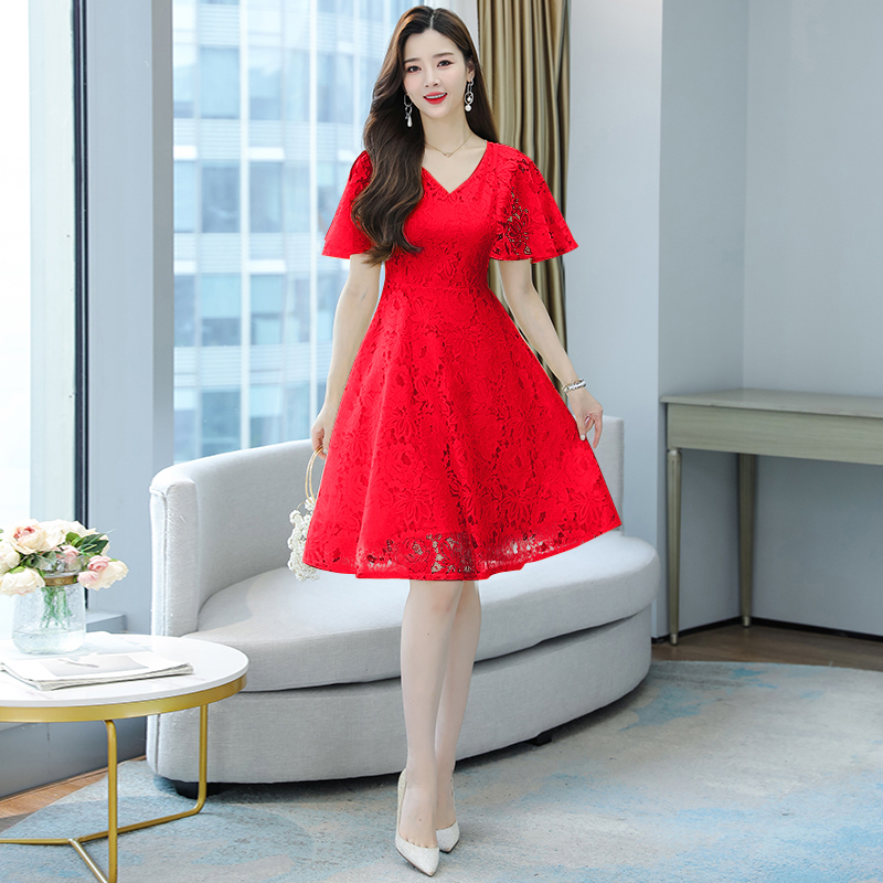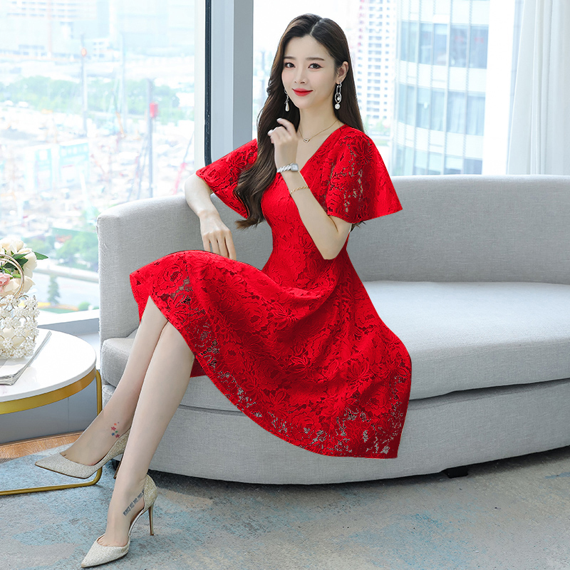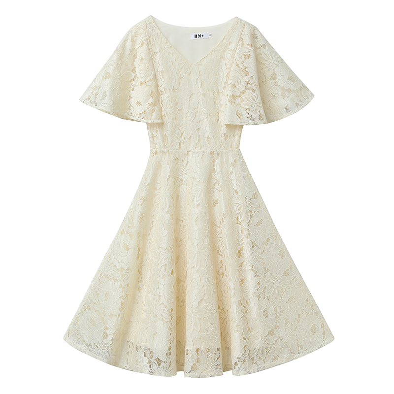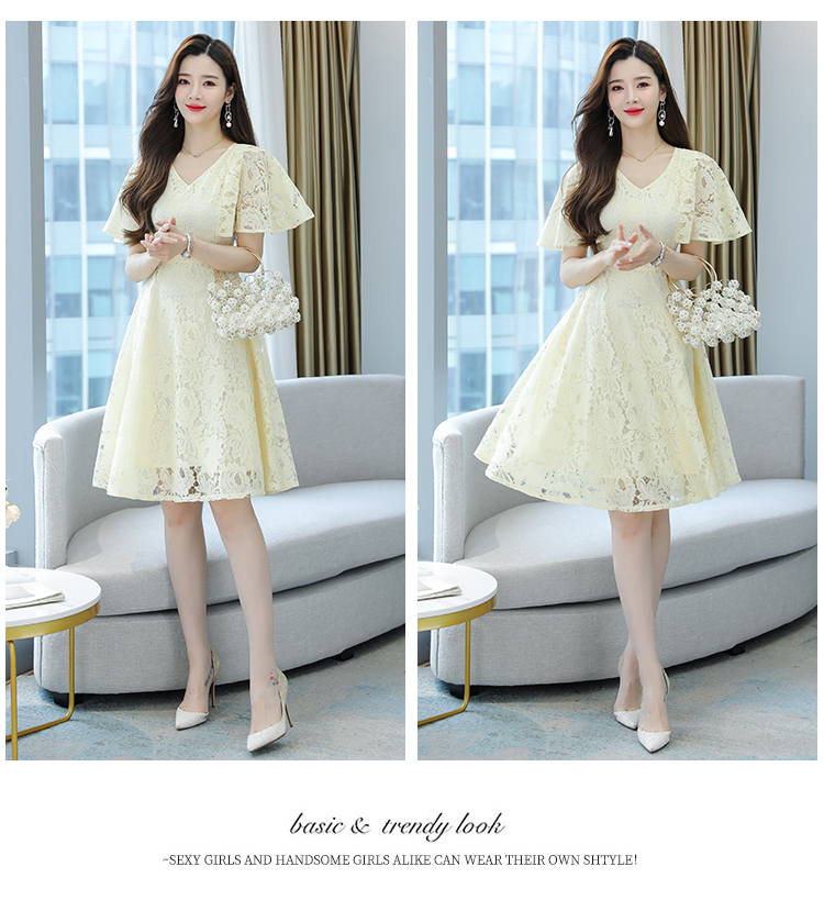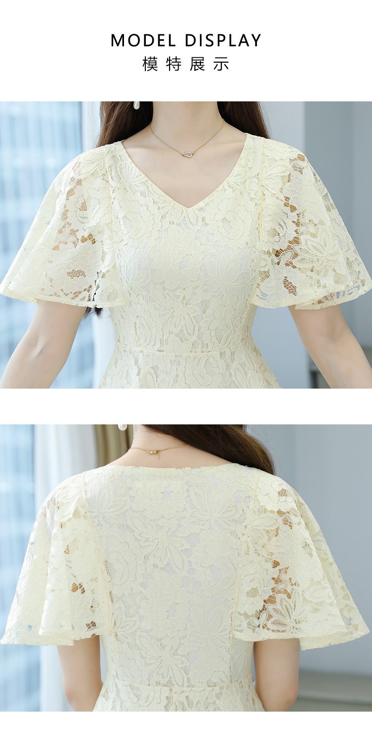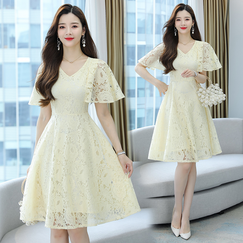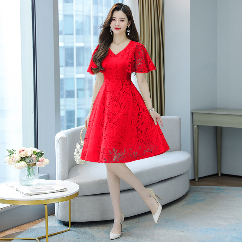 RY606# 夏季大码女装法式显瘦蕾丝胖mm连衣裙微胖妹妹收腰减龄甜美长裙子