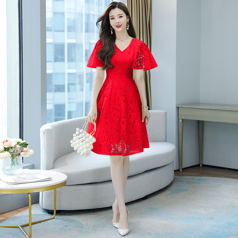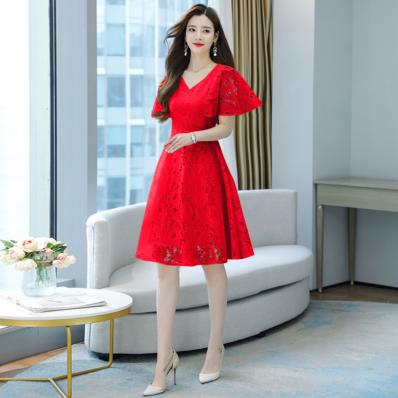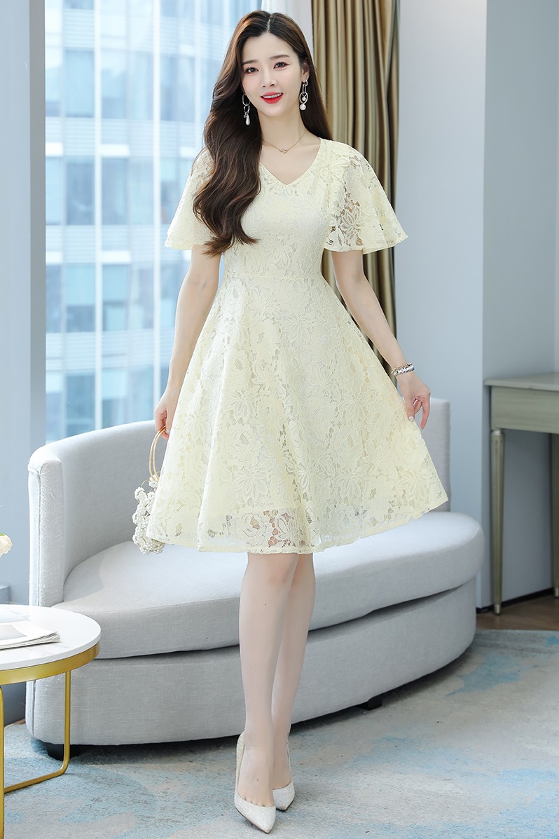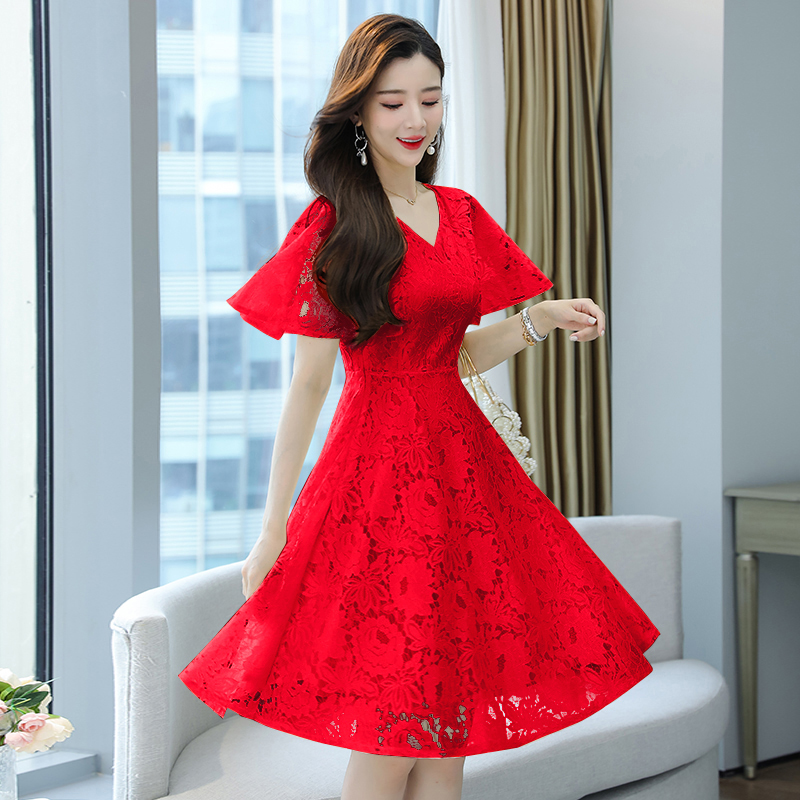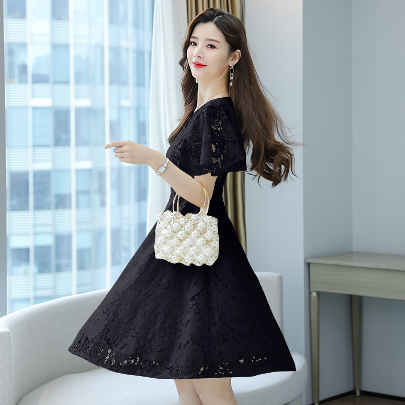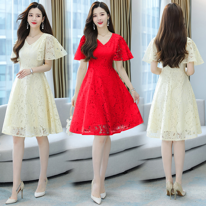 RY606# 夏季大码女装法式显瘦蕾丝胖mm连衣裙微胖妹妹收腰减龄甜美长裙子
