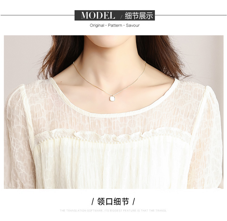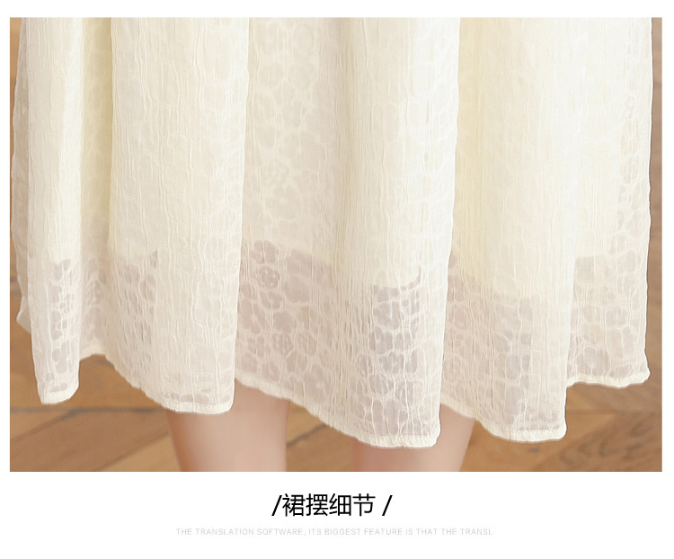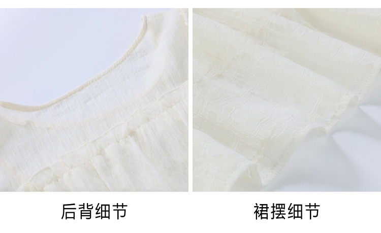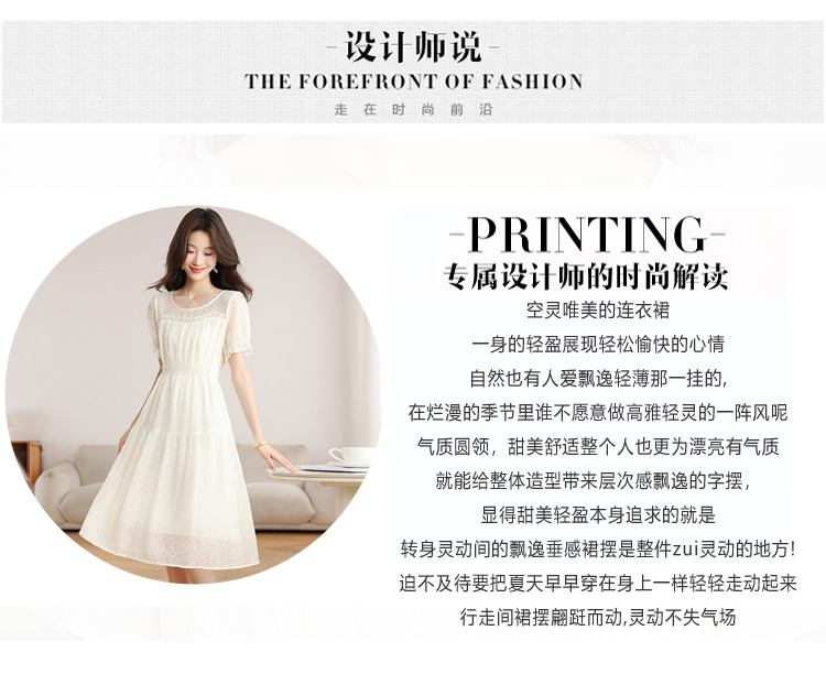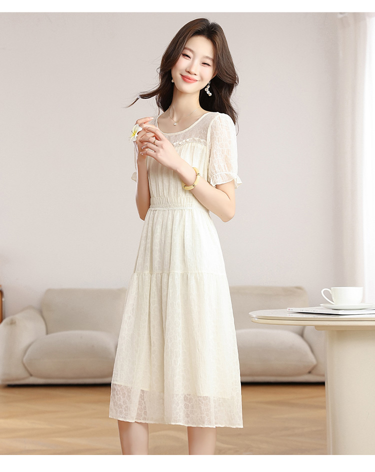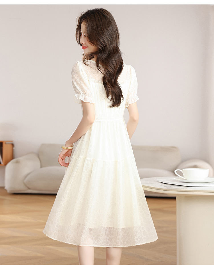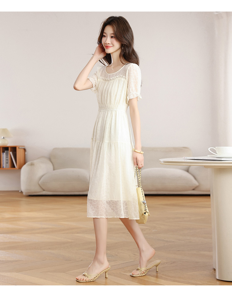 RY620# 实拍小个子白色雪纺连衣裙女新款夏季气质圆领收腰遮肚子a字裙子