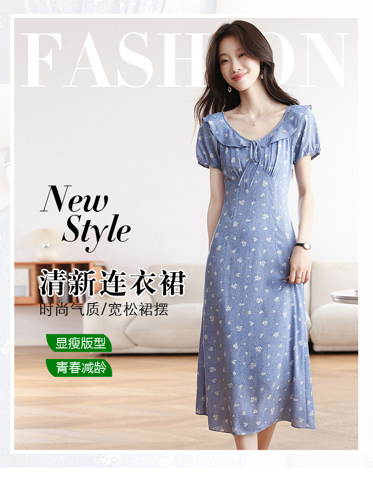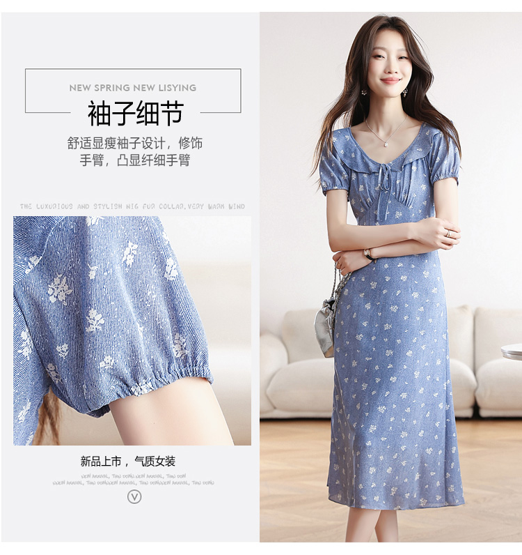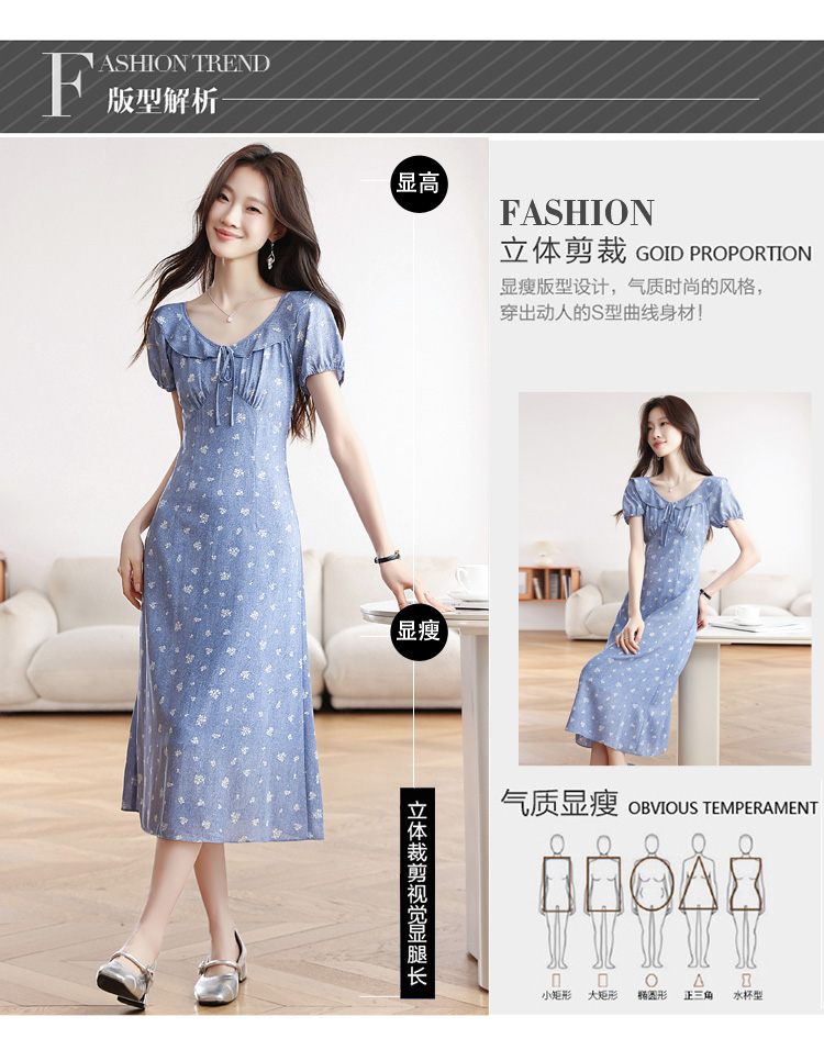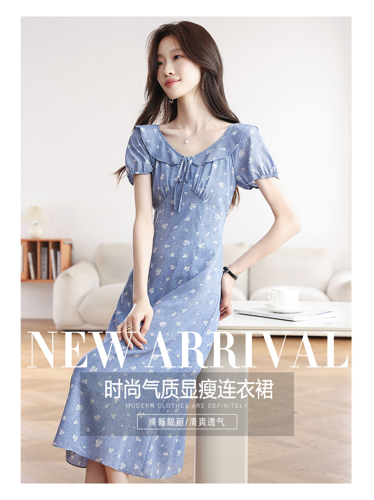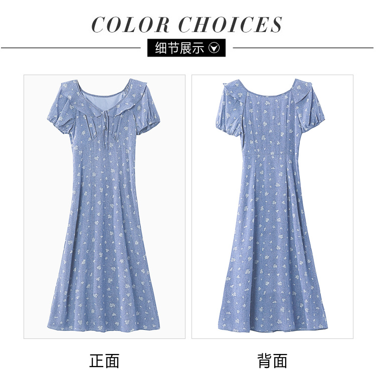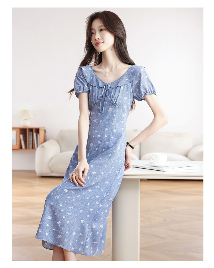 RY621# 实拍 碎花连衣裙2026夏季新款女装泡泡袖收腰V领仿牛仔日系娃娃裙