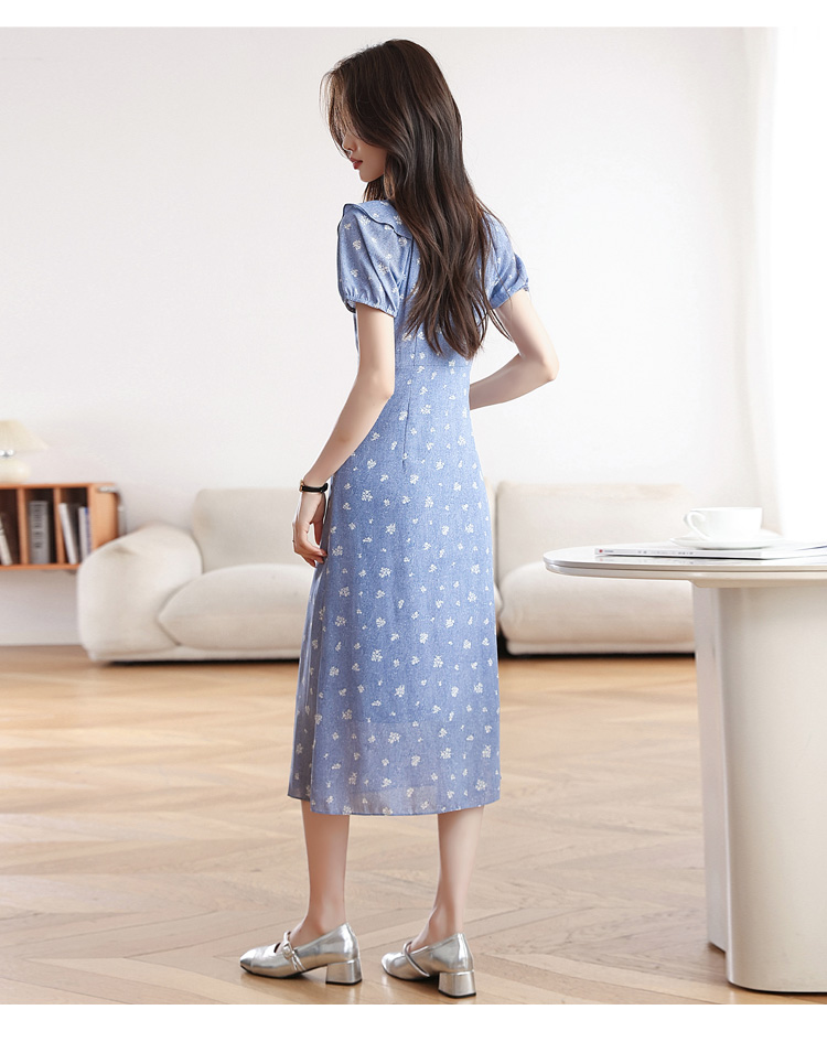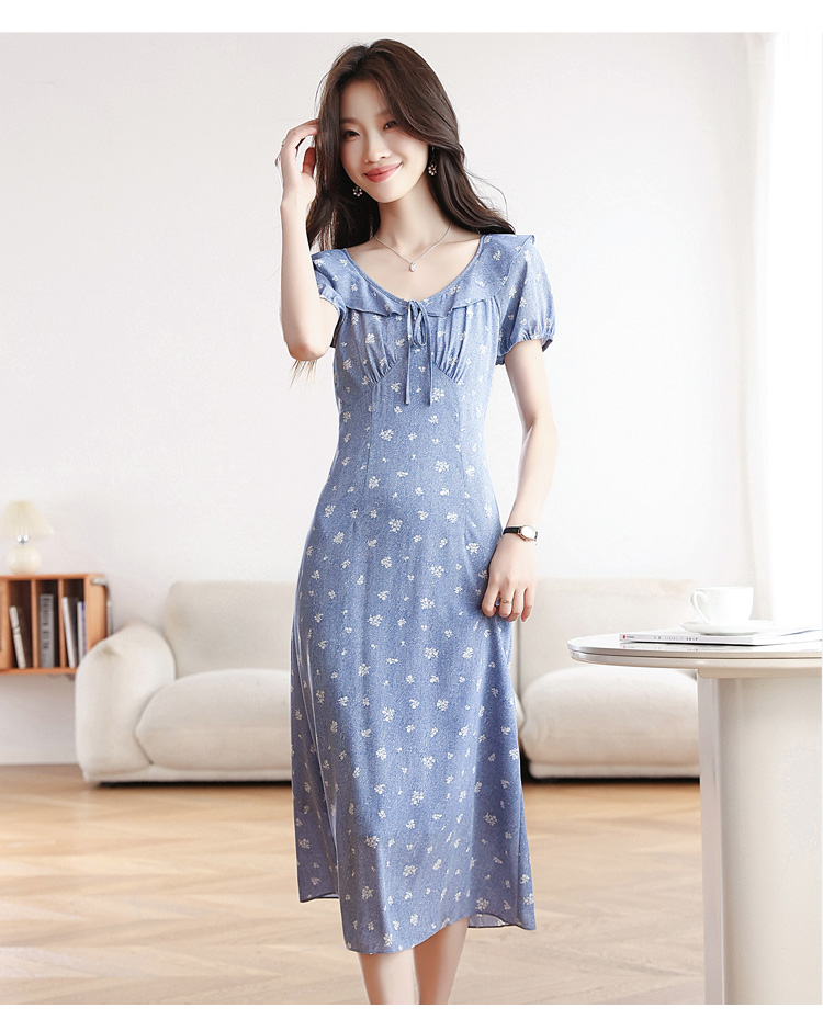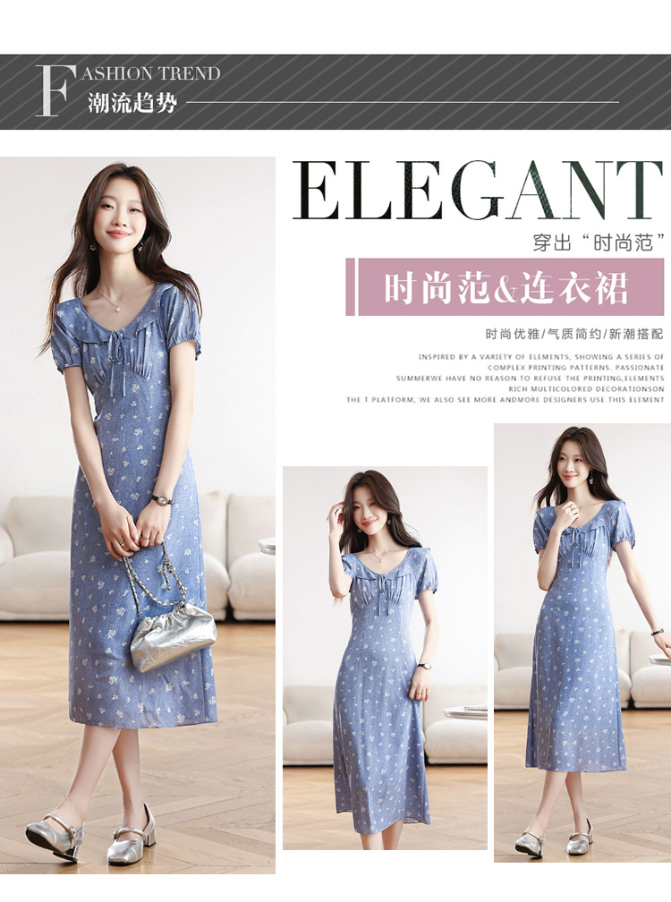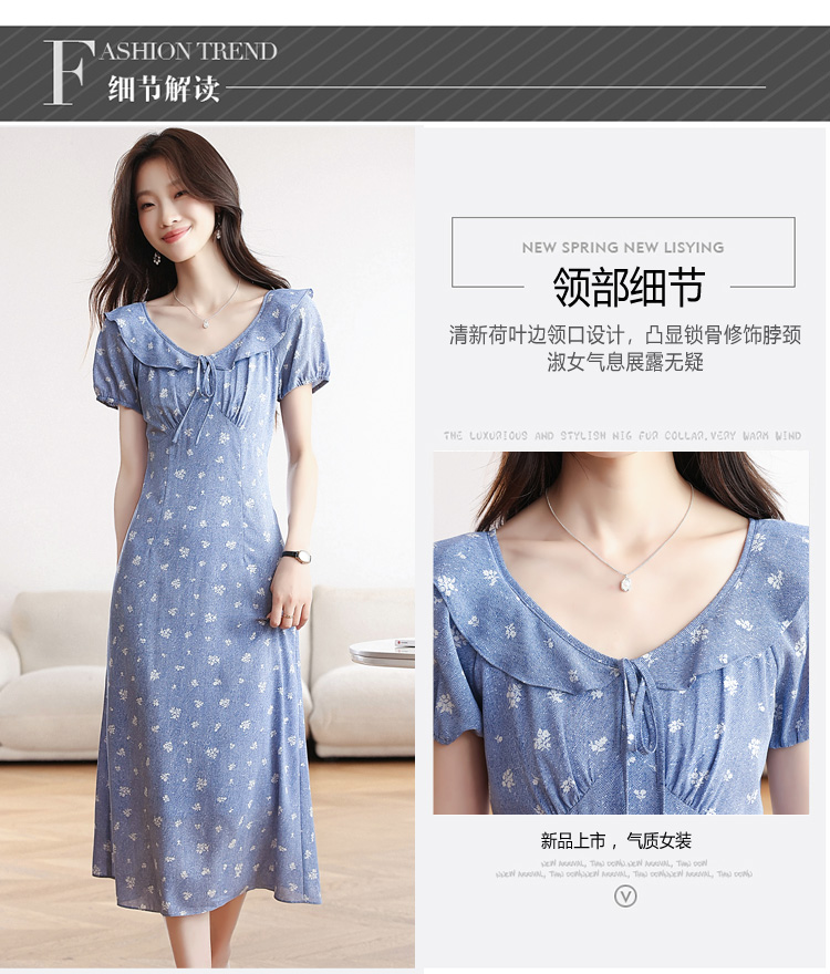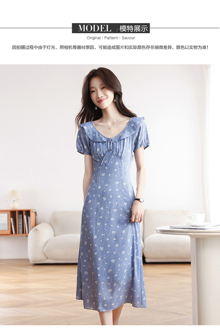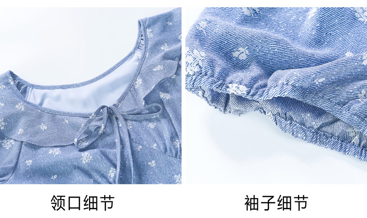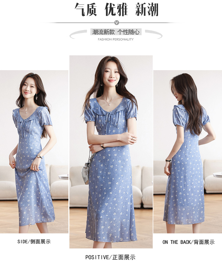 RY621# 实拍 碎花连衣裙2026夏季新款女装泡泡袖收腰V领仿牛仔日系娃娃裙