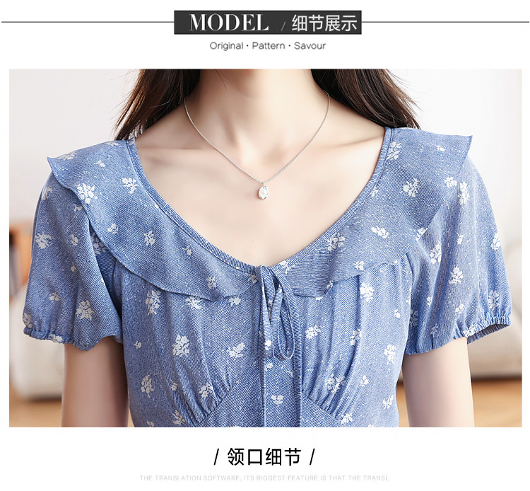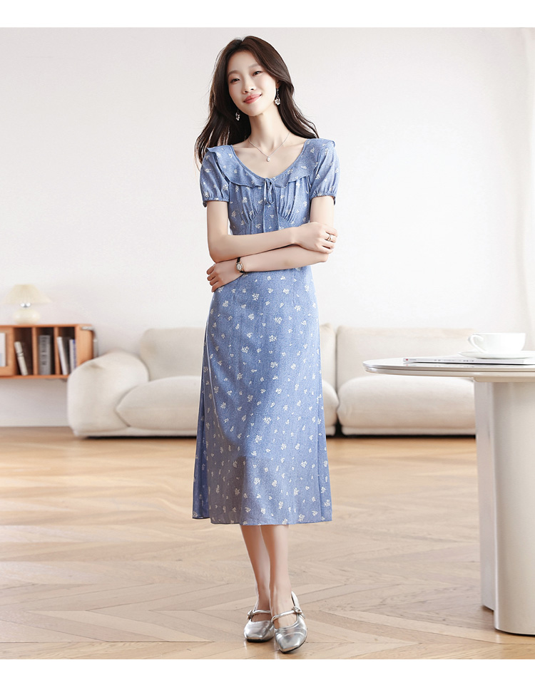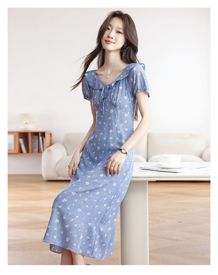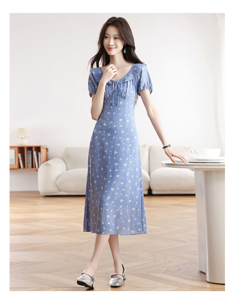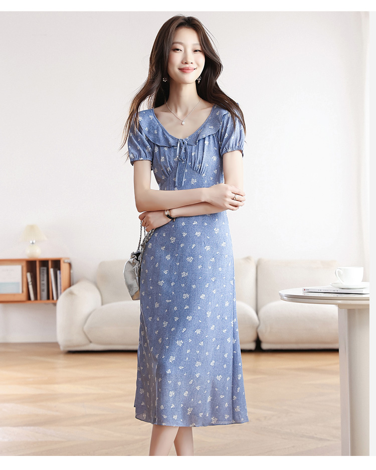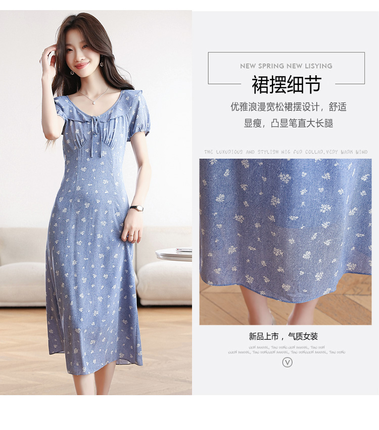 RY621# 实拍 碎花连衣裙2026夏季新款女装泡泡袖收腰V领仿牛仔日系娃娃裙